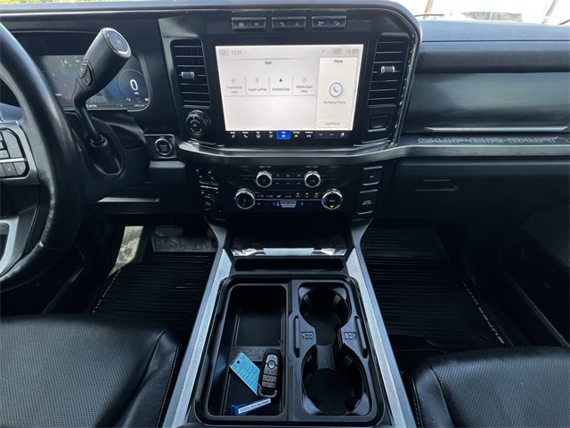 Bumpers: chrome, CLEAN CARFAX!, Compass, Delay-off headlights, Driver door bin, Driver vanity mirror, Dual 68 AH/65 AGM Batteries, Dual front impact airbags, Dual front side impact airbags, Ebony Black Painted Front Grille Bars, Ebony Black Painted Mirror Caps, Electronic Stability Control, Electronic-Locking w/3.31 Axle Ratio, Emergency communication system: SYNC 4 911 Assist, Engine Block Heater, Exterior Parking Camera Rear, F-250 >10K GVWR Package, Fixed 10,000 lbs GVWR Package, Flow-Through Console, Front anti-roll bar, Front Bucket Seats, Front Center Armrest, Front dual zone A/C, Front fog lights, Front Leather-Trimmed 40/Console/40 Seats, Front reading lights, Front Sensing System, Fully automatic headlights, FX4 Off-Road Package, Garage door transmitter, Head-Up Display, Heated door mirrors, Heated front seats, Heated rear seats, Heated steering wheel, Hill Descent Control, Illuminated entry, Intelligent Adaptive Cruise Control w/Stop-and-Go, Lane Keeping Assist, Lane-Keeping System, Lariat Ultimate Package, Leather steering wheel, LOCAL TRADE IN!, Low tire pressure warning, Memory seat, NAVIGATION, Navigation System, Navigation system: Connected Navigation, NON SMOKER VEHICLE, Off-Road Specifically Tuned Shock Absorbers, Order Code 608A, Outside temperature display, Overhead airbag, Overhead console, Panic alarm, Passenger door bin, Passenger vanity mirror, Pedal memory, Power door mirrors, Power driver seat, Power passenger seat, Power steering, Power windows, Power-Deployable Running Boards, Pro Trailer Backup Assist, Pro Trailer Hitch Assist, PROFESSIONALLY DETAILED FOR DELIVERY!, Radio: B&O Sound System by Bang & Olufsen, Radio: B&O Unleashed Sound System by Bang & Olufsen, Rain sensing wipers, Rear reading lights, Rear seat center armrest, Rear step bumper, Rear Wheel Well Liners (Pre-Installed), Rear window defroster, Remote keyless entry, Security system, SiriusXM Radio w/360L, Speed control, Split folding rear seat, Steering wheel memory, Steering wheel mounted audio controls, SUNROOF/MOONROOF, SUPER LOW MILES!, SYNC 4 w/Enhanced Voice Recognition, Tachometer, Tailgate Step & Handle, Telescoping steering wheel, Tilt steering wheel, Tough Bed Spray-In Bedliner, Tow Technology Package, Traction control, Trip computer, Turn signal indicator mirrors, Twin Panel Power Moonroof, Unique FX4 Off-Road Box Decal, Upfitter Switches (6), Variably intermittent wipers, Ventilated front seats, Wheels: 18" Bright Machined & Carbonized Gray Alum, Wheels: 20" Machined & Ebony Black High Gloss, Wireless Charging Pad.