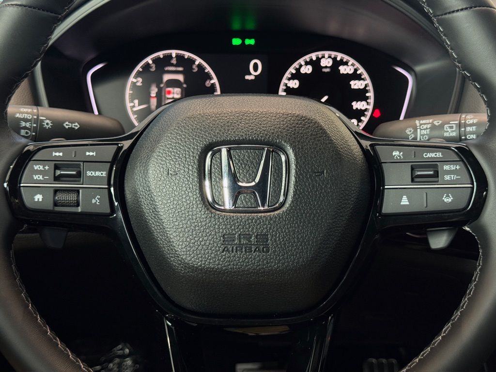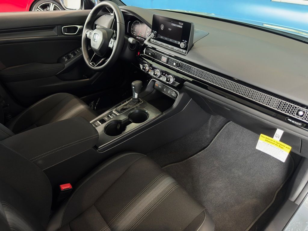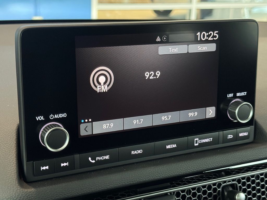 Black w/Cloth Seating Surfaces, 4-Wheel Disc Brakes, 8 Speakers, ABS brakes, Adaptive Cruise Control: Adaptive Cruise Control (ACC) with Low-Speed Follow, Air Conditioning, Alloy wheels, AM/FM radio, Apple CarPlay/Android Auto, Auto High-beam Headlights, Automatic temperature control, Blind Spot Information (BSI) System warning, Brake assist, Bumpers: body-color, Cloth/Leatherette Seating Surfaces, Delay-off headlights, Driver door bin, Driver vanity mirror, Dual front impact airbags, Dual front side impact airbags, Electronic Stability Control, Emergency communication system: HondaLink, Exterior Parking Camera Rear, Four wheel independent suspension, Front anti-roll bar, Front Bucket Seats, Front Center Armrest, Front reading lights, Fully automatic headlights, Heated door mirrors, Illuminated entry, Knee airbag, Lane departure: Lane Keeping Assist System (LKAS) active, Leather Shift Knob, Low tire pressure warning, Occupant sensing airbag, Outside temperature display, Overhead airbag, Panic alarm, Passenger door bin, Passenger vanity mirror, Power door mirrors, Power steering, Power windows, Radio data system, Radio: 180-Watt Audio System, Rear anti-roll bar, Rear side impact airbag, Rear window defroster, Rear window wiper, Remote keyless entry, Security system, Speed control, Speed-sensing steering, Split folding rear seat, Steering wheel mounted audio controls, Tachometer, Telescoping steering wheel, Tilt steering wheel, Traction control, Trip computer, and Wheels: 18" Gloss Black Alloy.