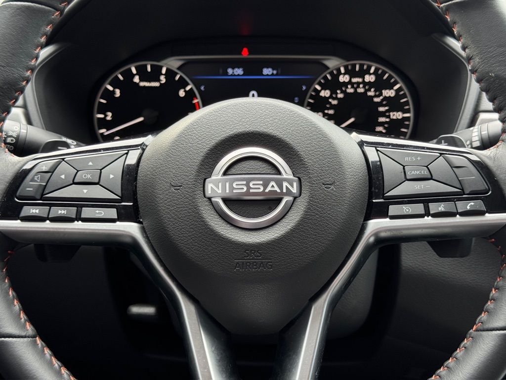 Control, Four wheel independent suspension, Front anti-roll bar, Front Bucket Seats, Front Center Armrest, Front reading lights, Fully automatic headlights, Illuminated entry, Knee airbag, Leather Shift Knob, Low tire pressure warning, NissanConnect featuring Apple CarPlay and Android Auto, Occupant sensing airbag, Outside temperature display, Overhead airbag, Overhead console, Panic alarm, Passenger door bin, Passenger vanity mirror, Power door mirrors, Power driver seat, Power steering, Power windows, Radio data system, Radio: AM/FM Audio System, Rear anti-roll bar, Rear Parking Sensors, Rear reading lights, Rear seat center armrest, Rear side impact airbag, Rear window defroster, Remote keyless entry, Security system, Speed control, Speed-sensing steering, Speed-Sensitive Wipers, Split folding rear seat, SR Floor Mats/Trunk Mat/Hideaway Nets, Steering wheel mounted audio controls, Tachometer, Telescoping steering wheel, Tilt steering wheel, Traction control, Trip computer, Trunk Organizer Tray, Unique Sport Seats, USB Charging Cable Set - Nissan, Variably intermittent wipers, Wheels: 19" Sport Machined Alloy, 19" Sport Machined Alloy, CVT with Xtronic, Blind Spot Warning, Sport Seat Trim.