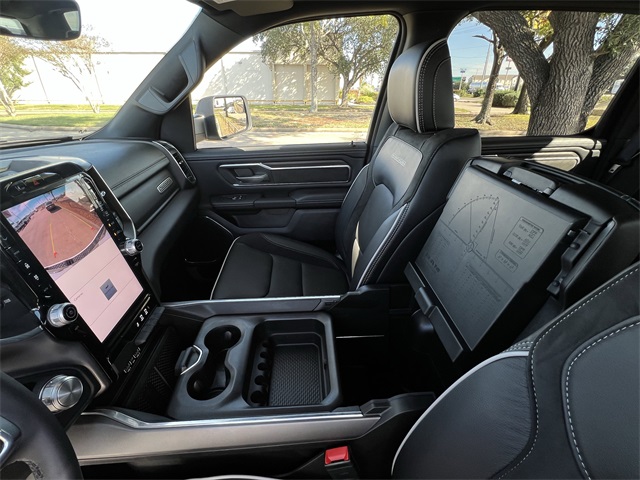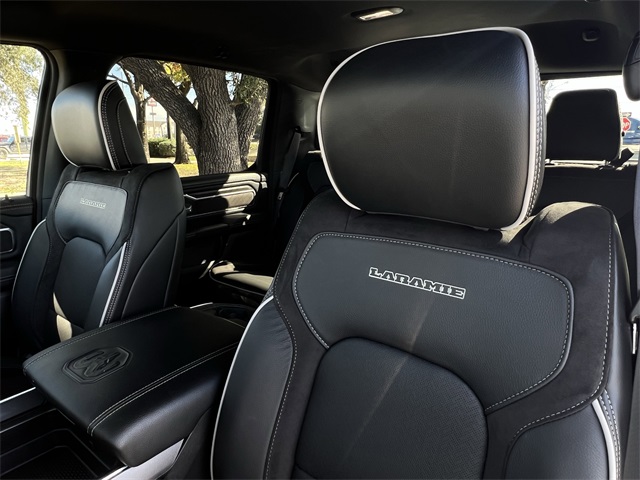 ol, Black Interior Accents, Black Painted Exterior Mirrors Caps, BLUETOOTH / HANDSFREE, Body Color Front Bumper, Body Color Rear Bumper w/Step Pads, Brake assist, Bridgestone Brand Tires, Bumpers: chrome, Chrome Exterior Mirrors, CLEAN CARFAX!, Compass, Connected Travel & Traffic Services, Connectivity - US/Canada, Convex Wide-Angle Exterior Mirror Insert, Delay-off headlights, Driver door bin, Dual front impact airbags, Dual front side impact airbags, Electronic Stability Control, Exterior Mirrors Courtesy Lamps, Exterior Mirrors w/Heating Element, Exterior Mirrors w/Memory, Exterior Mirrors w/Supplemental Signals, Front anti-roll bar, Front Center Armrest w/Storage, Front dual zone A/C, Front fog lights, Front License Plate Bracket, Front reading lights, Front wheel independent suspension, Fully automatic headlights, Garage door transmitter, Google Android Auto, GPS Antenna Input, GPS Navigation, Grille Surround 3 Body Color Tex 2 Black, HD Radio, Heated door mirrors, Heated front seats, Heated rear seats, Heated steering wheel, Illuminated entry, Integrated Voice Command w/Bluetooth, Laramie Level 1 Equipment Group, Leather steering wheel, LOCAL TRADE IN!, Low tire pressure warning, Manufacturer's Statement of Origin, Memory seat, NAVIGATION, Navigation System, NON SMOKER VEHICLE, Occupant sensing airbag, Outside temperature display, Overhead airbag, Overhead console, Panic alarm, ParkView Rear Back-Up Camera, Passenger door bin, Passenger vanity mirror, Power door mirrors, Power driver seat, Power passenger seat, Power steering, Power windows, PROFESSIONALLY DETAILED FOR DELIVERY!, Quick Order Package 21H Laramie, Radio data system, Radio: Uconnect 5 Nav w/12.0" Display, Rain Sensitive Windshield Wipers, RAM Grille Badge - Chrome, Rear anti-roll bar, Rear reading lights, Rear seat center armrest, Rear step bumper, Remote keyless entry, Remote Tailgate Release, Security system, SiriusXM w/360L, Speed control, Split folding rear seat, Sport Appearance Package, Sport Performance Hood, Steering wheel mounted audio controls, SUPER LOW MILES!, Tachometer, Telescoping steering wheel, Tilt steering wheel, Traction control, Trip computer, Turn signal indicator mirrors, USB Host Flip, Variably intermittent wipers, Ventilated front seats, Voltmeter, Wheels: 20" x 9" Premium Paint/Polish. Clean CARFAX. Certified.