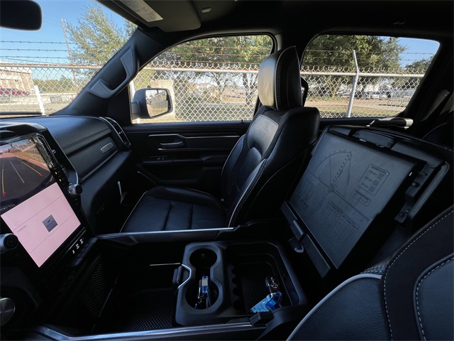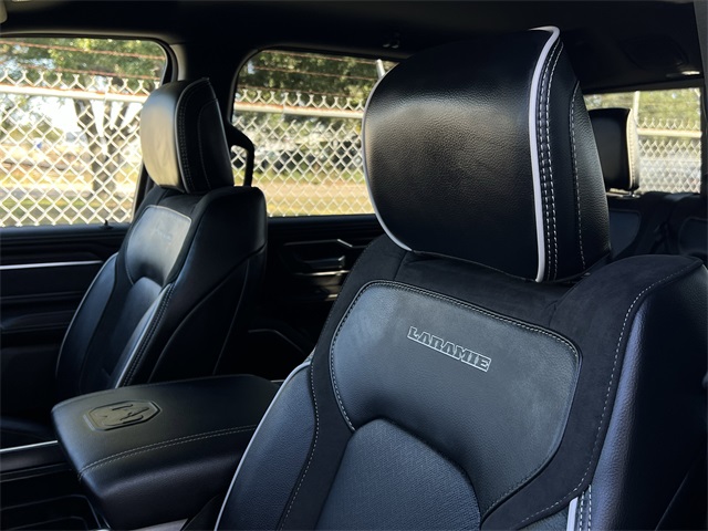 Driver Mirror, Auto-dimming Rear-View mirror, Automatic temperature control, Black Interior Accents, Black Painted Exterior Mirrors Caps, BLUETOOTH / HANDSFREE, Body Color Front Bumper, Body Color Rear Bumper w/Step Pads, Brake assist, Bridgestone Brand Tires, Bucket Seats, Bumpers: chrome, Center Console Parts Module, Chrome Exterior Mirrors, CLEAN CARFAX!, Compass, Connected Travel & Traffic Services, Connectivity - US/Canada, Convex Wide-Angle Exterior Mirror Insert, Delay-off headlights, Driver door bin, Driver Seat Memory, Driver vanity mirror, Dual front impact airbags, Dual front side impact airbags, Electronic Stability Control, Exterior Mirrors Courtesy Lamps, Exterior Mirrors w/Heating Element, Exterior Mirrors w/Memory, Exterior Mirrors w/Supplemental Signals, Front anti-roll bar, Front Center Armrest w/Storage, Front dual zone A/C, Front fog lights, Front License Plate Bracket, Front reading lights, Front Seat Back Map Pockets, Front wheel independent suspension, Full Length Upgraded Floor Console, Fully automatic headlights, Garage door transmitter, Google Android Auto, GPS Antenna Input, GPS Navigation, Grille Surround 3 Body Color Tex 2 Black, HD Radio, Heated door mirrors, Heated Front Seats, Heated front seats, Heated rear seats, Heated Second Row Seats, Heated Steering Wheel, Heated steering wheel, Illuminated entry, Integrated Voice Command w/Bluetooth, Intersection Collision Assist System, Laramie Level 1 Equipment Group, Leather steering wheel, Leather Trim 40/20/40 Bench Seat, Leather Trimmed Bucket Seats, LOCAL TRADE IN!, Low tire pressure warning, Manufacturer's Statement of Origin, Memory seat, NAVIGATION, Navigation System, NON SMOKER VEHICLE, Occupant sensing airbag, Outside temperature display, Overhead airbag, Overhead console, Panic alarm, ParkView Rear Back-Up Camera, Passenger door bin, Passenger vanity mirror, Power 2-Way Driver Lumbar Adjust, Power 2-Way Passenger Lumbar Adjust, Power Adjust 8-Way Driver Seat, Power Adjust 8-Way Front Passenger Seat, Power door mirrors, Power driver seat, Power passenger seat, Power steering, Power windows, PROFESSIONALLY DETAILED FOR DELIVERY!, Quick Order Package 21H Laramie, Radio data system, Radio: Uconnect 5 Nav w/12.0" Display, Rain Sensitive Windshield Wipers, RAM Grille Badge - Chrome, Rear 60/40 Folding Split Recline Seat, Rear anti-roll bar, Rear reading lights, Rear seat center armrest, Rear step bumper, Remote keyless entry, Remote Tailgate Release, Security system, SiriusXM w/360L, Speed control, Split folding rear seat, Sport Appearance Package, Sport Performance Hood, Steering wheel mounted audio controls, SUPER LOW MILES!, Tachometer, Telescoping steering wheel, Tilt steering wheel, Traction control, Trip computer, Turn signal indicator mirrors, USB Host Flip, Variably intermittent wipers, Ventilated Front Seats, Ventilated front seats, Wheels: 20" x 9" Premium Paint/Polish. Clean CARFAX. Certified.