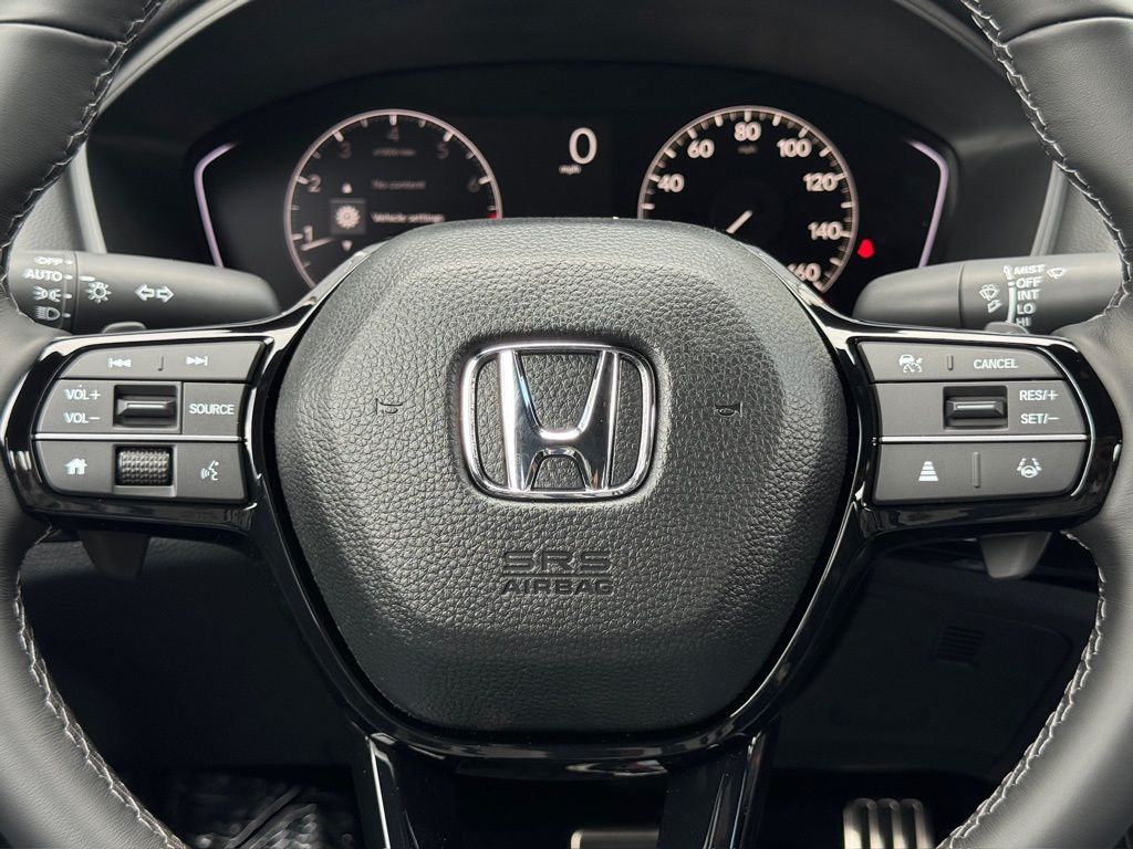 Black Artificial Leather, 4-Wheel Disc Brakes, 8 Speakers, ABS brakes, Adaptive Cruise Control: Adaptive Cruise Control (ACC) with Low-Speed Follow, Air Conditioning, Alloy wheels, AM/FM radio, Apple CarPlay/Android Auto, Auto High-beam Headlights, Automatic temperature control, Blind Spot Information (BSI) System warning, Brake assist, Bumpers: body-color, Cloth/Leatherette Seating Surfaces, Delay-off headlights, Driver door bin, Driver vanity mirror, Dual front impact airbags, Dual front side impact airbags, Electronic Stability Control, Emergency communication system: HondaLink, Exterior Parking Camera Rear, Four wheel independent suspension, Front anti-roll bar, Front Bucket Seats, Front Center Armrest, Front reading lights, Fully automatic headlights, Heated door mirrors, Illuminated entry, Knee airbag, Leather Shift Knob, Leather steering wheel, Low tire pressure warning, Occupant sensing airbag, Outside temperature display, Overhead airbag, Panic alarm, Passenger door bin, Passenger vanity mirror, Power door mirrors, Power steering, Power windows, Radio data system, Radio: 180-Watt Audio System, Rear anti-roll bar, Rear seat center armrest, Rear side impact airbag, Rear window defroster, Remote keyless entry, Security system, Speed control, Speed-sensing steering, Split folding rear seat, Steering wheel mounted audio controls, Tachometer, Telescoping steering wheel, Tilt steering wheel, Traction control, Trip computer, and Wheels: 18" Gloss Black Alloy.