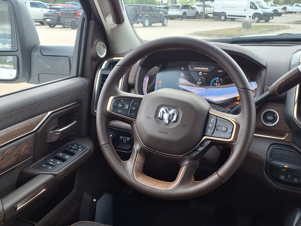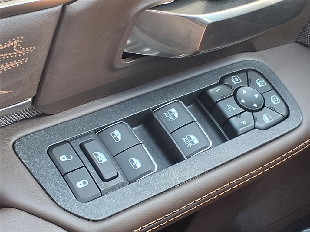 c Brakes, 6,000 lbs Front Axle w/Hub Ext, ABS brakes, Adjustable pedals, Air Conditioning, Alloy wheels, AM/FM radio: SiriusXM with 360L, Apple CarPlay/Android Auto, Audio memory, Auto High-beam Headlights, Auto-dimming door mirrors, Auto-dimming Rear-View mirror, Automatic temperature control, Black Wheel Center Hub, Bodyside moldings, Box & Rear Fender Clearance Lamps, Brake assist, Bumpers: body-color, Center Hub, Clearance Lamps, Compass, Delay-off headlights, Driver door bin, Driver vanity mirror, Dual front impact airbags, Dual front side impact airbags, Dual Rear Wheel Fender Flare Tracking, Dual Rear Wheels, Electronic Stability Control, Front anti-roll bar, Front Bucket Seats, Front Center Armrest w/Storage, Front dual zone A/C, Front fog lights, Front License Plate Bracket, Front reading lights, Fully automatic headlights, Garage door transmitter, Genuine wood console insert, Genuine wood dashboard insert, Genuine wood door panel insert, harman/kardon® Speakers, Heated door mirrors, Heated front seats, Heated rear seats, Heated steering wheel, Illuminated entry, Leather steering wheel, LED Bed Lighting, Low tire pressure warning, Memory seat, Navigation System, Occupant sensing airbag, Outside temperature display, Overhead airbag, Overhead console, Panic alarm, ParkView Rear Back-Up Camera, Passenger door bin, Passenger vanity mirror, Pedal memory, Power door mirrors, Power driver seat, Power passenger seat, Power steering, Power windows, Radio data system, Radio: Uconnect 5 Nav w/14.4" Display, Rain sensing wipers, Rear reading lights, Rear seat center armrest, Rear step bumper, Rear window defroster, Remote keyless entry, Security system, Speed control, Split folding rear seat, Steering wheel mounted audio controls, Tachometer, Tilt steering wheel, Traction control, Trip computer, Turn signal indicator mirrors, Ultra Premium Leather Seats, Variably intermittent wipers, Ventilated front seats, Voltmeter, Wheels: 17" x 6.0" Polished Aluminum, and Wheels: 20" x 8" Diamond Cut Aluminum.