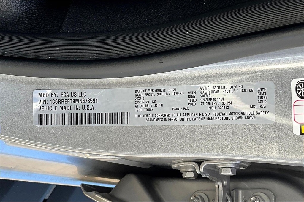 Billet Silver Metallic Clearcoat 2021 Ram 1500 Big Horn/Lone Star RWD 8-Speed Automatic HEMI 5.7L V8 Multi Displacement VVT