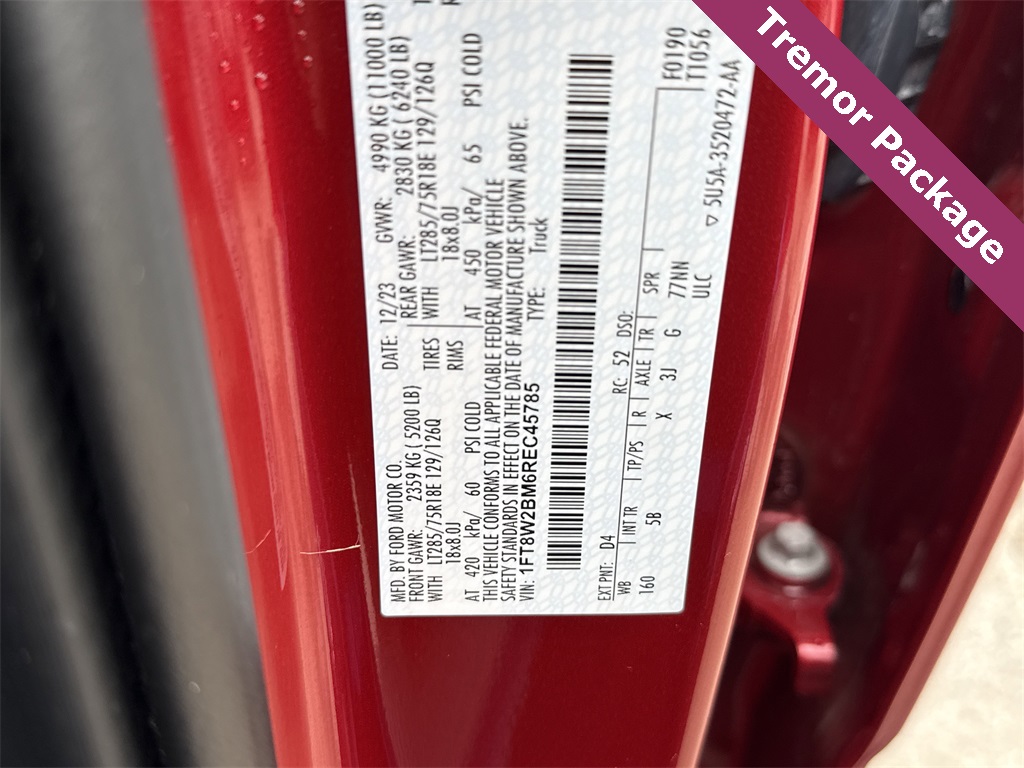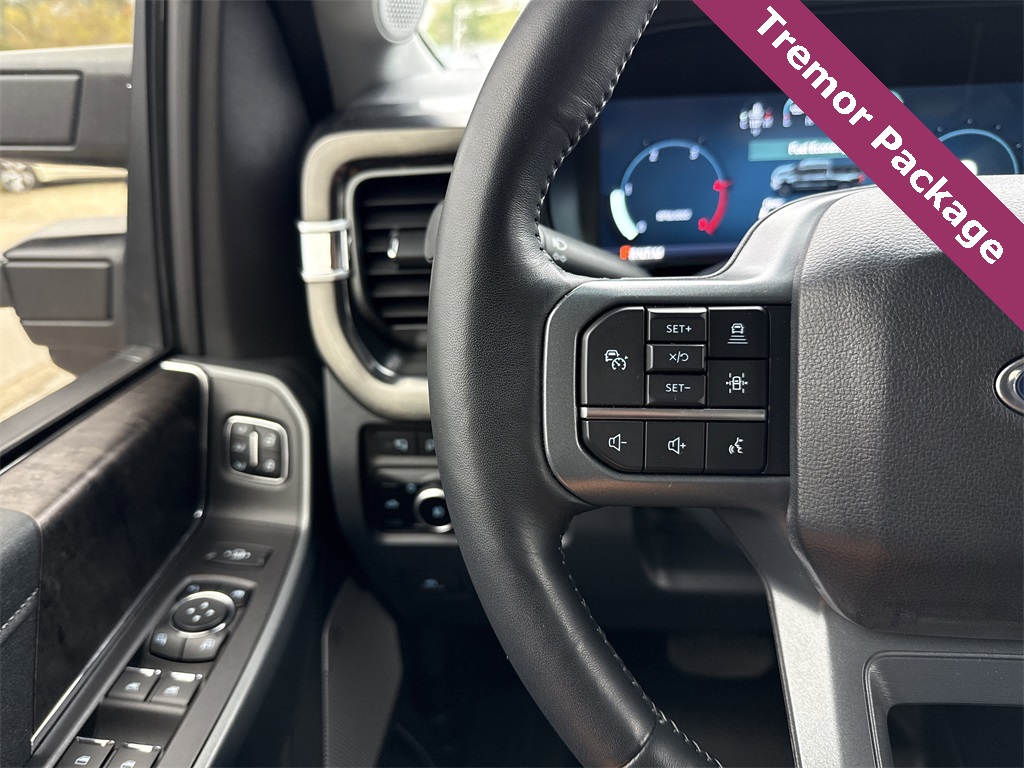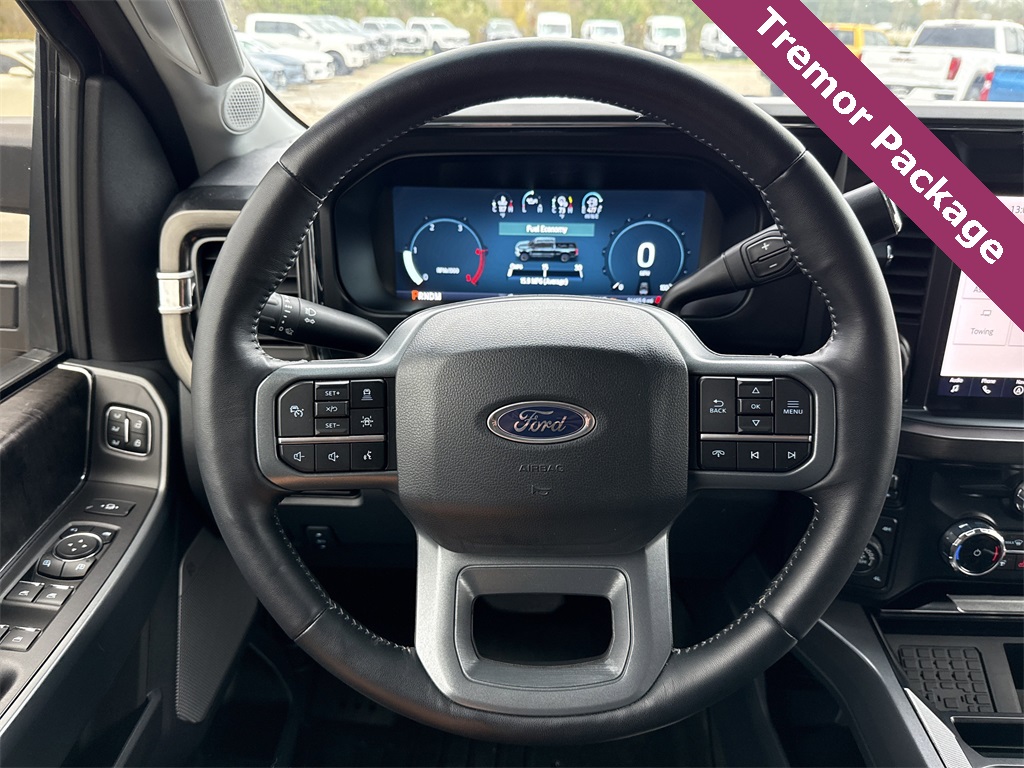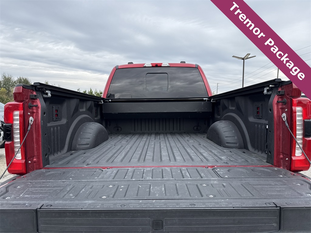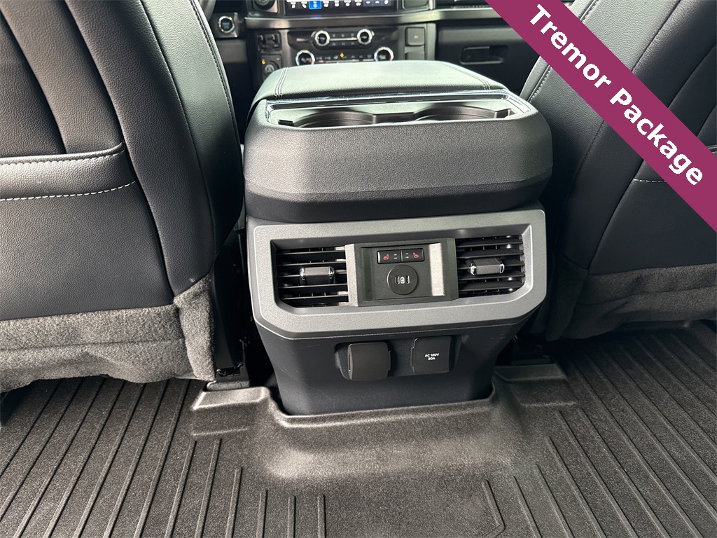 Black Appearance Package (6" Ebony Black Angular Running Boards, Body Color Front & Rear Bumpers, Ebony Black Painted Front Grille Bars, Ebony Black Painted Mirror Caps, Rear Wheel Well Liners (Pre-Installed), Tough Bed Spray-In Bedliner, and Wheels: 20" Machined & Ebony Black High Gloss), F-250 >10K GVWR Package, High Capacity 11.6" Axle Upgrade Package, Lariat Ultimate Package (4-Way Adjustable Headrests, Front Sensing System, Head-Up Display, Intelligent Adaptive Cruise Control w/Stop-and-Go, Pro Trailer Backup Assist, Pro Trailer Hitch Assist, Radio: B&O Unleashed Sound System by Bang & Olufsen, SiriusXM Radio w/360L, SYNC 4 w/Enhanced Voice Recognition, Tailgate Step & Handle, Upfitter Switches (6), and Wireless Charging Pad), Order Code 608A, 4WD, 8 Speakers, Air Conditioning, AM/FM radio: SiriusXM with 360L, Automatic temperature control, Bumpers: chrome, Front dual zone A/C, Memory seat, Navigation system: Connected Navigation (includes complimentary 1-year trial), Pedal memory, Power door mirrors, Power driver seat, Power steering, Power-Deployable Running Boards, Pro Power Onboard - 2kW, Radio: B&O Sound System by Bang & Olufsen, Rear window defroster, Remote keyless entry, Steering wheel memory, Steering wheel mounted audio controls, 4-Wheel Disc Brakes, ABS brakes, Adjustable pedals, Alloy wheels, Auto High-beam Headlights, Auto tilt-away steering wheel, Auto-dimming Rear-View mirror, Brake assist, Compass, Delay-off headlights, Driver door bin, Driver vanity mirror, Dual 68 AH/65 AGM Batteries, Dual front impact airbags, Dual front side impact airbags, Electronic Stability Control, Emergency communication system: SYNC 4 911 Assist, Engine Block Heater, Exterior Parking Camera Rear, Flow-Through Console, Front anti-roll bar, Front Bucket Seats, Front Center Armrest, Front fog lights, Front Leather-Trimmed 40/Console/40 Seats, Front reading lights, Fully automatic headlights, Garage door transmitter, Heated door mirrors, Heated front seats, Heated rear seats, Heated steering wheel, Illuminated entry, Leather steering wheel, Low tire pressure warning, Outside temperature display, Overhead airbag, Overhead console, Panic alarm, Passenger door bin, Passenger vanity mirror, Power passenger seat, Power windows, Rain sensing wipers, Rear reading lights, Rear seat center armrest, Rear step bumper, Security system, Speed control, Split folding rear seat, Tachometer, Telescopi