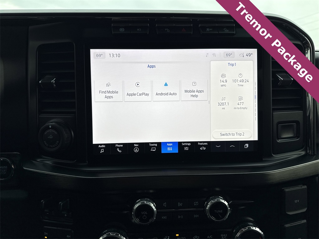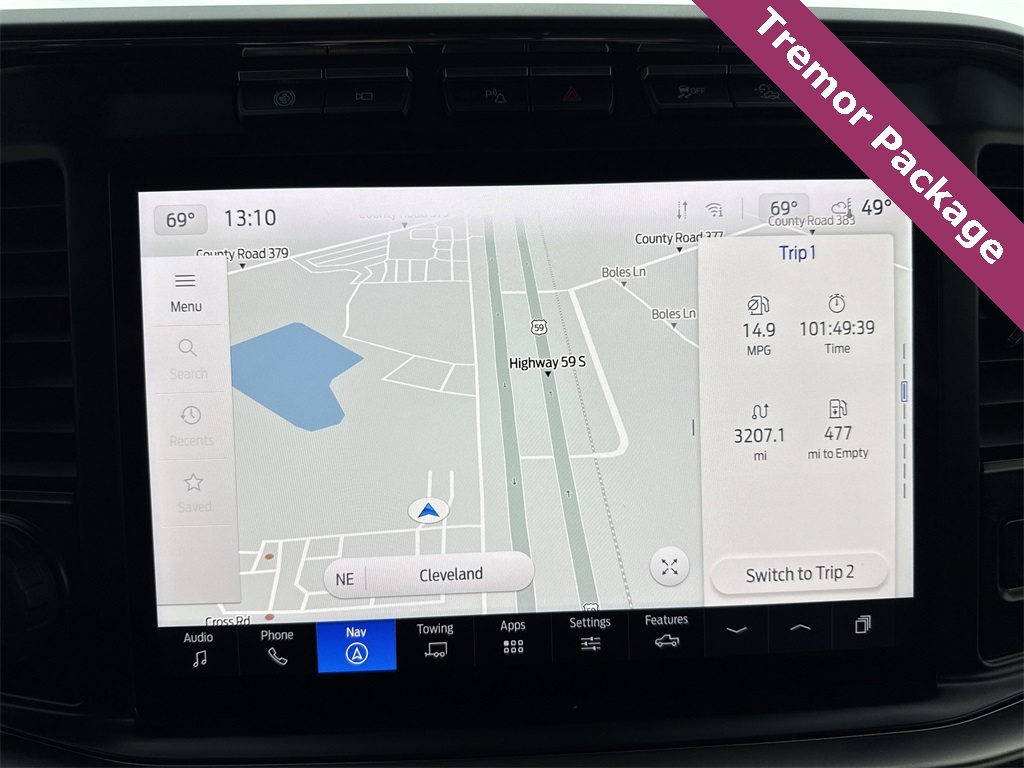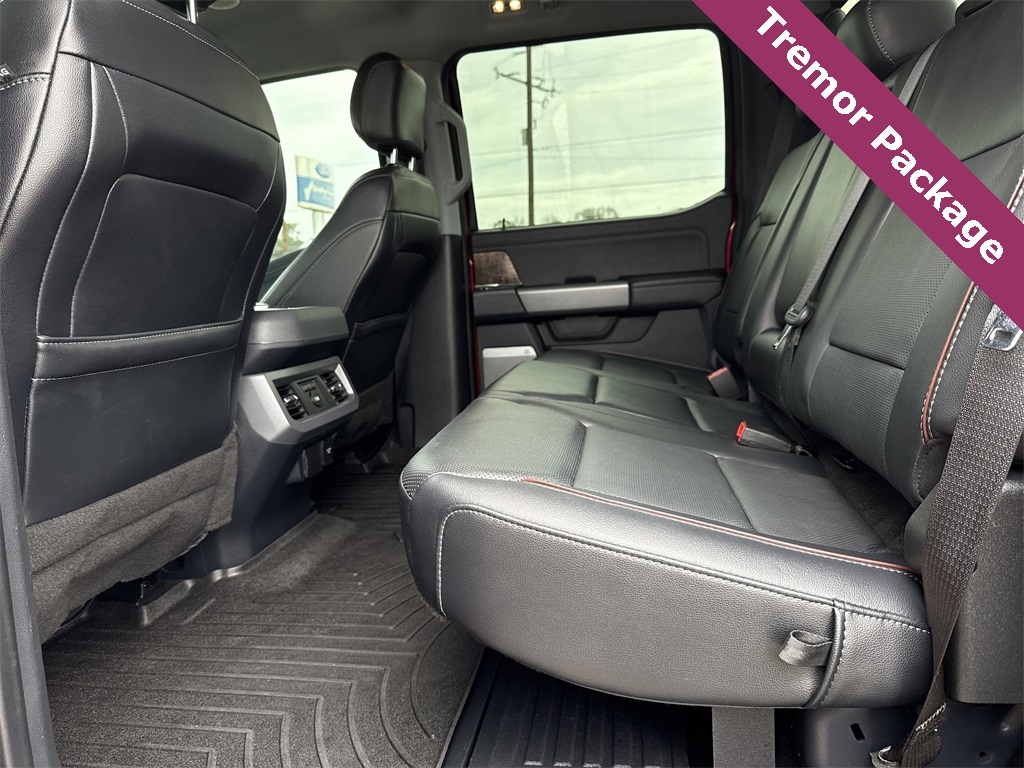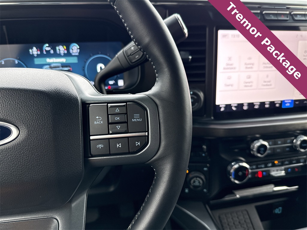 gent Adaptive Cruise Control w/Stop-and-Go, Lariat Ultimate Package, Memory seat, Navigation system: Connected Navigation (includes complimentary 1-year trial), Order Code 608A, Pedal memory, Power door mirrors, Power driver seat, Power steering, Power-Deployable Running Boards, Pro Power Onboard - 2kW, Pro Trailer Backup Assist, Pro Trailer Hitch Assist, Radio: B&O Sound System by Bang & Olufsen, Radio: B&O Unleashed Sound System by Bang & Olufsen, Rear Wheel Well Liners (Pre-Installed), Rear window defroster, Remote keyless entry, SiriusXM Radio w/360L, Steering wheel memory, Steering wheel mounted audio controls, SYNC 4 w/Enhanced Voice Recognition, Tailgate Step & Handle, Tough Bed Spray-In Bedliner, Upfitter Switches (6), Wheels: 20" Machined & Ebony Black High Gloss, Wireless Charging Pad.