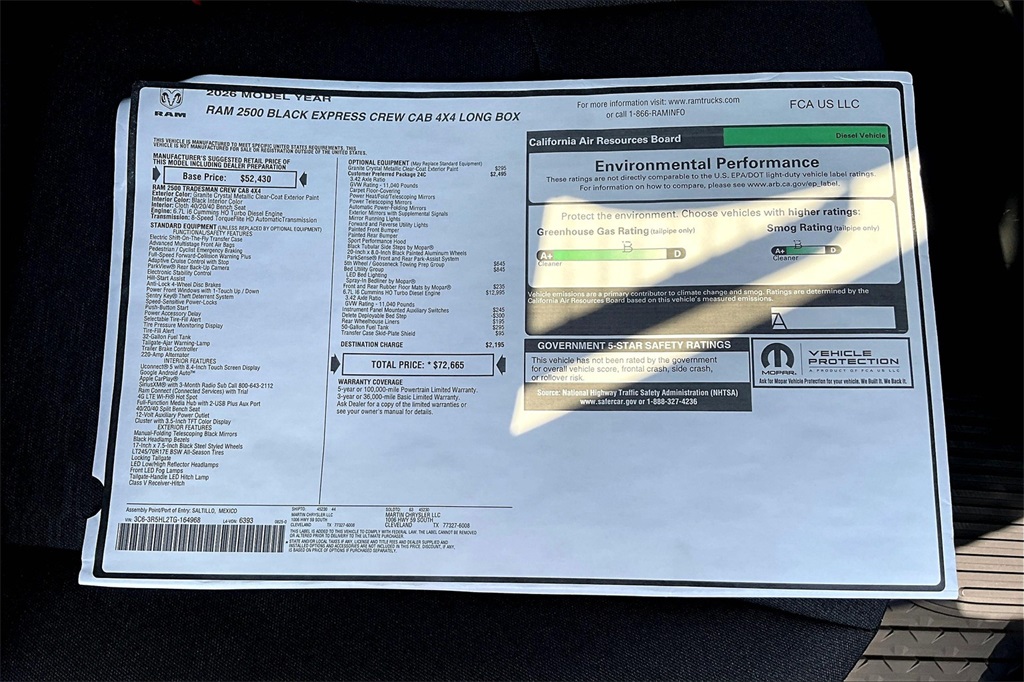 Granite Crystal Metallic Clearcoat 2026 Ram 2500 Tradesman 4WD 8-Speed Automatic 6.7L I6 Prices do not include Tax, Title, License and Documentary Fee. Price does include: $1000 - 2026 National Bonus Cash . Exp. 11/03/2025