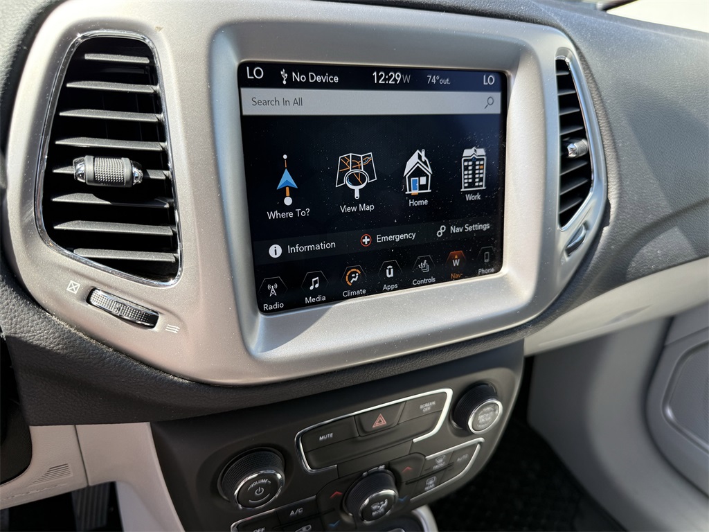 Our sales staff will help you find the vehicle that you've been searching for. We'd be happy to answer any questions that you may have. Stop by our dealership or give us a call for more information. This Compass Latitude is nicely equipped with Cold Weather Group (All-Season Floor Mats, Heated Front Seats, Heated Steering Wheel, Reversible Carpet/Vinyl Cargo Mat, and Windshield Wiper De-Icer), Navigation Group (1-Year SiriusXM Radio Service, 8.4" Touch Screen Display, Air Conditioning ATC w/Dual