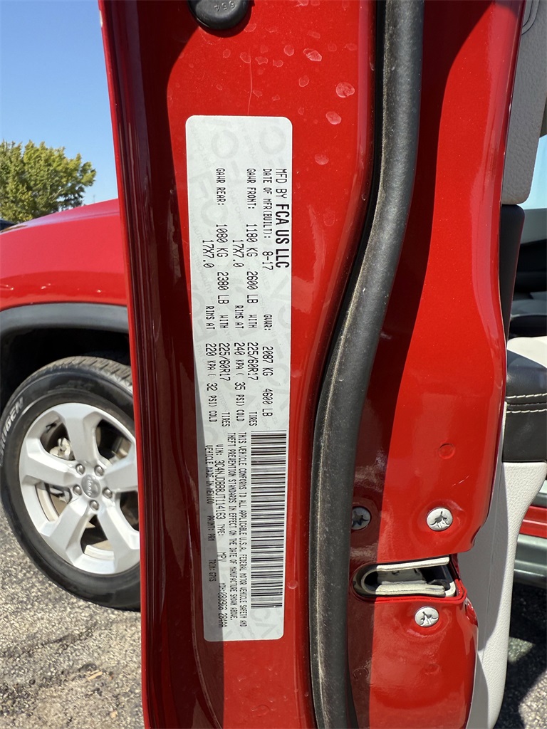 Zone Control, Apple CarPlay, For More Info, Call 800-643-2112, Google Android Auto, GPS Antenna Input, GPS Navigation, Gun Metal Interior Accents, Humidity Sensor, Integrated Center Stack Radio, Premium Air Filter, Radio: Uconnect 4C Nav w/8.4" Display, SiriusXM Satellite Radio, and USB Host Flip), Popular Equipment Group (115V Auxiliary Power Outlet, 4-Way Power Lumbar Adjust, 7.0" Touch Screen Display, Auto-Dimming Rear-View Mirror, Cluster 7.0" Color Driver Info Display, and Power 8-Way Driver/Manual 6-Way Passenger Seats), Quick Order Package 27J, 4WD, 3.833 Axle Ratio, 4-Wheel Disc Brakes, 6 Speakers, ABS brakes, Air Conditioning, Alloy wheels, AM/FM radio, Anti-whiplash front head restraints, Brake assist, Bumpers: body-color, Compass, Delay-off headlights, Driver door bin, Driver vanity mirror, Dual front impact airbags, Dual front side impact airbags, Electronic Stability Control, Four wheel independent suspension, Front anti-roll bar, Front Bucket Seats, Front Center Armrest w/Storage, Front fog lights, Front reading lights, Fully automatic headlights, Heated door mirrors, Illuminated entry, Knee airbag, Low tire pressure warning, Occupant sensing airbag, Outside temperature display, Overhead airbag, Overhead console, Panic alarm, ParkView Rear Back-Up Camera, Passenger door bin, Passenger vanity mirror, Power door mirrors, Power steering, Power windows, Premium Cloth/Vinyl Bucket Seats, Radio: Uconnect 3 w/5" Display, Rear anti-roll bar, Rear seat center armrest, Rear window defroster, Rear window wiper, Remote keyless entry, Roof rack: rails only, Speed control, Split folding rear seat, Spoiler, Steering wheel mounted audio controls, Tachometer, Telescoping steering wheel, Tilt steering wheel, Traction control, Trip computer, Variably intermittent wipers, and Wheels: 17" x 7.0" Silver Painted Aluminum.