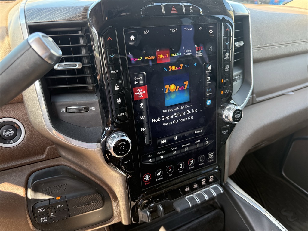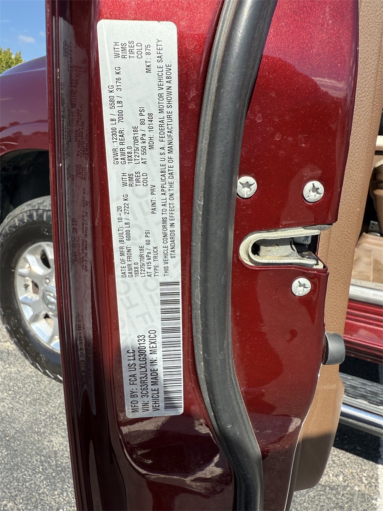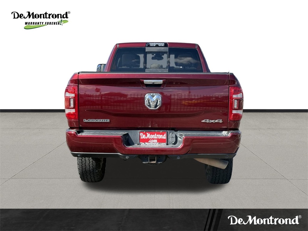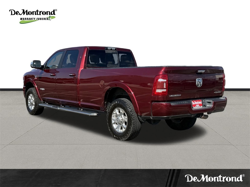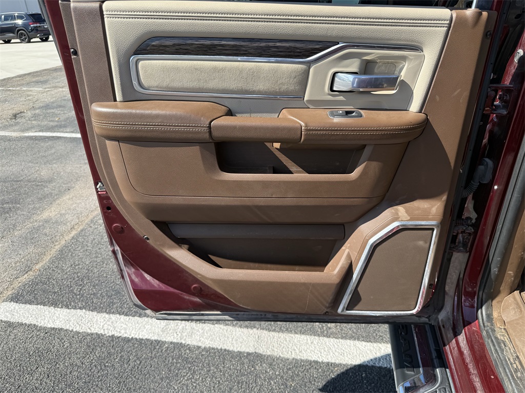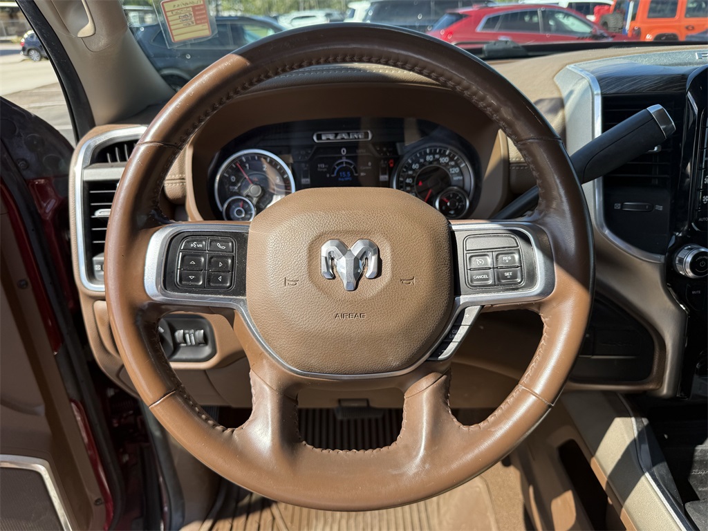 vel Link Service, 8.4" Touchscreen Display, Apple CarPlay, Auto High Beam Headlamp Control, Blind Spot & Cross Path Detection, Disassociated Touchscreen Display, Exterior Mirrors w/Memory, Foam Bottle Insert (Door Trim Panel), For Details Visit DriveUconnect.com, Google Android Auto, GPS Antenna Input, GPS Navigation, HD Radio, Heated Second Row Seats, Integrated Center Stack Radio, Integrated Voice Command w/Bluetooth, Media Hub w/2 Charge Only USBs, Mirror-Mounted Aux Reverse Lamps, Power Adjustable Convex Aux Mirrors, Power Adjustable Pedals w/Memory, Power Chrome Tow Mirrors w/Convex Spotter & Memory, Radio: Uconnect 4C Nav w/8.4" Display, Radio/Driver Seat/Mirrors/Pedals Memory, Rain Sensitive Windshield Wipers, Remote Tailgate Release, SiriusXM Satellite Radio, SiriusXM Traffic Plus, SiriusXM Travel Link, USB Host Flip, and Ventilated Front Seats), Quick Order Package 21H Laramie, Towing Technology Group (CTR Stop Lamp w/Cargo View Camera, Surround View Camera System, and Trailer Reverse Guidance), #1 Seat Foam Cushion, 10 Speakers, 115V Auxiliary Rear Power Outlet, 12" Touchscreen Display, 2 Way Rear Headrest Seat, 220 Amp Alternator, 3.73 Axle Ratio, 4 Way Front Headrests, 4-Wheel Disc Brakes, 50 Gallon Fuel Tank, 5th Wheel/Gooseneck Towing Prep Group, ABS brakes, Active Noise Control System, Adjustable pedals, Air Conditioning, Alloy wheels, AM/FM radio: SiriusXM, Apple CarPlay/Android Auto, Auto-dimming Rear-View mirror, Automatic temperature control, Brake assist, Bumpers: chrome, Center Hub, Chrome Flat Wheel-to-Wheel Side Steps, Clearance Lamps, Compass, Delay-off headlights, Driver door bin, Driver vanity mirror, Dual front impact airbags, Dual front side impact airbags, Electronic Stability Control, Electronically Controlled Throttle, Folding Flat Load Floor Storage, Front & Rear Rubber Floor Mats, Front anti-roll bar, Front Bumper Sight Shields, Front Center Armrest w/Storage, Front dual zone A/C, Front fog lights, Front reading lights, Front Seat Back Map Pockets, Fully automatic headlights, Garage door transmitter, Heated door mirrors, Heated Front Seats, Heated front seats, Heated Steering Wheel, Heated steering wheel, High Back Seats, Illuminated entry, Leather steering wheel, Leather Trim 40/20/40 Bench Seat, LED Bed Lighting, Low tire pressure warning, Occupant sensing airbag, Outside temperature display, Overhead airbag, Overhead console, Panic alarm, ParkView Rear Back-Up Camera, Passenger door bin, Passenger vanity mirror, Power 8-Way Adjustable Passenger Seat, Power Adjust 8-Way Driver Seat, Power door mirrors, Power driver seat, Power passenger seat, Power steering, Power windows, Radio data system, Radio: Uconnect 12.0 w/Navigation, Radio: Uconnect 4 w/8.4" Display, Rear 60/40 Folding Seat, Rear reading lights, Rear seat center armrest, Rear step bumper, Rear Wheelhouse Liners, Rear window defroster, Remote keyless entry, Security system, SiriusXM w/360L, Speed control, Split folding rear seat, Spray In Bedliner, Steering wheel mounted audio controls, Tachometer, Tilt steering wheel, Tip Start, Traction control, Trip computer, Turn signal indicator mirrors, Variably intermittent wipers, Voltmeter, and Wheels: 18" x 8.0" Polished AluminuM.
