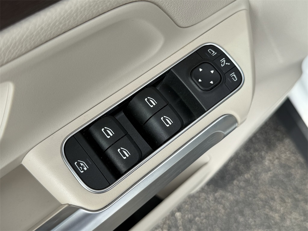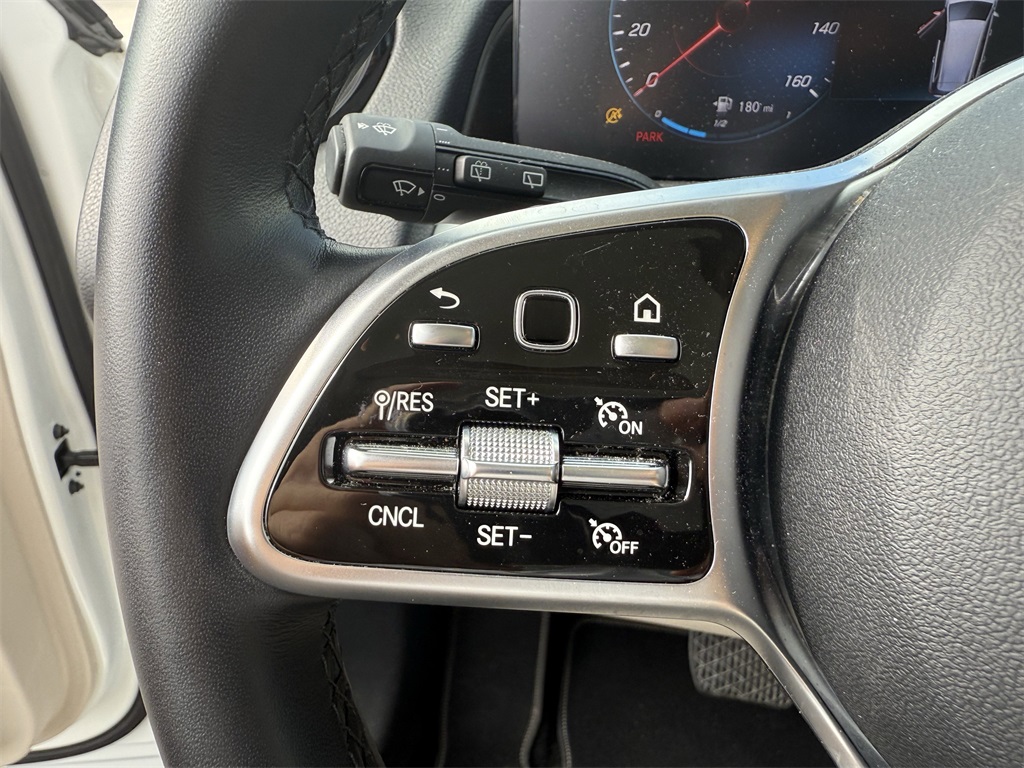 or bin, Driver vanity mirror, Dual front impact airbags, Dual front side impact airbags, Electronic Stability Control, Emergency communication system: Mercedes-Benz Emergency Call Service, Exterior Parking Camera Rear, Four wheel independent suspension, Front anti-roll bar, Front Bucket Seats, Front Center Armrest, Front Comfort Seats, Front dual zone A/C, Front fog lights, Front reading lights, Fully automatic headlights, Heated door mirrors, Illuminated entry, Knee airbag, Low tire pressure warning, MB-Tex Upholstery, Memory seat, Occupant sensing airbag, Outside temperature display, Overhead airbag, Overhead console, Panic alarm, Passenger door bin, Passenger vanity mirror, Power door mirrors, Power driver seat, Power Liftgate, Power passenger seat, Power steering, Power windows, Premium audio system: MBUX, Radio data system, Radio: Mercedes-Benz User Experience (MBUX), Rain sensing wipers, Rear anti-roll bar, Rear fog lights, Rear reading lights, Rear window defroster, Rear window wiper, Remote keyless entry, Roof rack: rails only, Security system, Speed control, Speed-sensing steering, Split folding rear seat, Spoiler, Steering wheel mounted audio controls, Tachometer, Telescoping steering wheel, Tilt steering wheel, Traction control, Trip computer, Turn signal indicator mirrors, Variably intermittent wipers, and Wheels: 7.5J x 18" Twin 5-Spoke.