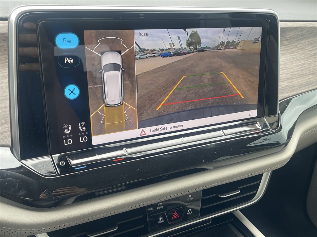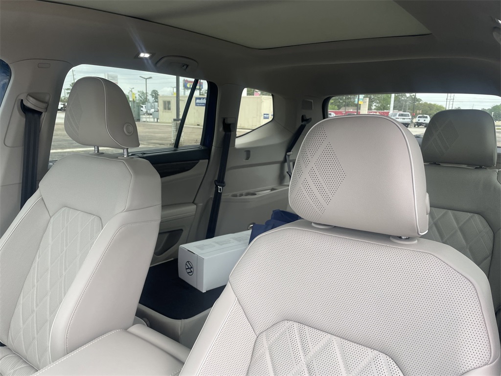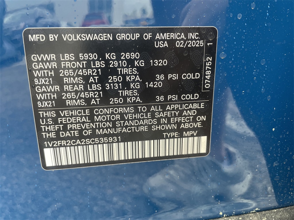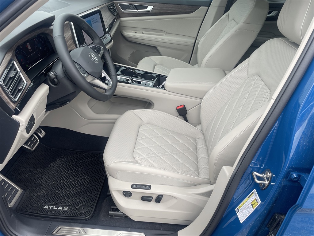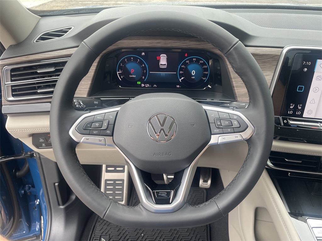 umpers: body-color, Compass, Delay-off headlights, Driver door bin, Driver vanity mirror, Dual front impact airbags, Dual front side impact airbags, Electronic Stability Control, Emergency communication system: VW Car-Net Safe & Secure 5-year, Exterior Parking Camera Rear, Four wheel independent suspension, Four-wheel Independent Suspension, Front anti-roll bar, Front Bucket Seats, Front Center Armrest, Front dual zone A/C, Front fog lights, Front reading lights, Fully automatic headlights, harman/kardon® Speakers, Heads-Up Display, Heated & Actively Ventilated Front Bucket Seats, Heated door mirrors, Heated front seats, Heated rear seats, Heated steering wheel, Illuminated entry, Leather steering wheel, Low tire pressure warning, Memory seat, Navigation System, Occupant sensing airbag, Outside temperature display, Overhead airbag, Overhead console, Panic alarm, Passenger door bin, Passenger vanity mirror, Perforated Vienna Leather Seating Surfaces, Power door mirrors, Power driver seat, Power Liftgate, Power moonroof: Panoramic, Power passenger seat, Power steering, Power windows, Radio data system, Radio: MIB3 Discover Media w/Navigation, Rain sensing wipers, Rear air conditioning, Rear anti-roll bar, Rear audio controls, Rear reading lights, Rear seat center armrest, Rear window defroster, Rear window wiper, Remote keyless entry, Security system, Speed control, Speed-sensing steering, Split folding rear seat, Spoiler, Sport steering wheel, Steering wheel mounted audio controls, Tachometer, Telescoping steering wheel, Tilt steering wheel, Traction control, Trip computer, Turn signal indicator mirrors, Variably intermittent wipers, Ventilated front seats, and Wheels: 21" 2-Tone Machined Alloy. 2025 Volkswagen Atlas 2.0T SEL Premium R-Line 4D Sport Utility Blue 18/25 City/Highway MPG Price includes: $3500 - Retail Customer Bonus. Exp. 11/03/2025