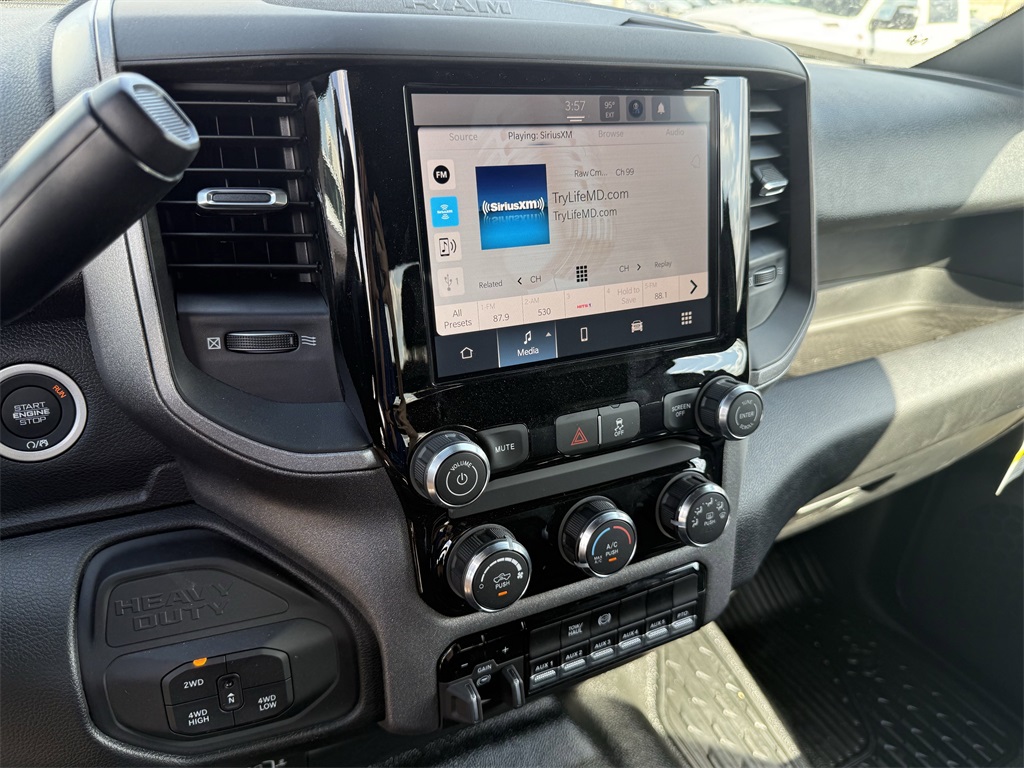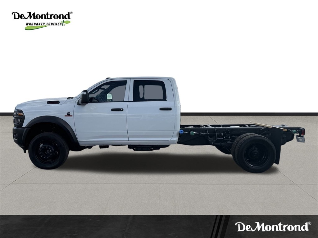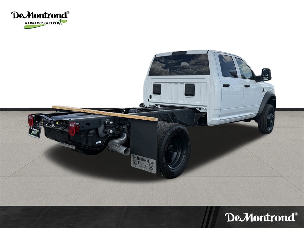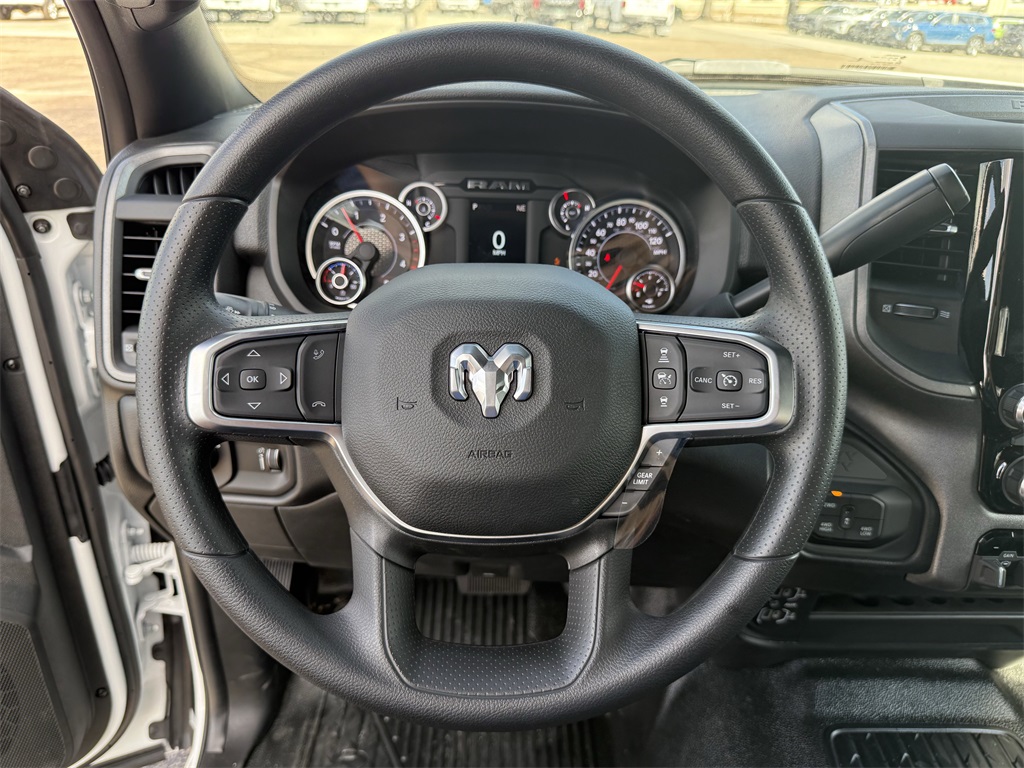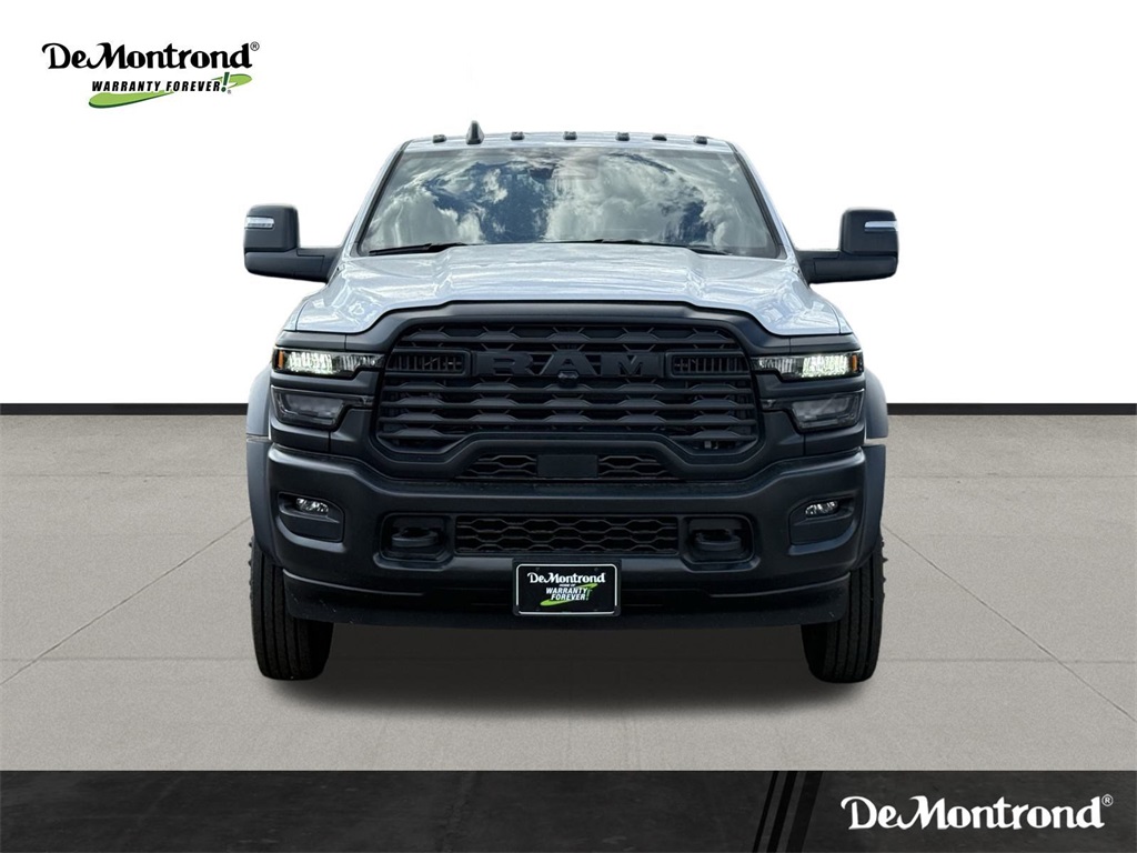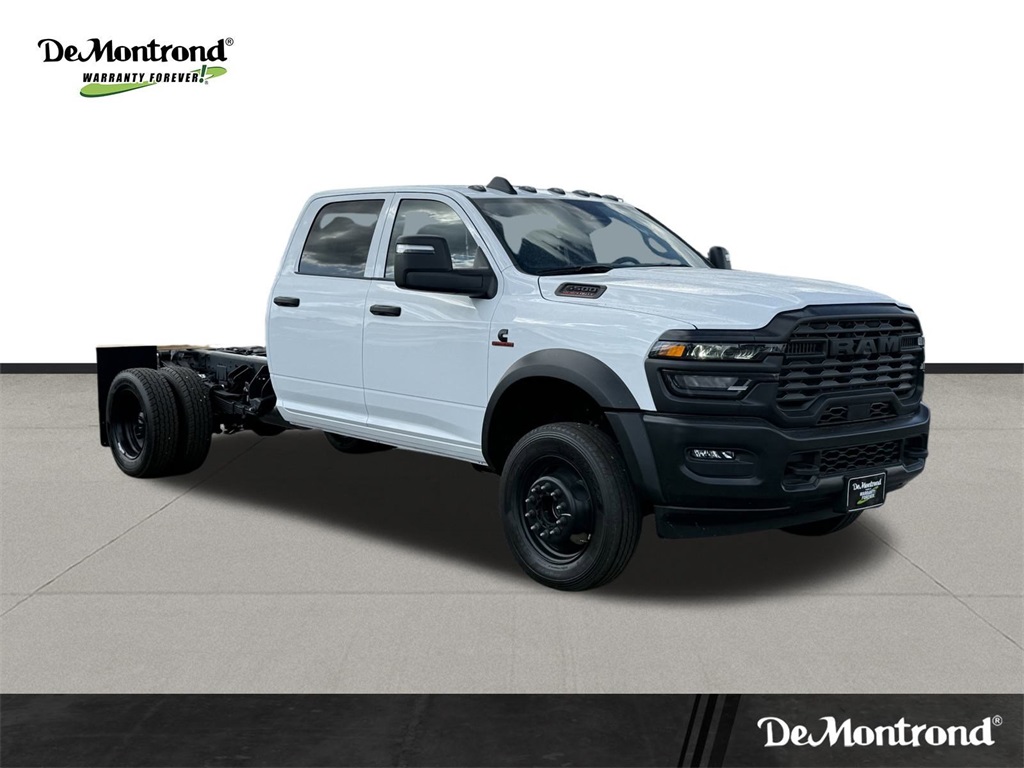 irrors Courtesy Lamps, Exterior Mirrors w/Heating Element, Exterior Mirrors w/Supplemental Signals, Manual Folding Exterior Mirrors, Manual Telescoping Mirrors, Mirror Running Lights, Power Adjust Mirrors, Power-Adjustable Convex Aux Mirrors, and Rear Window Defroster), 4-Wheel Disc Brakes, 4.44 Axle Ratio, 40/20/40 Split Bench Seat, 4G LTE Wi-Fi Hot Spot, 52 & 22 Gallon Dual Fuel Tanks, 6 Speakers, ABS brakes, Air Conditioning, AM/FM radio: SiriusXM, Apple CarPlay, Apple CarPlay/Android Auto, Compass, Connectivity - US/Canada, Delay-off headlights, Driver door bin, Dual front impact airbags, Dual rear wheels, Electronic Stability Control, Emergency communication system: RAM Connect, For Details, Visit DriveUconnect.com, Front anti-roll bar, Front Armrest w/Cupholders, Front Center Armrest w/Storage, Front fog lights, Front License Plate Bracket, Front reading lights, Fully automatic headlights, Global Telematics Box Module (TBM), Google Android Auto, GPS Antenna Input, Heavy Duty Front Suspension Group, Integrated Voice Command w/Bluetooth, Manual Adjust 4-Way Driver Seat, Manual Adjust 4-Way Front Passenger Seat, Manufacturer's Statement of Origin, Occupant sensing airbag, Outside temperature display, Overhead console, Panic alarm, Passenger door bin, Passenger vanity mirror, Power steering, Power Take-Off Right/Left, Power windows, Radio data system, Radio: Uconnect 5 w/8.4" Display, Rear anti-roll bar, Rear Folding Seat, Rear reading lights, Remote keyless entry, Remote USB Port - Charge Only, Speed control, Tachometer, Temperature & Compass Gauge, Tilt steering wheel, Traction control, Variably intermittent wipers, Voltmeter, and Wheels: 19.5" x 6.0" Black Painted SteeL. 2026 Ram 5500HD Tradesman 4D Crew Cab Bright White Clearcoat