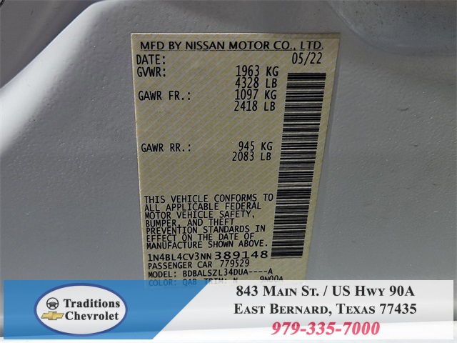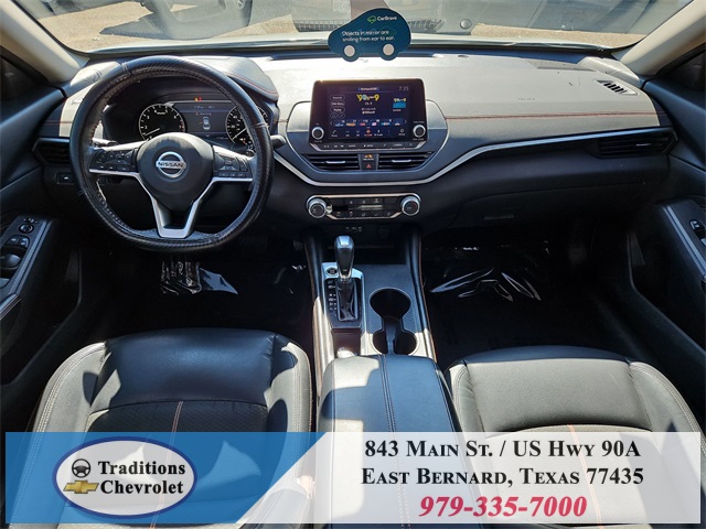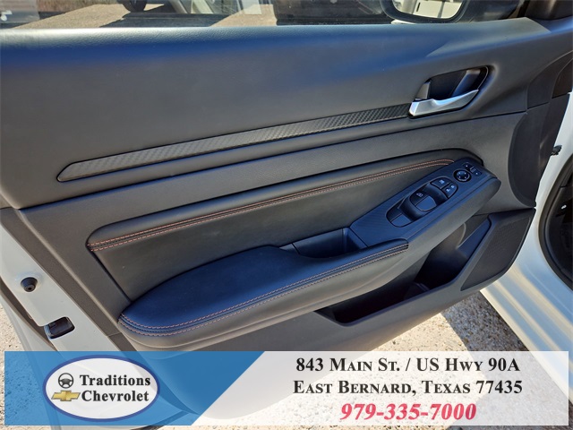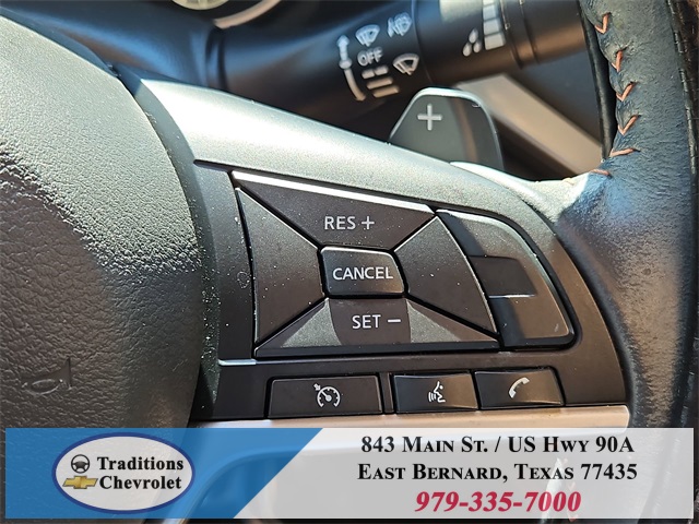 act airbags, Electronic Stability Control, Four wheel independent suspension, Front anti-roll bar, Front Bucket Seats, Front Center Armrest, Front reading lights, Front Sport Bucket Seats, Fully automatic headlights, Illuminated entry, Knee airbag, Leather Shift Knob, Low tire pressure warning, NissanConnect featuring Apple CarPlay and Android Auto, Occupant sensing airbag, Outside temperature display, Overhead airbag, Overhead console, Panic alarm, Passenger door bin, Passenger vanity mirror, Power door mirrors, Power driver seat, Power steering, Power windows, Radio data system, Radio: AM/FM Audio System, Rear anti-roll bar, Rear Parking Sensors, Rear reading lights, Rear seat center armrest, Rear side impact airbag, Rear window defroster, Remote keyless entry, Security system, Speed control, Speed-sensing steering, Speed-Sensitive Wipers, Split folding rear seat, Sport Seat Trim, Sport steering wheel, SR Floor Mats/Trunk Mat/Hideaway Nets, Steering wheel mounted audio controls, Tachometer, Telescoping steering wheel, Tilt steering wheel, Traction control, Trip computer, Trunk Organizer Tray, Variably intermittent wipers, and Wheels: 19" Machined Alloy. Certification Program Details: CARBRAVO CERTIFIED