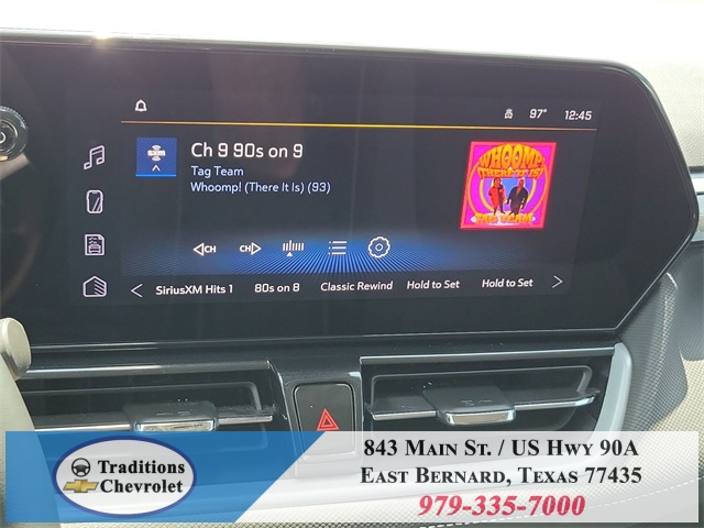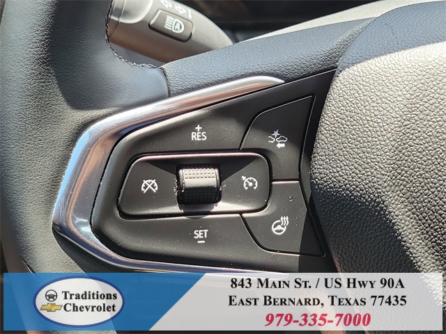 atic Climate Control, and Wireless Charging), Driver Confidence Package (Lane Change Alert w/Side Blind Zone Alert, Rear Cross Traffic Alert, and Rear Park Assist), LT Cold Weather Package (Heated Driver & Front Passenger Seats, Heated Steering Wheel, Satin Silver & Chrome Wrapped Shift Knob, and Wrapped Steering Wheel), Preferred Equipment Group 1LT, CARBRAVO CERTIFIED Certified, 1 Type-A & 1 Type-C USB Ports, 4-Way Manual Front Passenger Seat Adjuster, 4-Wheel Disc Brakes, 5.45 Final Drive Axle Ratio, 6 Speakers, 6-Speaker Audio System Feature, 6-Way Manual Driver Seat Adjuster, ABS brakes, Air Conditioning, Alloy wheels, AM/FM radio: SiriusXM, Auto High-beam Headlights, Brake assist, Bumpers: body-color, Cloth Seat Trim, Compass, Delay-off headlights, Driver door bin, Driver vanity mirror, Dual front impact airbags, Dual front side impact airbags, Electronic Stability Control, Emergency communication system: OnStar and Chevrolet connected services capable, Exterior Parking Camera Rear, Flat-Folding Front Passenger Seatback, Front anti-roll bar, Front Bucket Seats, Front Center Armrest, Front License Plate Bracket, Front reading lights, Front wheel independent suspension, Fully automatic headlights, Heated door mirrors, Illuminated entry, Knee airbag, Low tire pressure warning, Occupant sensing airbag, Overhead airbag, Overhead console, Panic alarm, Passenger door bin, Passenger vanity mirror, Power door mirrors, Power steering, Power windows, Radio data system, Radio: AM/FM Stereo Audio System, Rear side impact airbag, Rear window defroster, Rear window wiper, Remote keyless entry, Ride & Handling Suspension, Security system, SiriusXM Trial Subscription, Speed control, Split folding rear seat, Spoiler, Steering wheel mounted audio controls, Tachometer, Telescoping steering wheel, Tilt steering wheel, Traction control, Trip computer, Variably intermittent wipers, Wheels: 17" High Gloss Black Machined Aluminum, and Wireless Apple CarPlay/Android Auto. Certification Program Details: CARBRAVO CERTIFIED