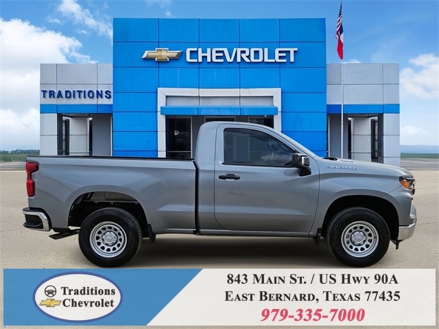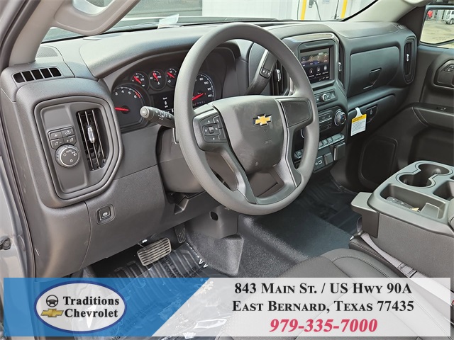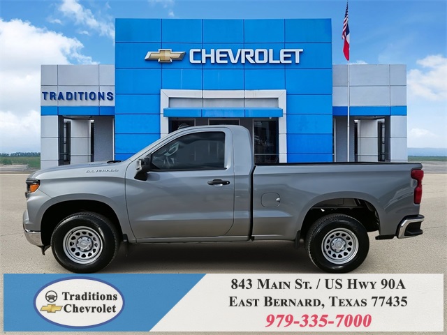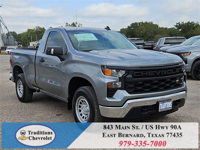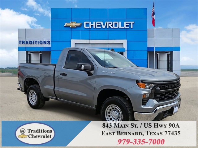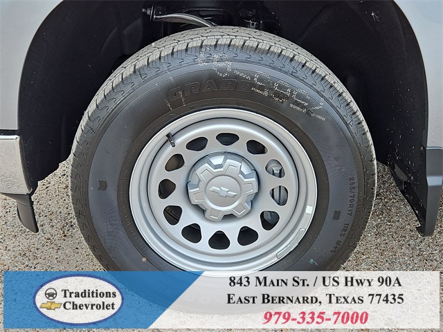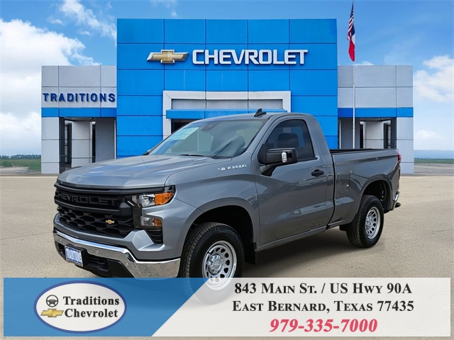 nStar Services Capable, Power Front Windows w/Driver Express Up/Down, Power Front Windows w/Passenger Express Down, Remote Keyless Entry, Rubberized-Vinyl Floor Covering, SiriusXM Delete, Solar Absorbing Tinted Glass, Standard Tailgate, Teen Driver, Tire Pressure Monitoring System, and Wi-Fi Hot Spot Capable), Standard Suspension Package, Trailering Package (Hitch Guidance), WT Convenience Package (Deep-Tinted Glass and Electric Rear-Window Defogger), WT Safety Package (Front Chrome Bumper, High Gloss Black Mirror Caps, Lane Change Alert w/Side Blind Zone Alert, Perimeter Lighting, Rear Chrome Bumper, Rear Cross Traffic Braking, Rear Pedestrian Alert, and Ultrasonic Front & Rear Park Assist), WT Value Package, 8-Speed Automatic, Jet Black Vinyl, 120-Volt Bed Mounted Power Outlet, 120-Volt Interior Power Outlet, 2 Speakers, 2-Speaker Audio System, 220 Amp Alternator, 3.42 Rear Axle Ratio, 4-Wheel Disc Brakes, 40/20/40 Front Split Bench Seat, ABS brakes, Air Conditioning, Apple CarPlay/Android Auto, Auto High-beam Headlights, Automatic Emergency Braking, Brake assist, Chevytec Spray-On Black Bedliner, Compass, Delay-off headlights, Driver door bin, Dual front impact airbags, Dual front side impact airbags, Electronic Stability Control, Emergency communication system: OnStar, EZ Lift Power Lock & Release Tailgate, Following Distance Indicator, Forward Collision Alert, Front anti-roll bar, Front Center Armrest w/Storage, Front License Plate Kit, Front Pedestrian Braking, Front reading lights, Front wheel independent suspension, Fully automatic headlights, Heated door mirrors, Illuminated entry, IntelliBeam Automatic High Beam On/Off, Lane Keep Assist w/Lane Departure Warning, Low tire pressure warning, Occupant sensing airbag, Outside temperature display, Overhead airbag, Overhead console, Panic alarm, Passenger door bin, Passenger vanity mirror, Power door mirrors, Power steering, Power windows, Premium audio system: Chevrolet Infotainment 3, Radio data system, Radio: Chevrolet Infotainment 3 System, Rear reading lights, Rear step bumper, Remote keyless entry, Speed control, Speed-sensing steering, Tachometer, Tilt steering wheel, Traction control, Trip computer, Variably intermittent wipers, Vinyl Seat Trim, Voltmeter, and Wheels: 17" x 8" Ultra Silver Painted Steel. Tax, title, license and dealer fees (unless itemized above) are extra. Not available with special finance or lease offers. See Dealer for Details. Price includes: $1000 - Bonus Cash. Exp. 11/03/2025 $1750 - Customer Cash. Exp. 11/03/2025