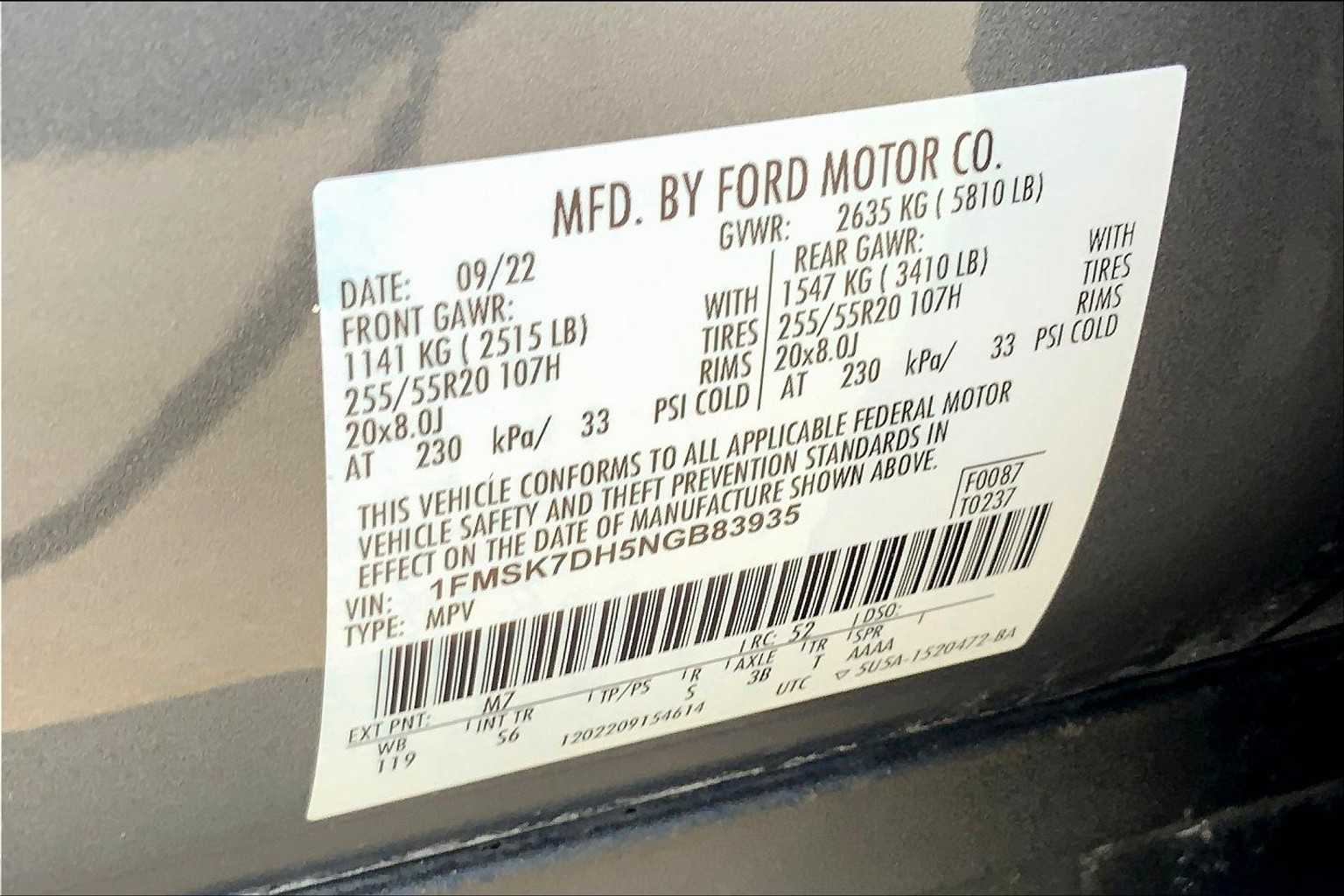 • TWIN PANEL MOONROOF ,WHEELS: 20 PREMIUM PAINTED ALUMINUM -inc: Tires: P255/55R20 AS BSW ,FORD CO-PILOT360 ASSIST+ -inc: Speed Sign Recognition, Voice-Activated Touchscreen Navigation System, pinch-to-zoom capability, SiriusXM Traffic and Travel Link, Note: SiriusXM Traffic and Travel Link includes a 5-year prepaid subscription, SiriusXM Traffic and Travel Link service is not available in Alaska or Hawaii, After your trial period ends, Sirius XM audio and data services each require a subscription sold separately, or as a package, by SiriusXM Radio Inc, See SiriusXM customer agreement for complete terms at www.siriusxm.com, All fees and programming subject to change, Trial subscriptions not available in Alaska and Hawaii, Evasive Steering Assist, Intelligent Adaptive Cruise Control, stop-and-go and lane centering