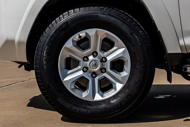 The SR5 is the base model, but it is not bare-bones. Standard features include 17-inch wheels, skid plates, foglights, a rearview camera, heated mirrors, roof rails, a windshield wiper de-icer, a power rear window, power front seateight-way driver, four-way passenger40-20-40-split reclining and folding second-row seats, cloth upholstery, a leather-wrapped steering wheel, and a 120-volt power outlet in the rear cargo area. The standard infotainment system boasts a 6.1-inch touchscreen, one USB port, and an eight-speaker sound system with a CD player, a media player interface, and HD and satellite radio.