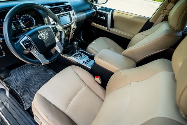 A rugged, yet intuitive, interior trim and panel shape give you total control of 4Runner. Traction, power, temperature and a lot more are just a turn of a knob, touch on a screen or voice command away. Exploring the vast unknown requires a great amount of space for company or cargo. 4Runners roomy interior seats up to seven passengers and has plenty of features to keep everyone comfortable no matter how long the journey, like front and rear 12V power outlets for charging personal electronics, a variety of storage options, and available power-adjustable driver and front passenger seats.