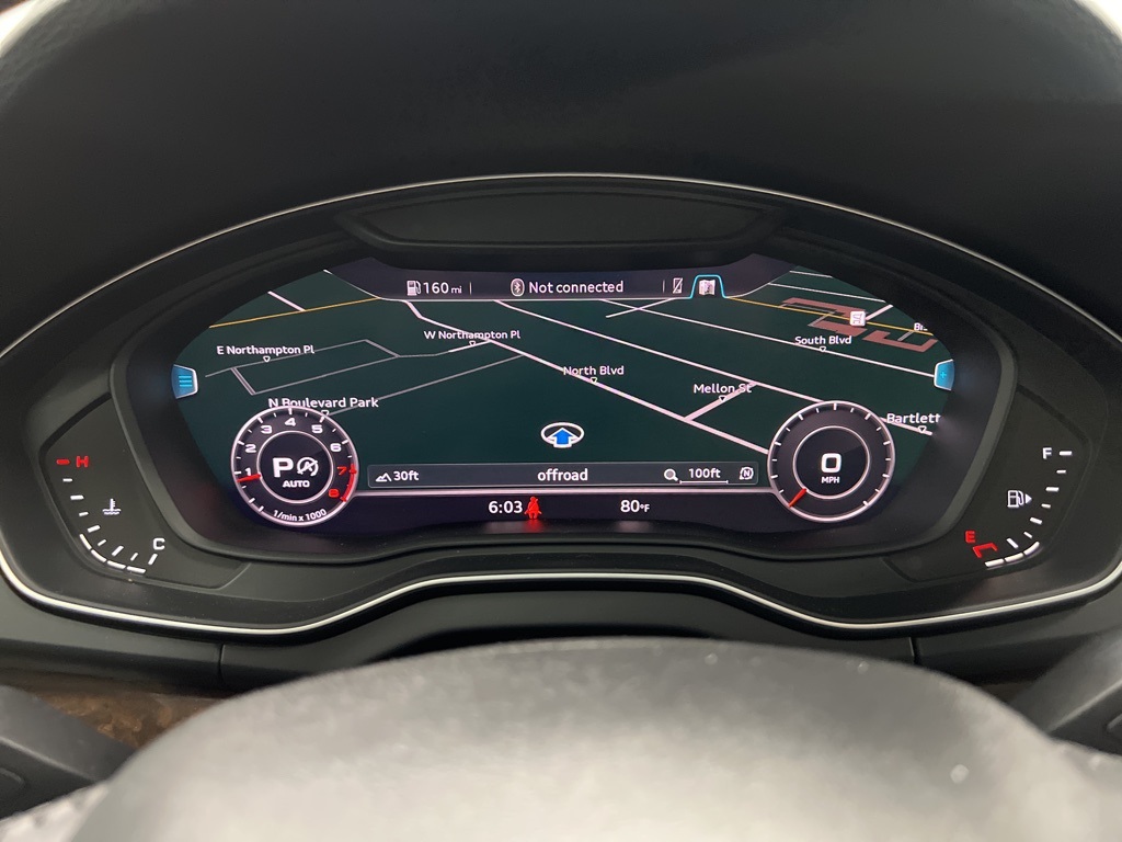 stem Plus (Front/Rear Acoustic Sensors), Rear Cross Traffic Assist, Stainless Steel Door Sills, and Vehicle Exit Assist), Black Leather, 10 Speakers, 4-Wheel Disc Brakes, 5.302 Axle Ratio, 8-Way Power Front Bucket Seats, ABS brakes, Air Conditioning, Alloy wheels, AM/FM radio: SiriusXM, Audi Guard All-Weather Floor Mats (Set of 4), Audi smartphone interface (Apple CarPlay/Android Auto), Auto-dimming door mirrors, Auto-dimming Rear-View mirror, Automatic temperature control, Bang & Olufsen 3D Sound System, Black Privacy Trunk Cover, Brake assist, Bumpers: body-color, Compass, Delay-off headlights, Driver door bin, Driver vanity mirror, Dual front impact airbags, Dual front side impact airbags, DVD-Audio, Electronic Stability Control, Emergency communication system: Audi connect CARE, Exterior Parking Camera Rear, Four wheel independent suspension, Front anti-roll bar, Front Bucket Seats, Front Center Armrest, Front dual zone A/C, Front fog lights, Front reading lights, Garage door transmitter: HomeLink, Genuine wood console insert, Genuine wood dashboard insert, Genuine wood door panel insert, Heated door mirrors, High intensity discharge headlights: Xenon plus, Illuminated entry, Leather Seating Surfaces, Leather Shift Knob, Leather steering wheel, Low tire pressure warning, Memory seat, Navigation System, Occupant sensing airbag, Outside temperature display, Overhead airbag, Overhead console, Panic alarm, Passenger door bin, Passenger vanity mirror, Power door mirrors, Power driver seat, Power Liftgate, Power passenger seat, Power steering, Power windows, Radio data system, Radio: MMI Navigation Plus System, Rain sensing wipers, Rear air conditioning, Rear anti-roll bar, Rear fog lights, Rear reading lights, Rear seat center armrest, Rear window defroster, Rear window wiper, Remote keyless entry, Roof rack, Security system, SiriusXM All Access Service, Speed control, Speed-sensing steering, Speed-Sensitive Wipers, Split folding rear seat, Spoiler, Steering wheel mounted audio controls, Tachometer, Telescoping steering wheel, Tilt steering wheel, Traction control, Trip computer, Turn signal indicator mirrors, USB Cables (DISC), Variably intermittent wipers, Wheels: 8" x 18" 5-Double-Spoke Dynamic Design, and Wheels: 8" x 20" 5-Spoke Segment Design.