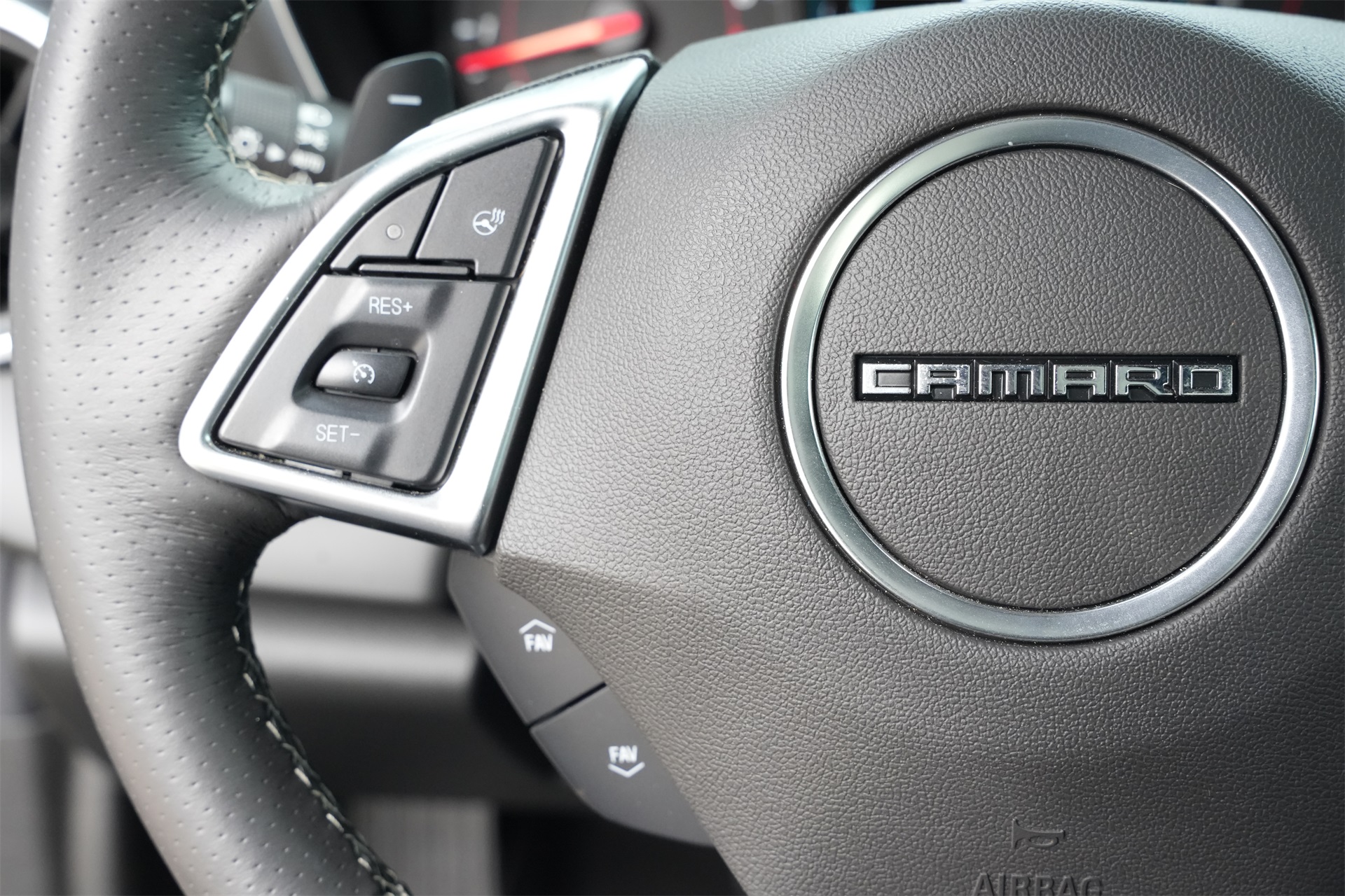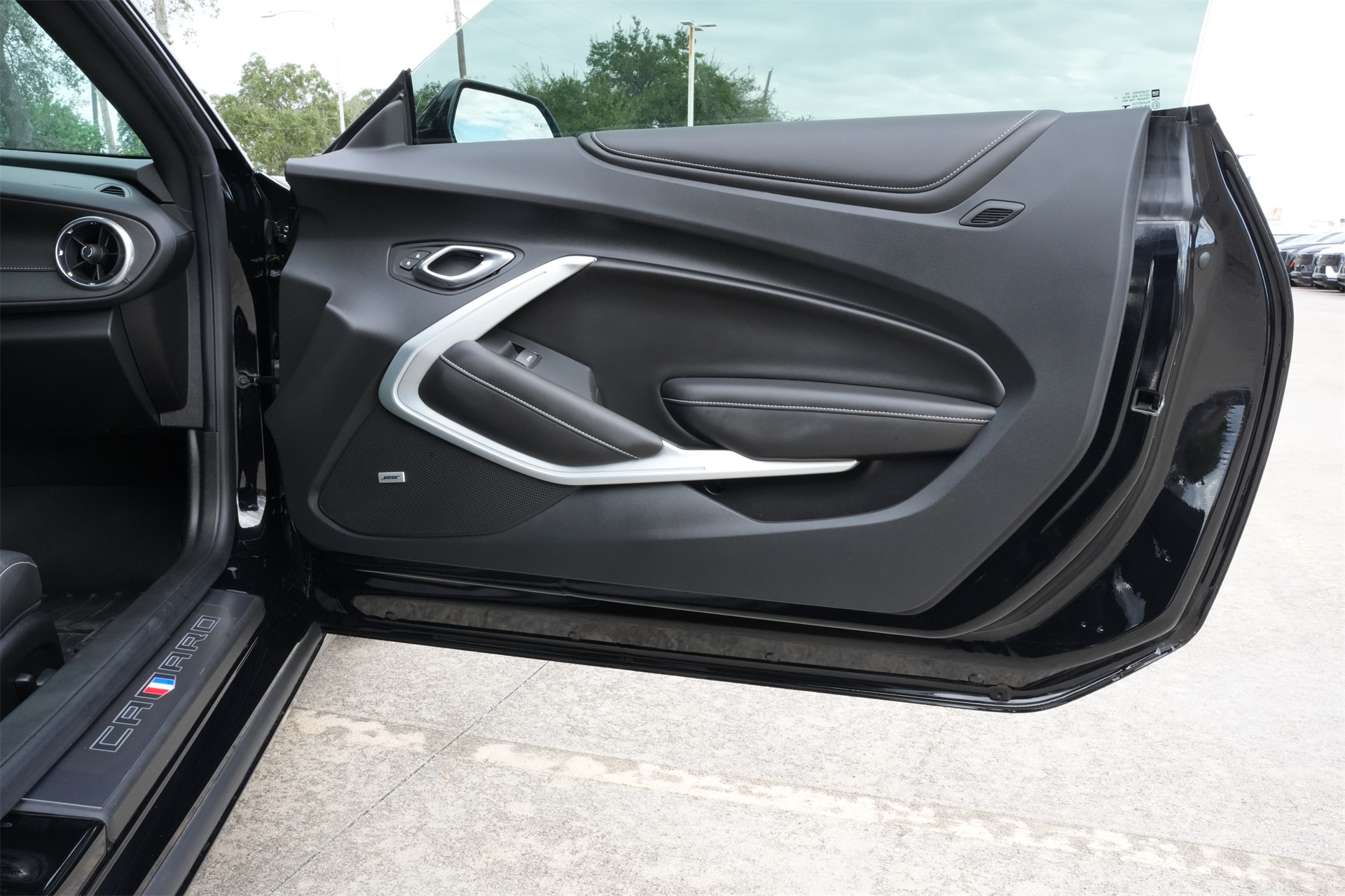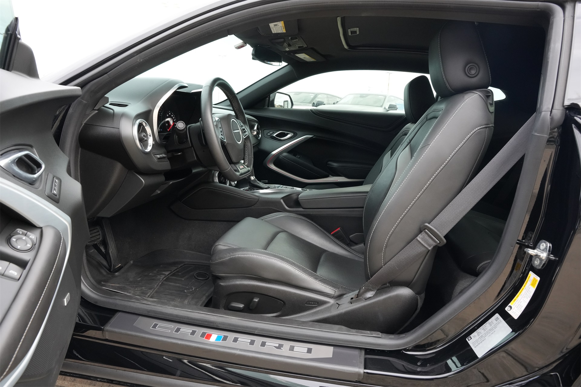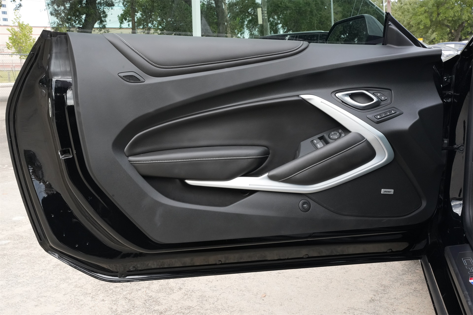 LPO), and Suspension Lowering Kit (LPO)), Performance Handling Package (LPO), Preferred Equipment Group 2SS, SS 1LE Track Performance Package (Dual Mode Performance Exhaust, Electronic Limited Slip Differential (eLSD), Magnetic Ride Control, Performance Suspension, RECARO Performance Front Bucket Seats, Red Brembo Brakes, Satin Black Front Splitter, Satin Black Hood Wrap, Satin Black Rear Blade Spoiler, Sueded Flat-Bottom 3-Spoke Steering Wheel, Sueded Microfiber-Wrapped Shift Knob, and Wheels: 20" x 10" Fr & 20" x 11" Rr Satin Graphite), 2 USB Ports & Auxiliary Input Jack, 2.77 Rear Axle Ratio, 4-Wheel Disc Brakes, 6-Way Power Front Passenger Seat Adjuster, 8-Way Power Driver Seat Adjuster, 9 Speakers, ABS brakes, Air Conditioning, Alloy wheels, AM/FM radio: SiriusXM, Apple CarPlay/Android Auto, Auto-dimming door mirrors, Auto-dimming Rear-View mirror, Automatic temperature control, Black SS Wheel Center Caps (LPO), Bose Premium 9-Speaker Audio System Feature, Brake assist, Bumpers: body-color, Compass, Delay-off headlights, Driver door bin, Driver vanity mirror, Dual front impact airbags, Dual front side impact airbags, Electronic Stability Control, Emergency communication system: OnStar Guidance, Exterior Parking Camera Rear, Four wheel independent suspension, Front anti-roll bar, Front Bucket Seats, Front Center Armrest, Front dual zone A/C, Front fog lights, Front reading lights, Front Sport Bucket Seats, Fully automatic headlights, Garage door transmitter, Heads-Up Display, Heated door mirrors, Heated Driver & Front Passenger Seats, Heated front seats, Heated steering wheel, High-Intensity Discharge Headlights, Illuminated Black Bowtie Emblem (LPO), Illuminated entry, Knee airbag, Leather Shift Knob, Leather-Trimmed Seat Trim, Low tire pressure warning, Memory seat, Occupant sensing airbag, Outside temperature display, Overhead airbag, Paddle-Shift Manual Controls, Panic alarm, Passenger door bin, Passenger vanity mirror, Power door mirrors, Power driver seat, Power passenger seat, Power steering, Power Sunroof, Power windows, Premium audio system: Chevrolet MyLink, Radio data system, Radio: Chevrolet MyLink Audio System, Radio: Chevrolet MyLink w/Navigation, Rear anti-roll bar, Rear window defroster, Remote keyless entry, Remote Vehicle Starter System, Security system, SiriusXM Satellite Radio, Speed control, Speed-sensing steering, Spoiler, Steering wheel mounted audio controls, Tachometer, Telescoping steering wheel, Tilt steering wheel, Traction control, Trip computer, Variably intermittent wipers, Ventilated Driver & Front Passenger Seats, Ventilated front seats, Voltmeter, Wheels: 20" x 8.5" Fr & 20" x 9.5" Rr 5-Spoke, Wheels: 20" x 8.5" Fr & 20" x 9.5" Rr 5-Spoke Alum, and Wheels: 20" x 8.5" Fr/20" x 9.5" Rr Blk-Painted. Black RWD 8-Speed Automatic 6.2L V8 CARFAX 1-Owner, Clean CARFAX!, Non-Smoker, Low Miles, Bluetooth, Apple Carplay / Android Auto, Heated Seats, Cooled Seats, Blackout Package.