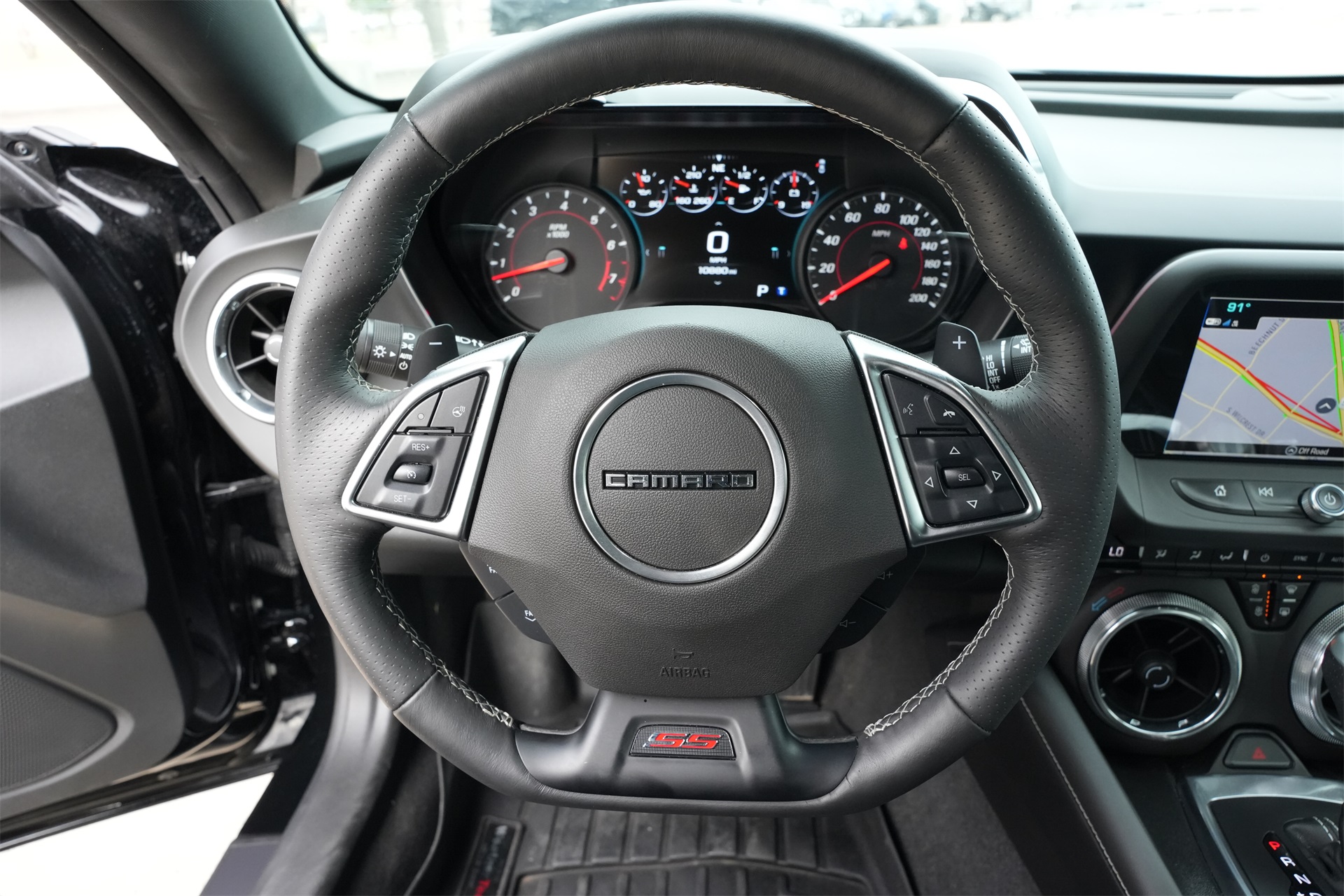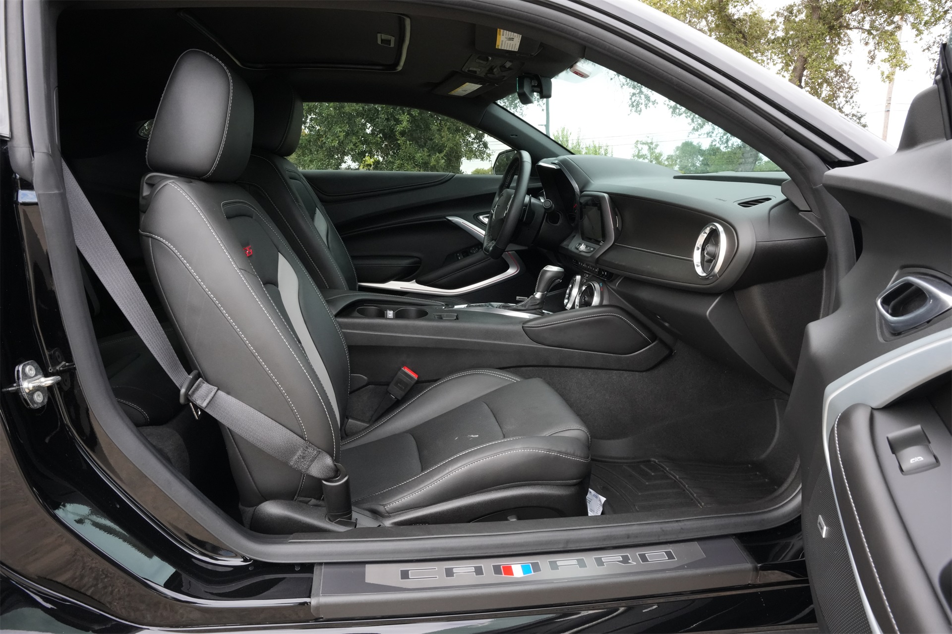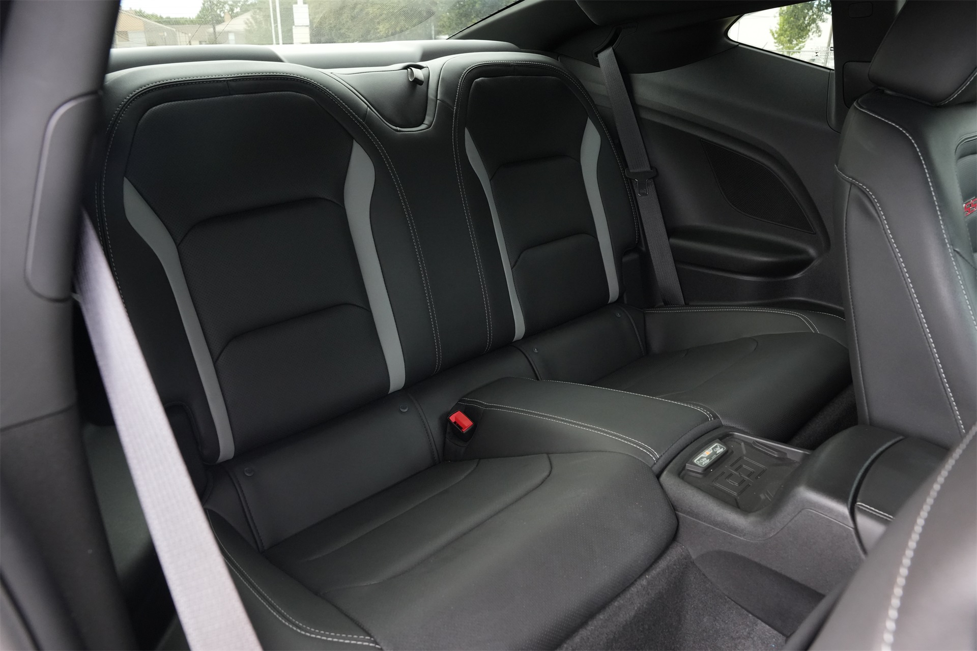 LPO), and Suspension Lowering Kit (LPO)), Performance Handling Package (LPO), Preferred Equipment Group 2SS, SS 1LE Track Performance Package (Dual Mode Performance Exhaust, Electronic Limited Slip Differential (eLSD), Magnetic Ride Control, Performance Suspension, RECARO Performance Front Bucket Seats, Red Brembo Brakes, Satin Black Front Splitter, Satin Black Hood Wrap, Satin Black Rear Blade Spoiler, Sueded Flat-Bottom 3-Spoke Steering Wheel, Sueded Microfiber-Wrapped Shift Knob, and Wheels: 20" x 10" Fr & 20" x 11" Rr Satin Graphite), 2 USB Ports & Auxiliary Input Jack, 2.77 Rear Axle Ratio, 4-Wheel Disc Brakes, 6-Way Power Front Passenger Seat Adjuster, 8-Way Power Driver Seat Adjuster, 9 Speakers, ABS brakes, Air Conditioning, Alloy wheels, AM/FM radio: SiriusXM, Apple CarPlay/Android Auto, Auto-dimming door mirrors, Auto-dimming Rear-View mirror, Automatic temperature control, Black SS Wheel Center Caps (LPO), Bose Premium 9-Speaker Audio System Feature, Brake assist, Bumpers: body-color, Compass, Delay-off headlights, Driver door bin, Driver vanity mirror, Dual front impact airbags, Dual front side impact airbags, Electronic Stability Control, Emergency communication system: OnStar Guidance, Exterior Parking Camera Rear, Four wheel independent suspension, Front anti-roll bar, Front Bucket Seats, Front Center Armrest, Front dual zone A/C, Front fog lights, Front reading lights, Front Sport Bucket Seats, Fully automatic headlights, Garage door transmitter, Heads-Up Display, Heated door mirrors, Heated Driver & Front Passenger Seats, Heated front seats, Heated steering wheel, High-Intensity Discharge Headlights, Illuminated Black Bowtie Emblem (LPO), Illuminated entry, Knee airbag, Leather Shift Knob, Leather-Trimmed Seat Trim, Low tire pressure warning, Memory seat, Occupant sensing airbag, Outside temperature display, Overhead airbag, Paddle-Shift Manual Controls, Panic alarm, Passenger door bin, Passenger vanity mirror, Power door mirrors, Power driver seat, Power passenger seat, Power steering, Power Sunroof, Power windows, Premium audio system: Chevrolet MyLink, Radio data system, Radio: Chevrolet MyLink Audio System, Radio: Chevrolet MyLink w/Navigation, Rear anti-roll bar, Rear window defroster, Remote keyless entry, Remote Vehicle Starter System, Security system, SiriusXM Satellite Radio, Speed control, Speed-sensing steering, Spoiler, Steering wheel mounted audio controls, Tachometer, Telescoping steering wheel, Tilt steering wheel, Traction control, Trip computer, Variably intermittent wipers, Ventilated Driver & Front Passenger Seats, Ventilated front seats, Voltmeter, Wheels: 20" x 8.5" Fr & 20" x 9.5" Rr 5-Spoke, Wheels: 20" x 8.5" Fr & 20" x 9.5" Rr 5-Spoke Alum, and Wheels: 20" x 8.5" Fr/20" x 9.5" Rr Blk-Painted. Black RWD 8-Speed Automatic 6.2L V8 CARFAX 1-Owner, Clean CARFAX!, Non-Smoker, Low Miles, Bluetooth, Apple Carplay / Android Auto, Heated Seats, Cooled Seats, Blackout Package.
