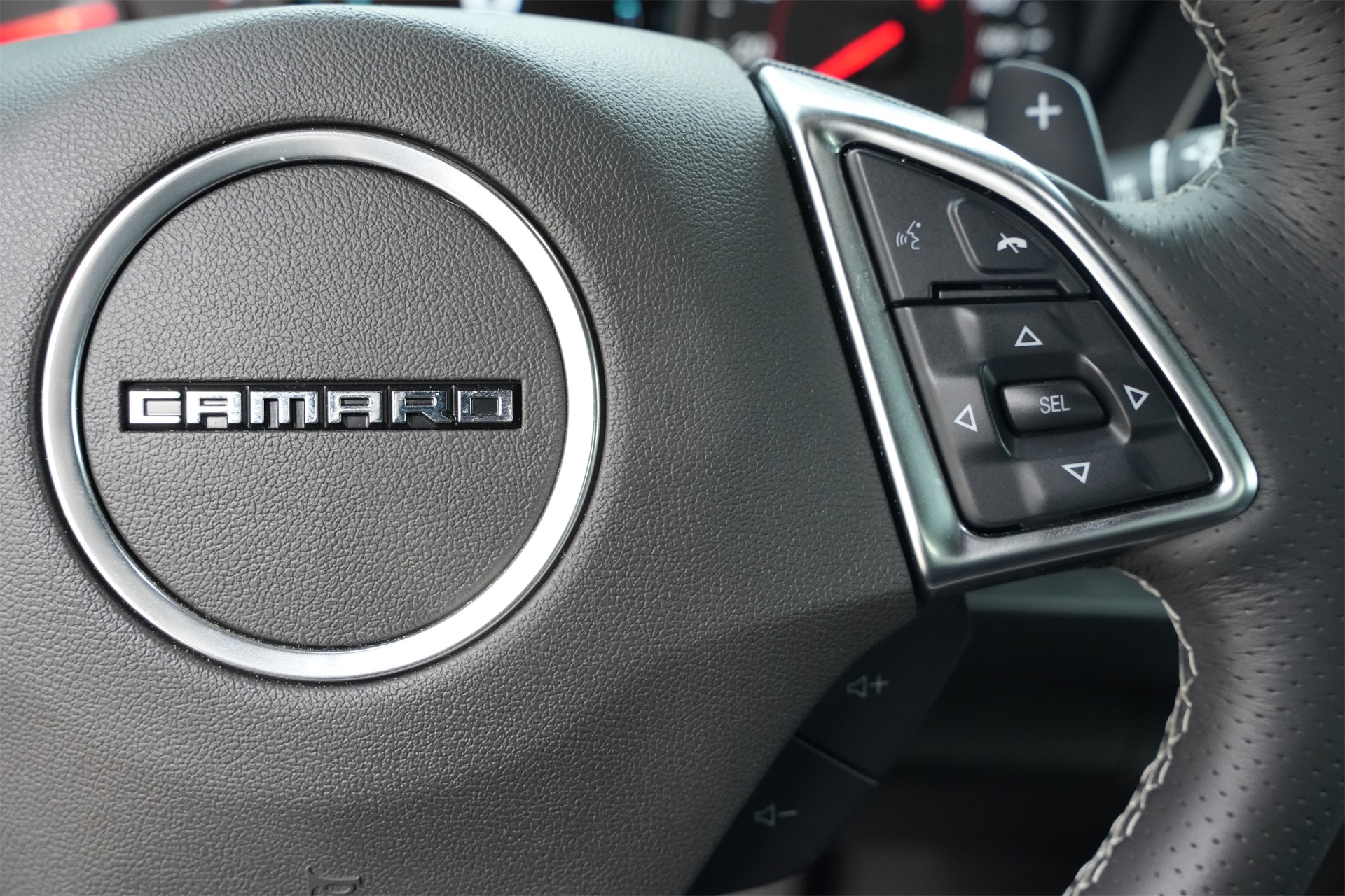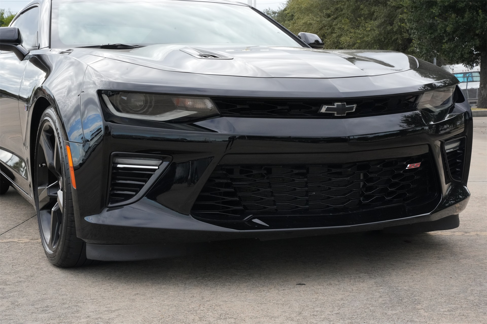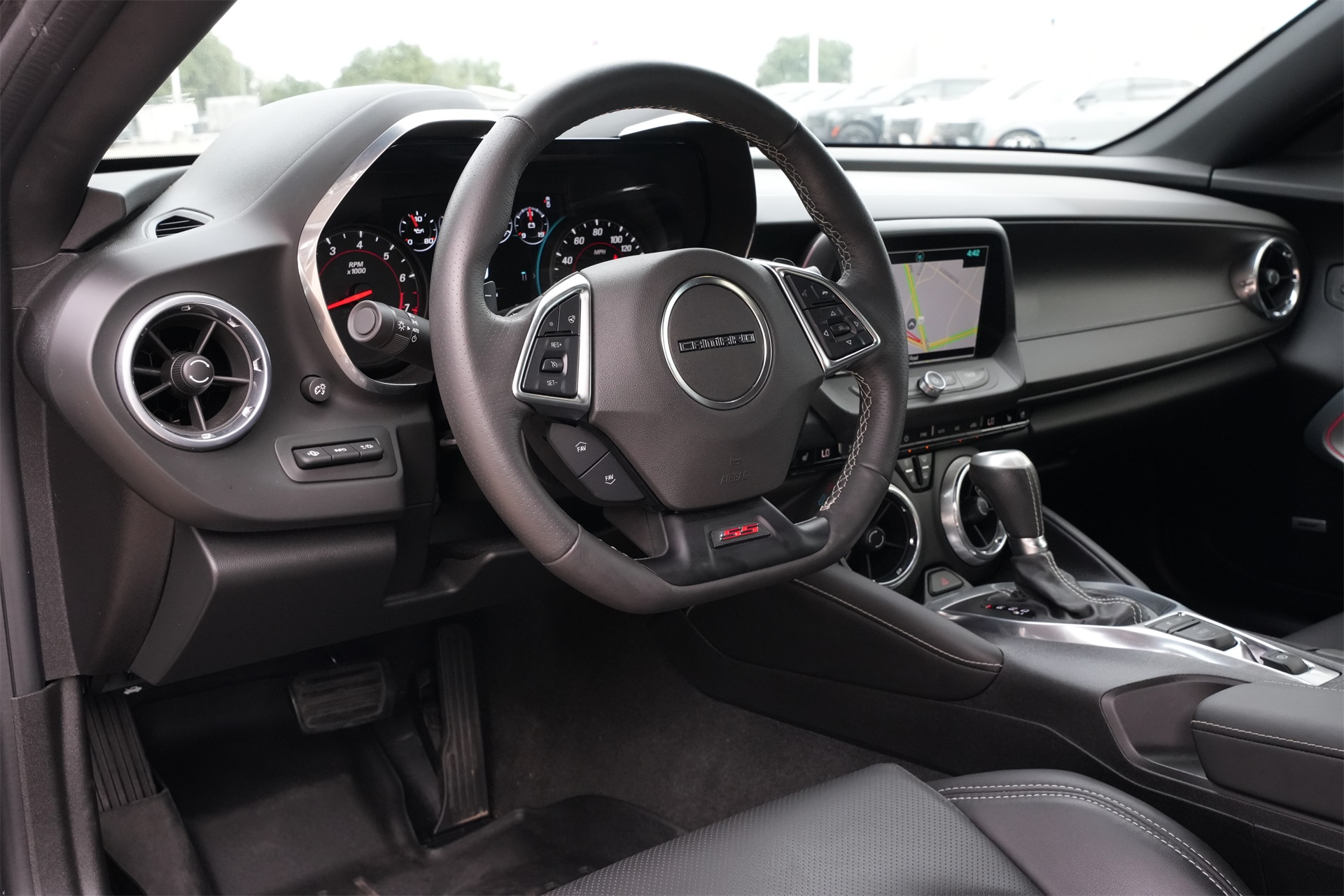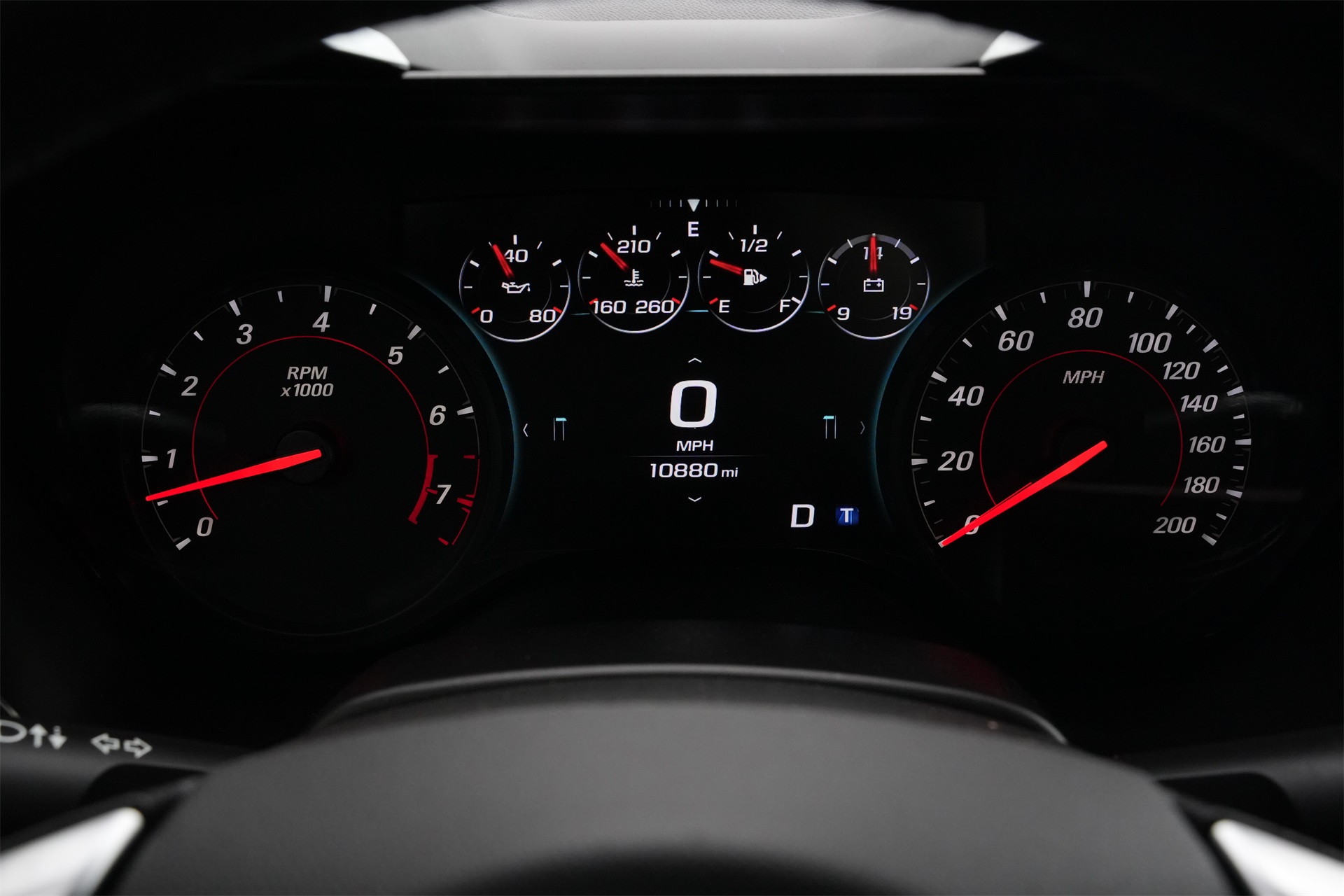 LPO), and Suspension Lowering Kit (LPO)), Performance Handling Package (LPO), Preferred Equipment Group 2SS, SS 1LE Track Performance Package (Dual Mode Performance Exhaust, Electronic Limited Slip Differential (eLSD), Magnetic Ride Control, Performance Suspension, RECARO Performance Front Bucket Seats, Red Brembo Brakes, Satin Black Front Splitter, Satin Black Hood Wrap, Satin Black Rear Blade Spoiler, Sueded Flat-Bottom 3-Spoke Steering Wheel, Sueded Microfiber-Wrapped Shift Knob, and Wheels: 20" x 10" Fr & 20" x 11" Rr Satin Graphite), 2 USB Ports & Auxiliary Input Jack, 2.77 Rear Axle Ratio, 4-Wheel Disc Brakes, 6-Way Power Front Passenger Seat Adjuster, 8-Way Power Driver Seat Adjuster, 9 Speakers, ABS brakes, Air Conditioning, Alloy wheels, AM/FM radio: SiriusXM, Apple CarPlay/Android Auto, Auto-dimming door mirrors, Auto-dimming Rear-View mirror, Automatic temperature control, Black SS Wheel Center Caps (LPO), Bose Premium 9-Speaker Audio System Feature, Brake assist, Bumpers: body-color, Compass, Delay-off headlights, Driver door bin, Driver vanity mirror, Dual front impact airbags, Dual front side impact airbags, Electronic Stability Control, Emergency communication system: OnStar Guidance, Exterior Parking Camera Rear, Four wheel independent suspension, Front anti-roll bar, Front Bucket Seats, Front Center Armrest, Front dual zone A/C, Front fog lights, Front reading lights, Front Sport Bucket Seats, Fully automatic headlights, Garage door transmitter, Heads-Up Display, Heated door mirrors, Heated Driver & Front Passenger Seats, Heated front seats, Heated steering wheel, High-Intensity Discharge Headlights, Illuminated Black Bowtie Emblem (LPO), Illuminated entry, Knee airbag, Leather Shift Knob, Leather-Trimmed Seat Trim, Low tire pressure warning, Memory seat, Occupant sensing airbag, Outside temperature display, Overhead airbag, Paddle-Shift Manual Controls, Panic alarm, Passenger door bin, Passenger vanity mirror, Power door mirrors, Power driver seat, Power passenger seat, Power steering, Power Sunroof, Power windows, Premium audio system: Chevrolet MyLink, Radio data system, Radio: Chevrolet MyLink Audio System, Radio: Chevrolet MyLink w/Navigation, Rear anti-roll bar, Rear window defroster, Remote keyless entry, Remote Vehicle Starter System, Security system, SiriusXM Satellite Radio, Speed control, Speed-sensing steering, Spoiler, Steering wheel mounted audio controls, Tachometer, Telescoping steering wheel, Tilt steering wheel, Traction control, Trip computer, Variably intermittent wipers, Ventilated Driver & Front Passenger Seats, Ventilated front seats, Voltmeter, Wheels: 20" x 8.5" Fr & 20" x 9.5" Rr 5-Spoke, Wheels: 20" x 8.5" Fr & 20" x 9.5" Rr 5-Spoke Alum, and Wheels: 20" x 8.5" Fr/20" x 9.5" Rr Blk-Painted. Black RWD 8-Speed Automatic 6.2L V8 CARFAX 1-Owner, Clean CARFAX!, Non-Smoker, Low Miles, Bluetooth, Apple Carplay / Android Auto, Heated Seats, Cooled Seats, Blackout Package.