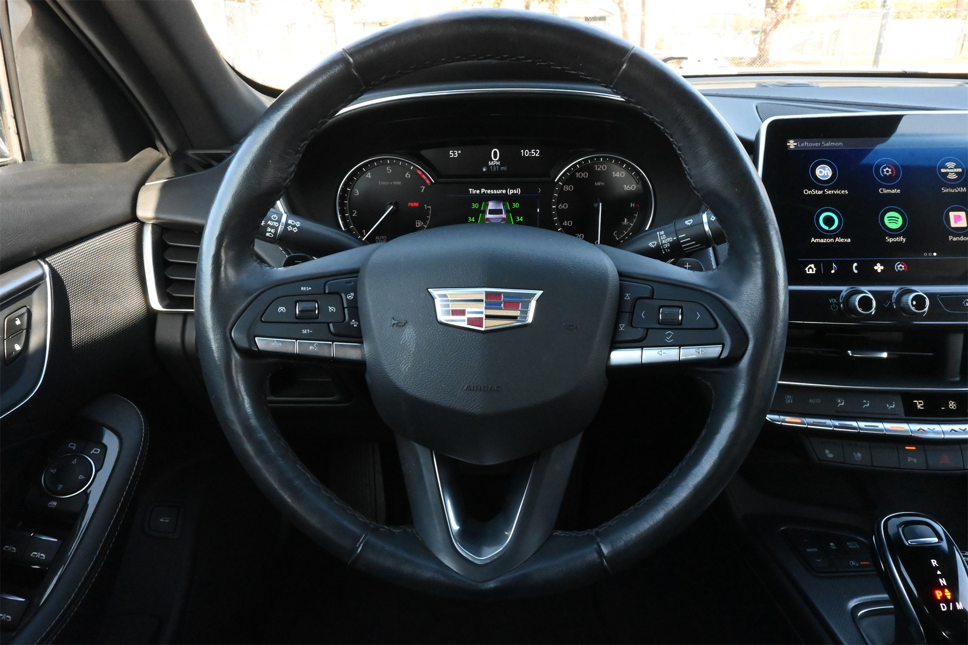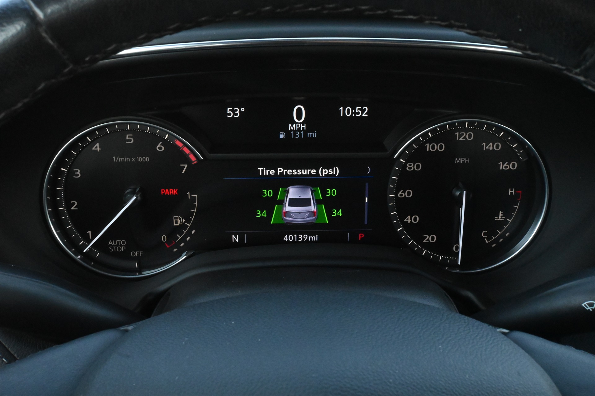 -Wheel Disc Brakes, Automatic Emergency Braking, Body-Color Heated Pwr-Adjustable Outside Mirrors, Dual Diagonal Color Driver Information Center, HD Rear Vision Camera, Inside Rear-View Auto-Dimming Mirror, Leather Wrapped Steering Wheel, LED Reflective Windshield Alert, Manual Tilt & Telescoping Steering Column, Rear Park Assist, and Steering Wheel Mounted Paddle Shift Controls), 4-Wheel Disc Brakes, 9 Speakers, ABS brakes, Air Conditioning, Alloy wheels, AM/FM radio: SiriusXM with 360L, Apple CarPlay/Android Auto, Auto-dimming door mirrors, Auto-dimming Rear-View mirror, Automatic Stop/Start w/Disable, Automatic temperature control, Brake assist, Bumpers: body-color, Compass, Delay-off headlights, Driver 4-Way Power Lumbar Seat Adjuster, Driver door bin, Driver vanity mirror, Dual front impact airbags, Dual front side impact airbags, Electronic Stability Control, Emergency communication system: OnStar and Cadillac connected services capable, Exterior Parking Camera Rear, Four wheel independent suspension, Front anti-roll bar, Front Bucket Seats, Front Center Armrest, Front dual zone A/C, Front License Plate Bracket, Front Passenger 4-Way Power Lumbar Seat Adjuster, Front reading lights, Fully automatic headlights, Garage door transmitter, HD Radio, Heated door mirrors, Illuminated entry, Knee airbag, Leather Seating Surfaces, Leather steering wheel, Low tire pressure warning, Memory seat, Occupant sensing airbag, Outside temperature display, Overhead airbag, Overhead console, Panic alarm, Passenger door bin, Passenger vanity mirror, Power door mirrors, Power driver seat, Power passenger seat, Power steering, Power windows, Premium 9-Speaker Audio System Feature, Radio data system, Radio: Cadillac User Experience, Rain sensing wipers, Rear anti-roll bar, Rear reading lights, Rear seat center armrest, Rear window defroster, Remote keyless entry, SiriusXM w/360L, Speed control, Speed-sensing steering, Split folding rear seat, Steering wheel mounted audio controls, Tachometer, Telescoping steering wheel, Tilt steering wheel, Traction control, Trip computer, Turn signal indicator mirrors, UltraView Dual Pane Sunroof, Variably intermittent wipers, Voltmeter, Wheels: 18" Alloy w/Manoogian Silver, and Wheels: 19" Alloy w/Diamond Cut/Midnight Silver. Black Raven RWD 10-Speed Automatic 3.0L V6 Local Trade, Bluetooth, Apple Carplay / Android Auto, Heated Seats, Cooled Seats.