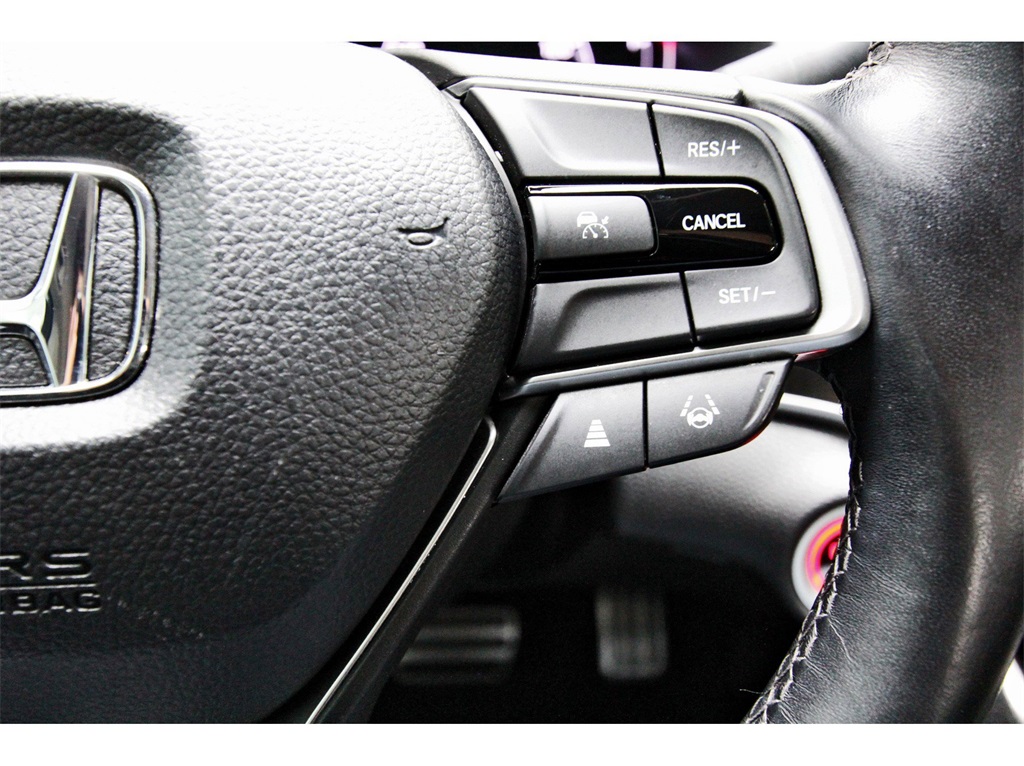 off headlights, Driver door bin, Driver vanity mirror, Dual front impact airbags, Dual front side impact airbags, Electronic Stability Control, Emergency communication system: HondaLink, Exterior Parking Camera Rear, Forward collision: Collision Mitigation Braking System (CMBS) + FCW mitigation, Four wheel independent suspension, Front anti-roll bar, Front Bucket Seats, Front Center Armrest, Front dual zone A/C, Front fog lights, Front reading lights, Fully automatic headlights, Heated door mirrors, Heated Front Bucket Seats, Heated front seats, Illuminated entry, Knee airbag, Lane Departure Warning System, Leather Shift Knob, Leather steering wheel, Leather-Trimmed Seats, Low tire pressure warning, Occupant sensing airbag, Outside temperature display, Overhead airbag, Overhead console, Panic alarm, Passenger door bin, Passenger vanity mirror, Power door mirrors, Power driver seat, Power passenger seat, Power steering, Power windows, Radio data system, Radio: 180-Watt AM/FM Audio System, Rear anti-roll bar, Rear seat center armrest, Rear window defroster, Remote keyless entry, Security system, Speed control, Speed-sensing steering, Speed-Sensitive Wipers, Split folding rear seat, Spoiler, Steering wheel mounted audio controls, Tachometer, Telescoping steering wheel, Tilt steering wheel, Traction control, Trip computer, Variably intermittent wipers, and Wheels: 19" Machine-Finished Alloy w/Black Inserts!!