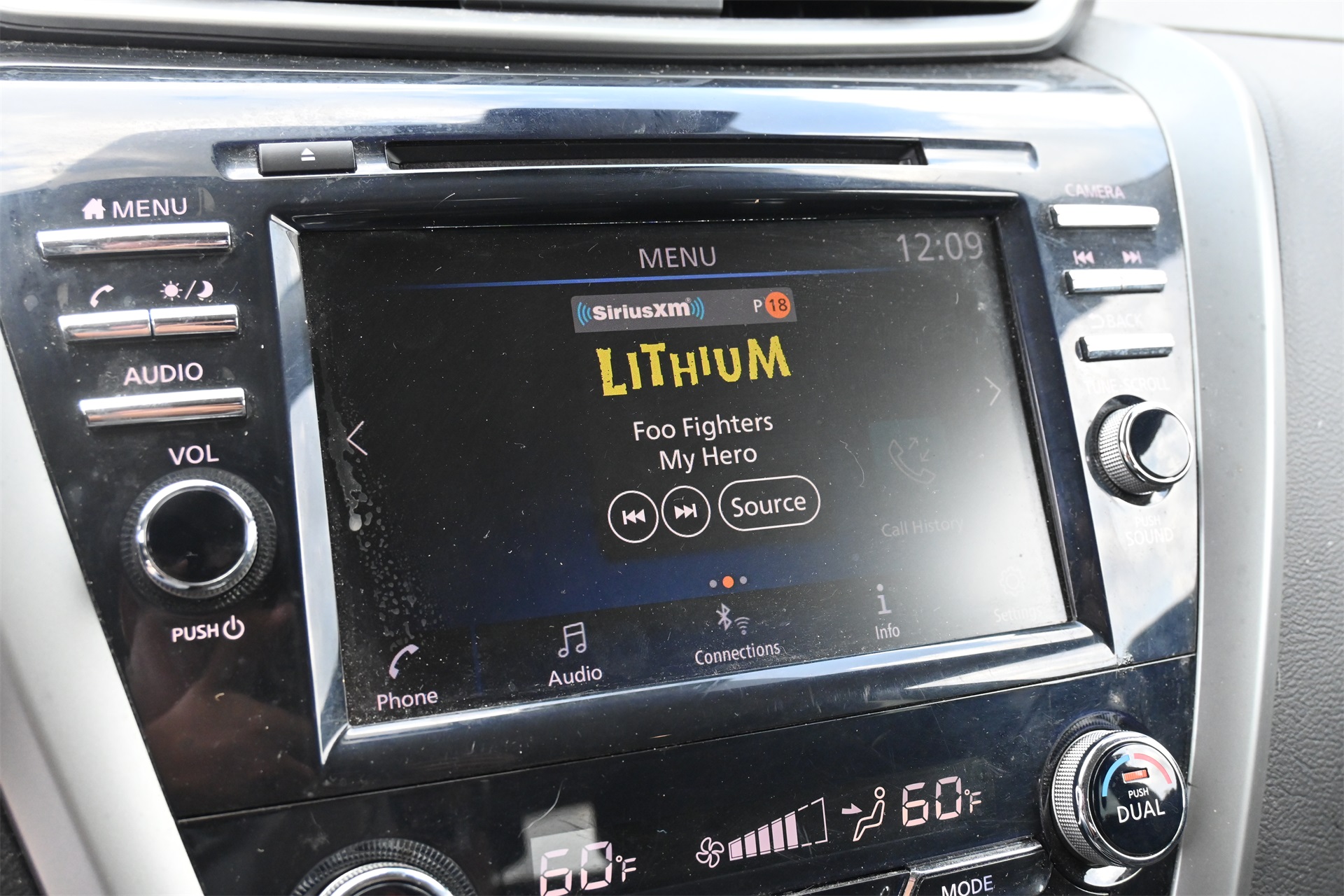 Driver door bin, Driver vanity mirror, Dual front impact airbags, Dual front side impact airbags, Electronic Stability Control, Four wheel independent suspension, Front anti-roll bar, Front Bucket Seats, Front Center Armrest, Front dual zone A/C, Front fog lights, Front reading lights, Fully automatic headlights, Heated door mirrors, Illuminated entry, Knee airbag, Low tire pressure warning, NissanConnect featuring Apple CarPlay and Android Auto, Occupant sensing airbag, Outside temperature display, Overhead airbag, Overhead console, Panic alarm, Passenger door bin, Passenger vanity mirror, Power door mirrors, Power driver seat, Power passenger seat, Power steering, Power windows, Radio data system, Rear anti-roll bar, Rear Bumper Protector, Rear reading lights, Rear seat center armrest, Rear side impact airbag, Rear window defroster, Rear window wiper, Remote keyless entry, Roof rack: rails only, Security system, Speed control, Speed-sensing steering, Speed-Sensitive Wipers, Splash Guards, Split folding rear seat, Spoiler, Steering wheel mounted audio controls, Tachometer, Telescoping steering wheel, Tilt steering wheel, Traction control, Trip computer, Turn signal indicator mirrors, Variably intermittent wipers, and Wheels: 18" Machined Aluminum-Alloy. Gun Metallic FWD CVT with Xtronic 3.5L V6 DOHC 24V CARFAX 1-Owner, Clean CARFAX!, Non-Smoker, Low Miles, Bluetooth, Apple Carplay / Android Auto, Heated Seats, CVT with Xtronic.