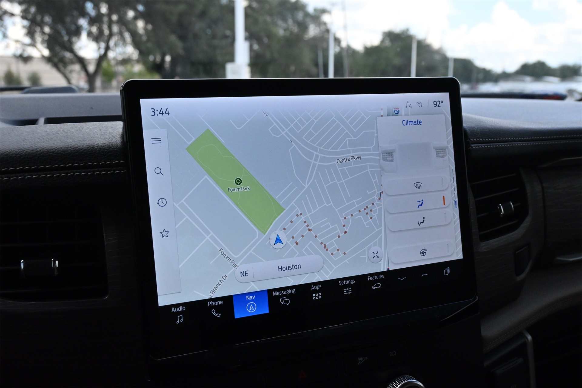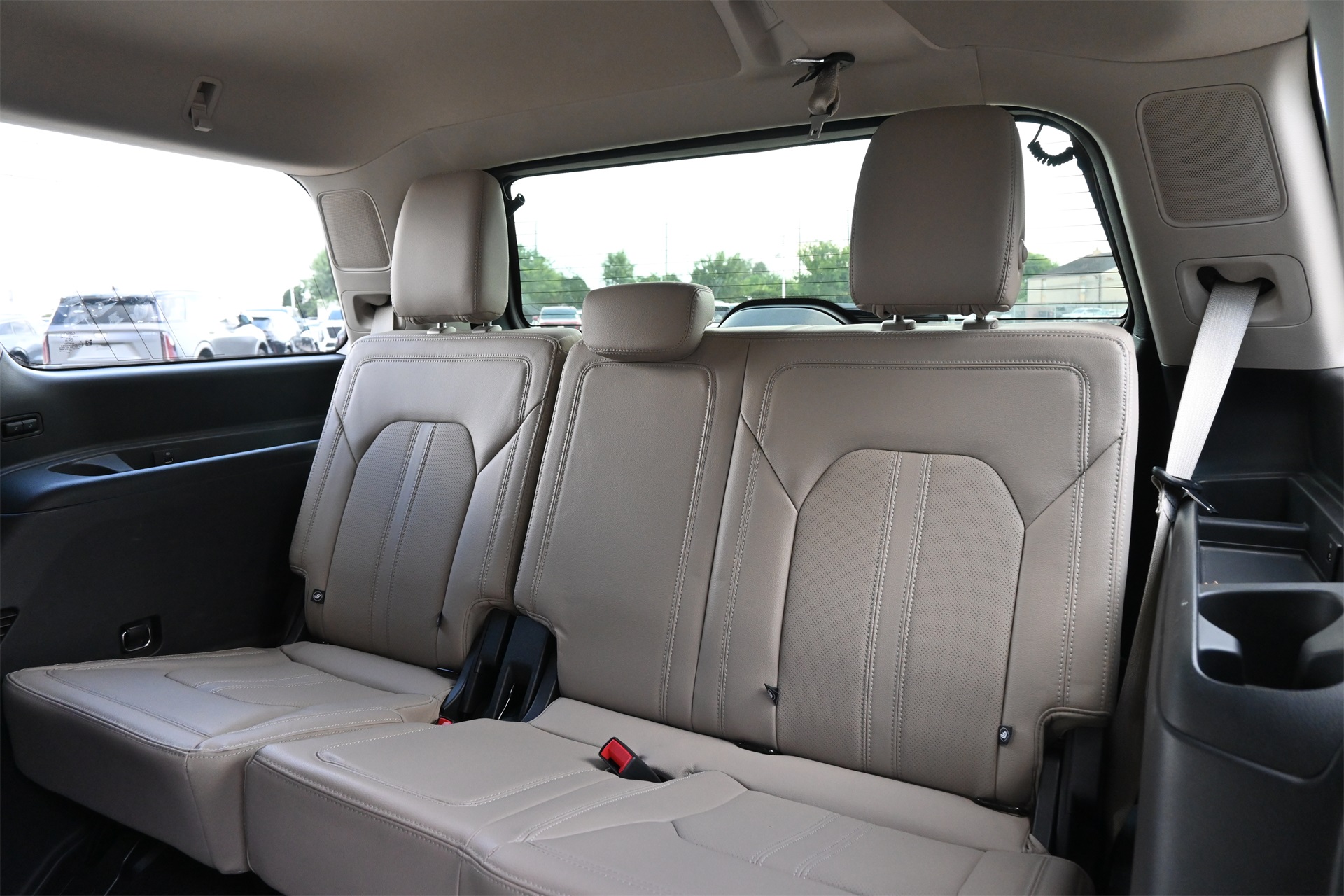 r, Automatic temperature control, Brake assist, Bumpers: body-color, Compass, Delay-off headlights, Driver door bin, Driver vanity mirror, Dual front impact airbags, Dual front side impact airbags, Electronic Stability Control, Emergency communication system: SYNC 4 911 Assist, Exterior Parking Camera Rear, Four wheel independent suspension, Front anti-roll bar, Front Bucket Seats, Front Center Armrest, Front dual zone A/C, Front fog lights, Front reading lights, Fully automatic headlights, Garage door transmitter, Hands-Free Foot-Activated Feature Removal, Heated & Ventilated Leather Front Captain's Chairs, Heated door mirrors, Heated front seats, Heated rear seats, Heated steering wheel, Illuminated entry, Leather steering wheel, Low tire pressure warning, Memory seat, Navigation system: Connected Navigation, Occupant sensing airbag, Outside temperature display, Overhead airbag, Overhead console, Panic alarm, Passenger door bin, Passenger vanity mirror, Pedal memory, Power door mirrors, Power driver seat, Power Liftgate, Power moonroof, Power passenger seat, Power steering, Power windows, Radio data system, Radio: B&O Sound System by Bang & Olufsen, Rain sensing wipers, Rear air conditioning, Rear anti-roll bar, Rear reading lights, Rear window defroster, Rear window wiper, Reclining 3rd row seat, Remote keyless entry, Second Row Power Windows Removal, Security system, SiriusXM w/360L, Speed control, Speed-sensing steering, Speed-Sensitive Wipers, Split folding rear seat, Spoiler, Steering wheel memory, Steering wheel mounted audio controls, SYNC 4 w/Enhanced Voice Recognition, Tachometer, Telescoping steering wheel, Tilt steering wheel, Traction control, Trip computer, Turn signal indicator mirrors, Variably intermittent wipers, Ventilated front seats, Voltmeter, and Wheels: 20" Bright Machined Aluminum. RWD 10-Speed Automatic EcoBoost 3.5L V6 GTDi DOHC 24V Twin Turbocharged CARFAX 1-Owner, Clean CARFAX!, Non-Smoker, Local Trade, Bluetooth, Apple Carplay / Android Auto, Heated Seats, Cooled Seats.