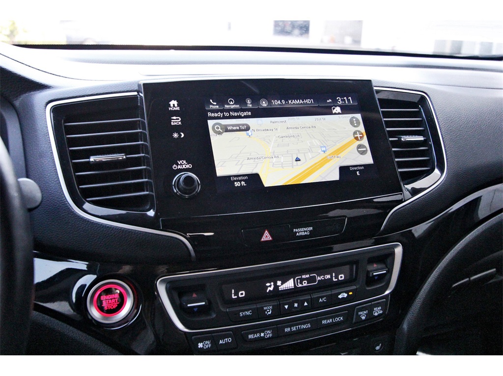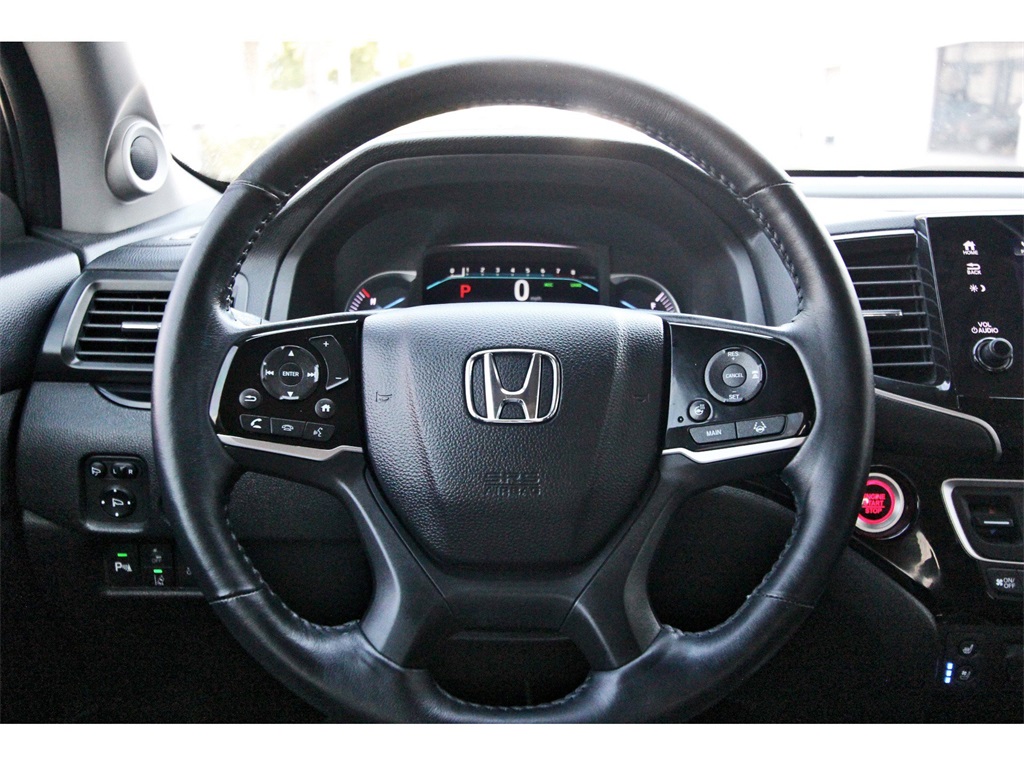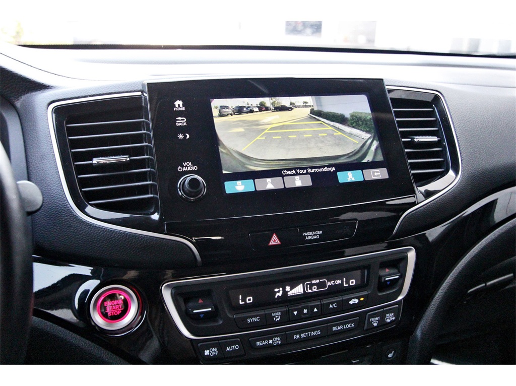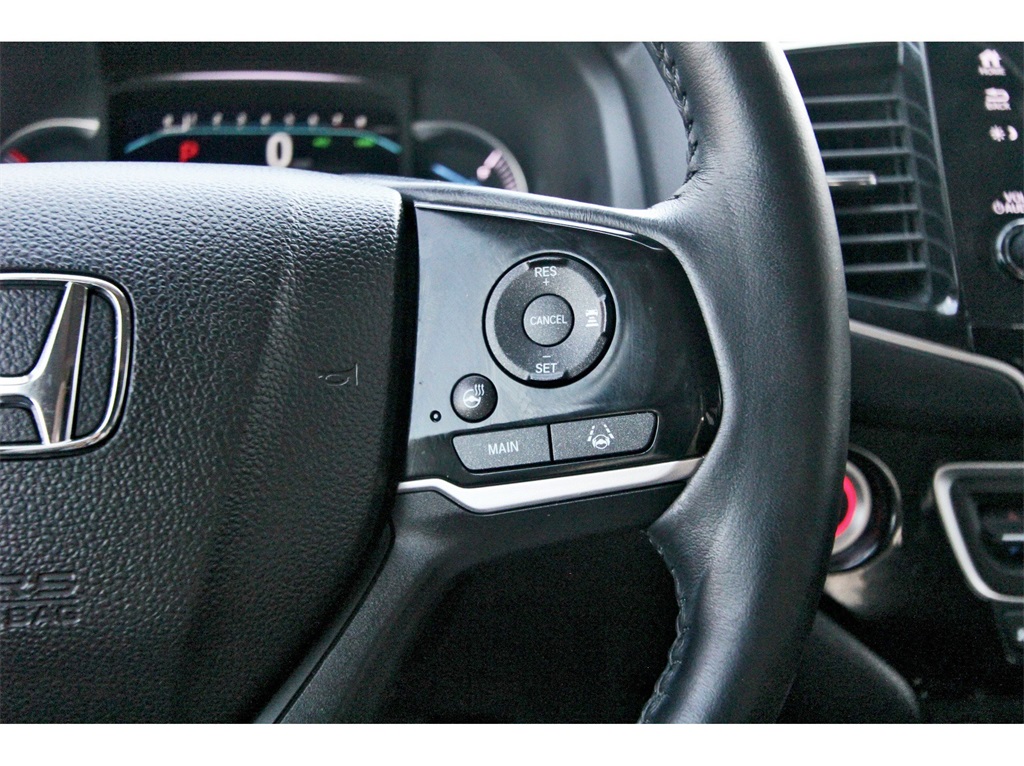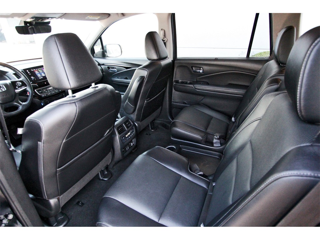 Spot Information (BSI) System warning, Brake assist, Bumpers: body-color, Compass, Delay-off headlights, Driver door bin, Driver vanity mirror, Dual front impact airbags, Dual front side impact airbags, Electronic Stability Control, Emergency communication system: HondaLink, Exterior Parking Camera Rear, Forward collision: Collision Mitigation Braking System (CMBS) + FCW mitigation, Four wheel independent suspension, Front anti-roll bar, Front Bucket Seats, Front Center Armrest, Front dual zone A/C, Front fog lights, Front reading lights, Fully automatic headlights, Garage door transmitter: HomeLink, Headphones, Heated & Ventilated Front Bucket Seats, Heated door mirrors, Heated front seats, Heated rear seats, Heated steering wheel, Illuminated entry, Lane departure: Lane Keeping Assist System (LKAS) active, Low tire pressure warning, Memory seat, Navigation system: Honda Satellite-Linked Navigation System, Occupant sensing airbag, Outside temperature display, Overhead airbag, Overhead console, Panic alarm, Passenger door bin, Passenger vanity mirror, Perforated Leather Seat Trim, Power door mirrors, Power driver seat, Power Liftgate, Power moonroof, Power passenger seat, Power steering, Power windows, Radio data system, Radio: 590-Watt Premium Audio System, Rain sensing wipers, Rear air conditioning, Rear anti-roll bar, Rear audio controls, Rear reading lights, Rear window defroster, Rear window wiper, Reclining 3rd row seat, Remote keyless entry, Roof rack: rails only, Security system, Speed control, Speed-sensing steering, Speed-Sensitive Wipers, Split folding rear seat, Spoiler, Steering wheel mounted audio controls, Tachometer, Telescoping steering wheel, Tilt steering wheel, Traction control, Trip computer, Turn signal indicator mirrors, Variably intermittent wipers, Ventilated front seats, and Wheels: 20" Machine-Finished Alloy!!