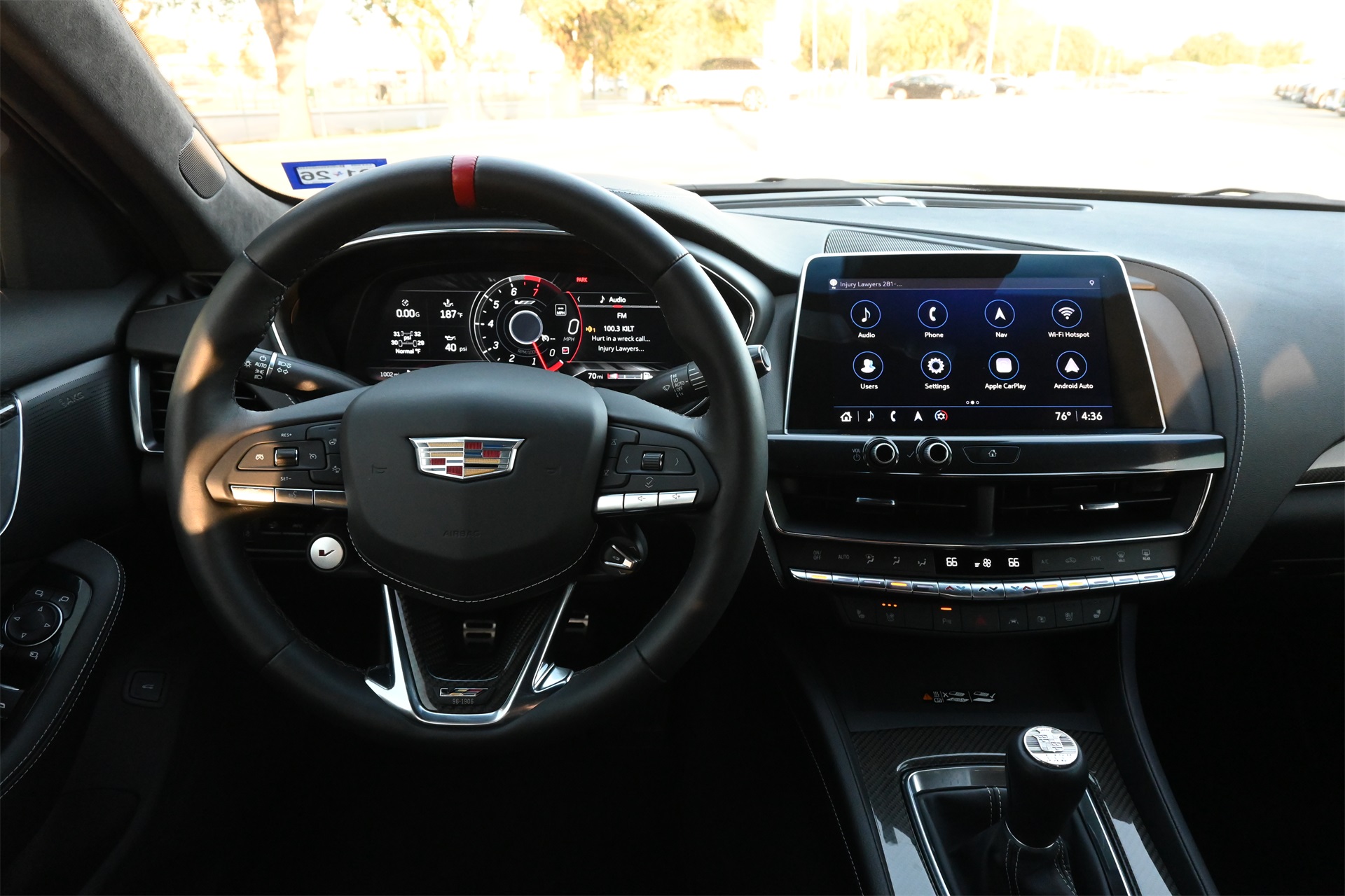 Cruise Control w/Set & Resume Speed, Front & Rear Park Assist, Inside Rear-View Auto-Dimming Mirror, Lane Keep Assist w/Lane Departure Warning, and Leather-Wrapped Thick Rim Steering Wheel), Radio: Cadillac User Experience w/Embedded Nav (3 USB Ports, AKG Premium 16-Speaker System, HD Radio, SiriusXM w/360L, and Teen Driver), Sueded Microfiber-Wrapped Interior Trim Package, Cadillac Certified Pre-Owned Certified, 16 Speakers, 4-Wheel Disc Brakes, ABS brakes, Adaptive suspension, Air Conditioning, Alloy wheels, AM/FM radio: SiriusXM with 360L, Apple CarPlay/Android Auto, Auto High-beam Headlights, Auto-dimming door mirrors, Auto-dimming Rear-View mirror, Automatic temperature control, Brake assist, Bumpers: body-color, Compass, Delay-off headlights, Driver 4-Way Power Lumbar Seat Adjuster, Driver door bin, Driver Power Lumbar Massage Seat, Driver vanity mirror, Dual front impact airbags, Dual front side impact airbags, Electronic Stability Control, Emergency communication system: OnStar and Cadillac connected services capable, Enclosed Shipping Carrier, Exterior Parking Camera Rear, Four wheel independent suspension, Front 2-Way Adjustable Head Restraints, Front anti-roll bar, Front Bucket Seats, Front Center Armrest, Front dual zone A/C, Front License Plate Bracket, Front Passenger 4-Way Power Lumbar Seat Adjuster, Front Passenger Power Lumbar Massage Seat, Front reading lights, Fully automatic headlights, Garage door transmitter, Heads-Up Display, Heated door mirrors, Heated Driver & Front Passenger Seats, Heated front seats, Heated steering wheel, High Performance Front Bucket Seats, Illuminated entry, Knee airbag, Leather Seating Surfaces w/Mini-Perforated Inserts, Leather steering wheel, Low tire pressure warning, Memory seat, Navigation System, Occupant sensing airbag, Outside temperature display, Overhead airbag, Overhead console, Panic alarm, Passenger door bin, Passenger vanity mirror, Performance Data & Video Recorder, Performance Front Bucket Seats, Power door mirrors, Power driver seat, Power passenger seat, Power steering, Power windows, Radio data system, Rain sensing wipers, Rear anti-roll bar, Rear reading lights, Rear seat center armrest, Rear window defroster, Red Front & Rear Calipers, Remote keyless entry, Security system, Speed control, Speed-sensing steering, Split folding rear seat, Spoiler, Steering wheel memory, Steering wheel mounted audio controls, Tachometer, Telescoping steering wheel, Tilt steering wheel, Tire Inflator Kit, Traction control, Trip computer, Turn signal indicator mirrors, UltraView Dual Pane Sunroof, Variably intermittent wipers, Ventilated Driver & Front Passenger Seats, Ventilated front seats, Voltmeter, Wheels: 19" Alum Alloy w/Polished/Dk Android Finish, and Wheels: 19" Alum Alloy w/Satin Graphite Dk Finish. Black Raven RWD 6-Speed Manual 6.2L V8 Supercharged CARFAX 1-Owner, Clean CARFAX!, Non-Smoker, Local Trade, Low Miles, Bluetooth, Apple Carplay / Android Auto, Heated Seats, Cooled Seats, Blackout Package.