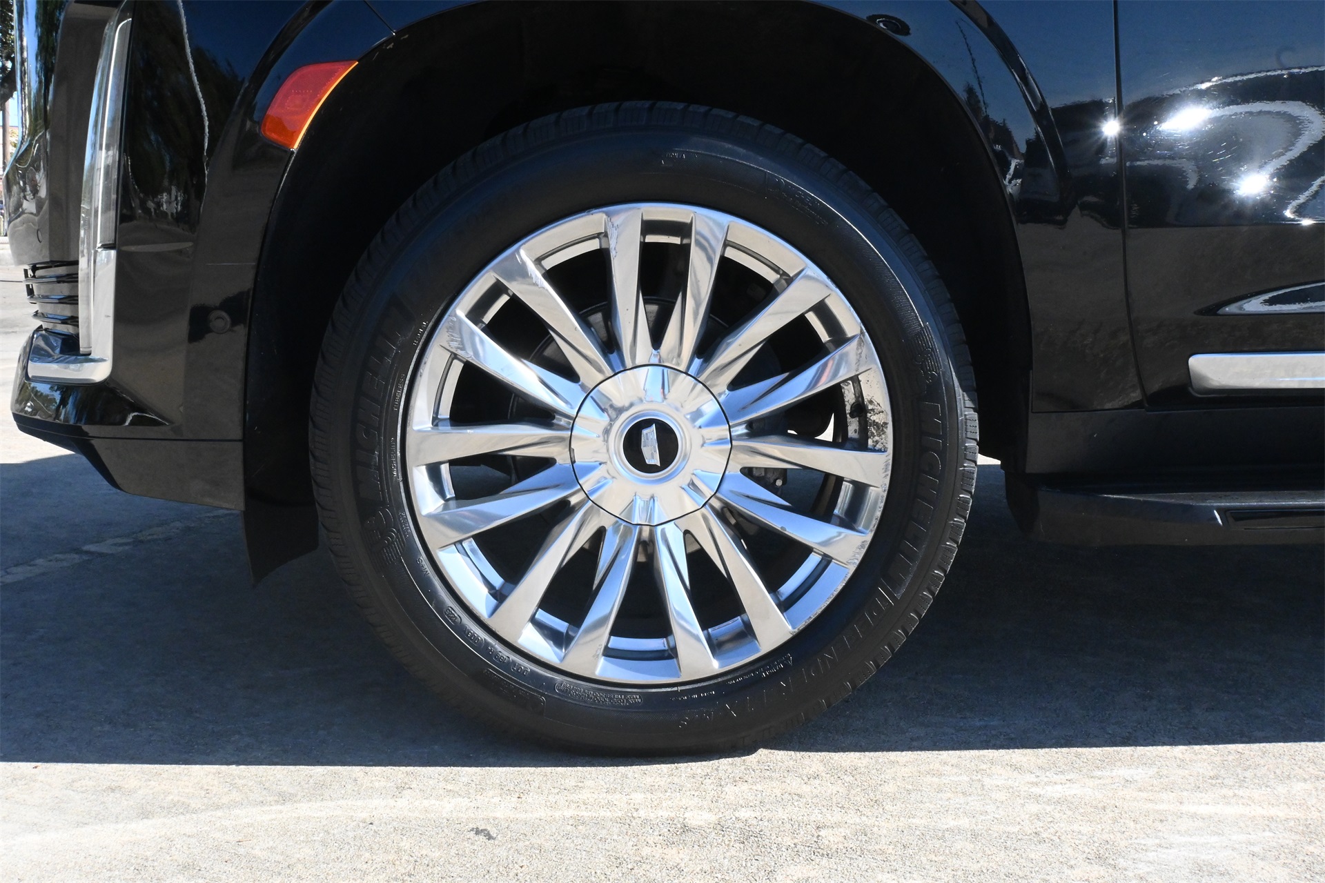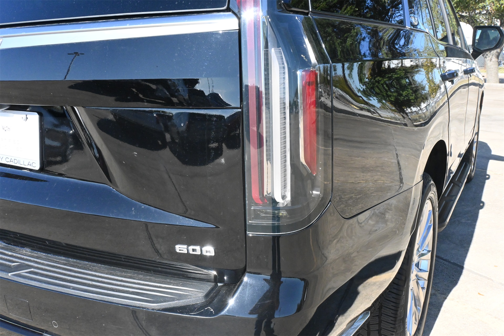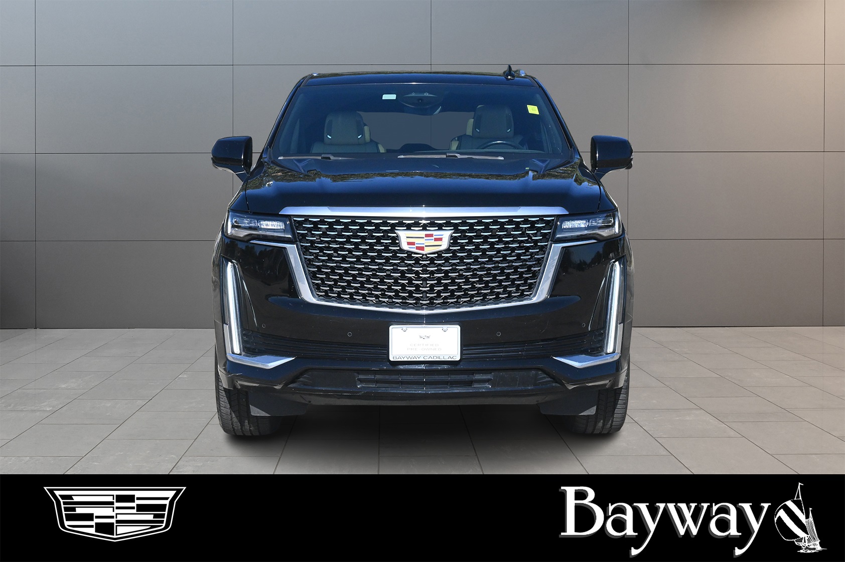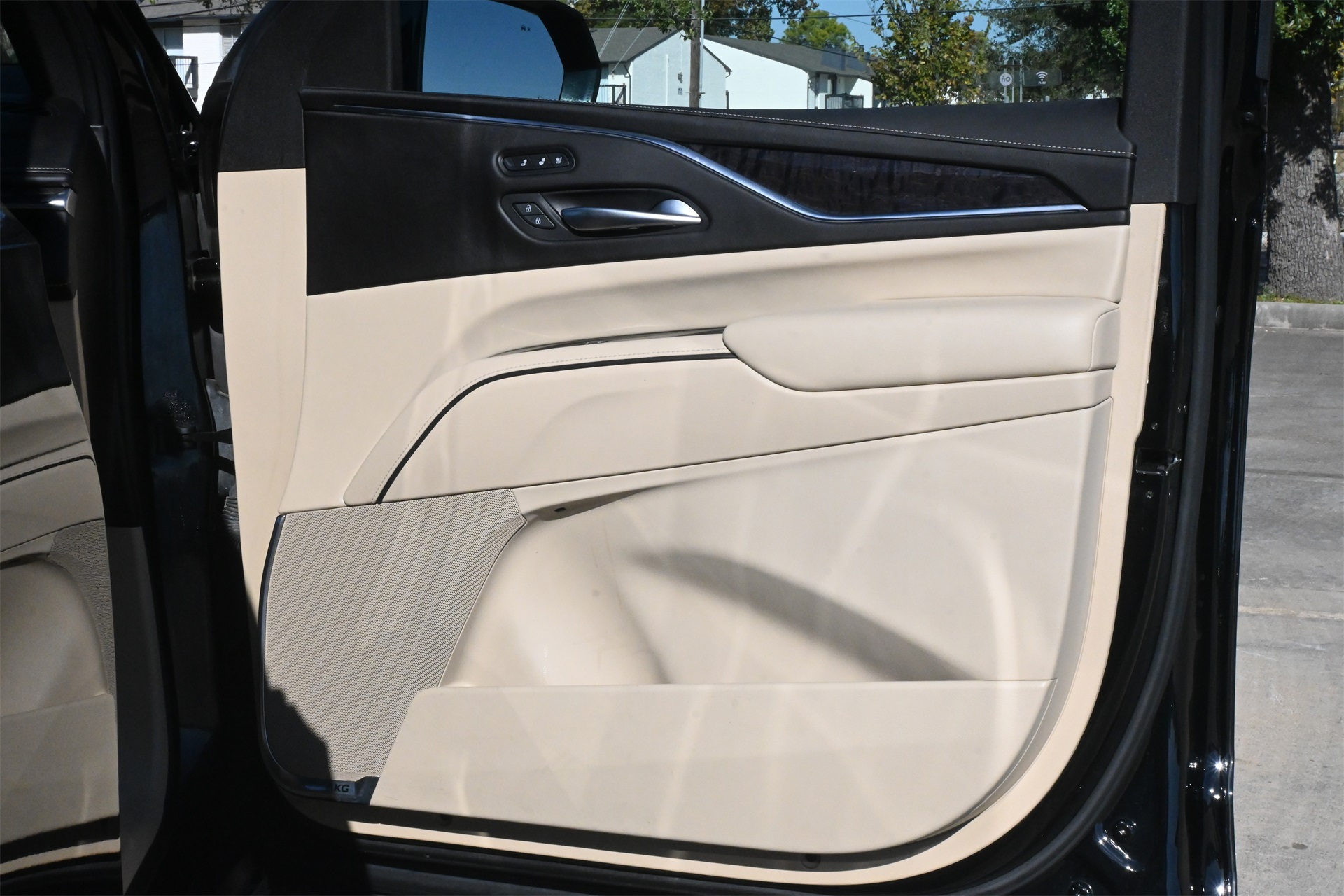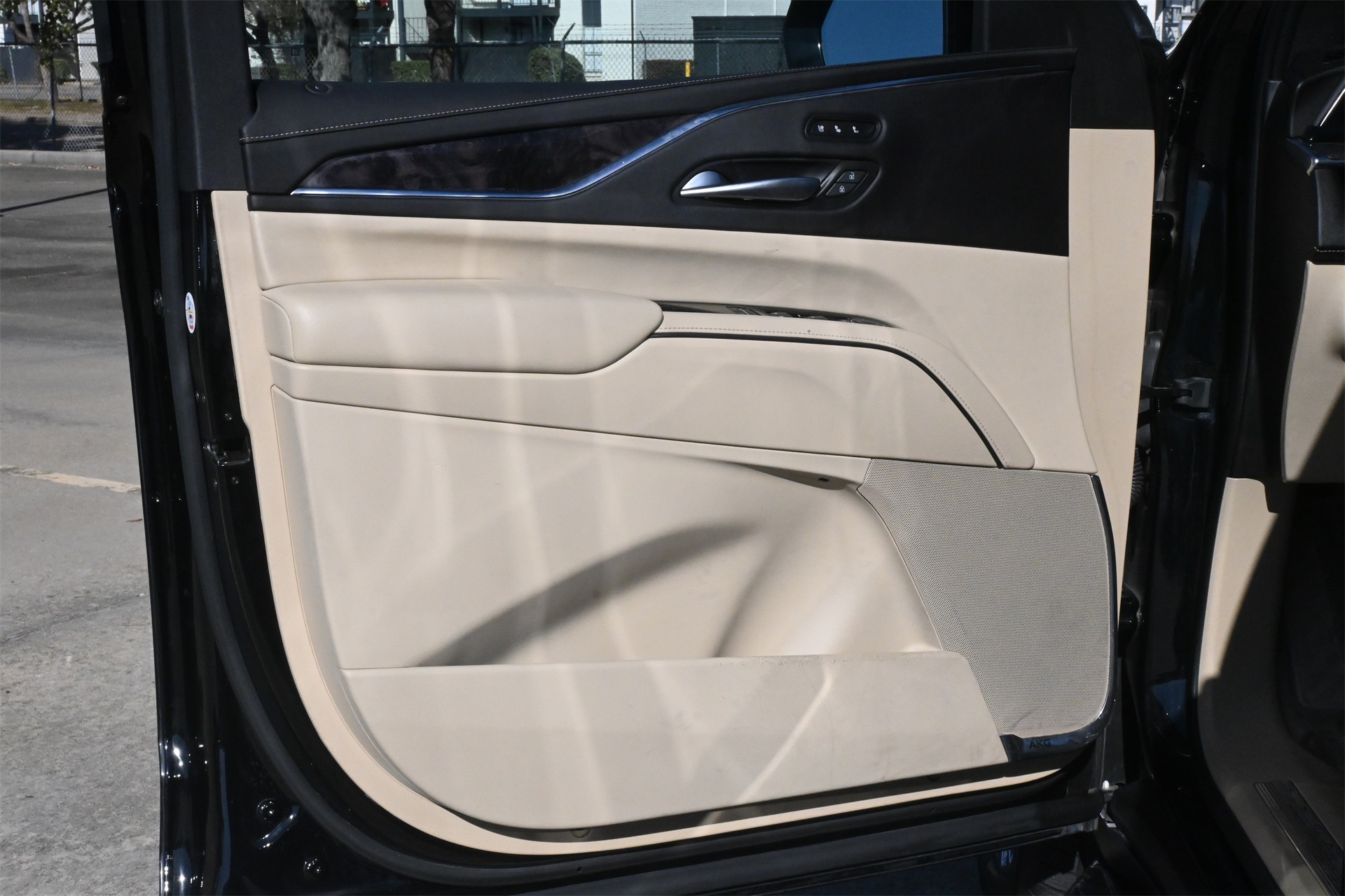 oof, Rear Camera Mirror, Rear Camera Mirror Washer, Rear Cross Traffic Alert, Reconfigurable Full-Color Head-Up Display, Reverse Automatic Braking, Running Board Assist Steps, Theft-Deterrent Alarm System, Vehicle Inclination Sensor, and Vehicle Interior Movement Sensor), Parchment With Jet Black Accents Leather, 16.9" Diagonal OLED Infotainment Screen, 19 Speakers, 2-Presets Memory For Driver Seat Adjuster, 2-Way Driver Power Lumbar Seat Adjuster, 2-Way Front Passenger Power Lumbar Seat Adjuster, 3 Years of OnStar & Connected Services Plan, 3.23 Axle Ratio, 3rd row seats: split-bench, 4-Way Power Driver Lumbar Seat Adjuster, 4-Way Power Front Passenger Lumbar Seat Adjuster, 4-Wheel Disc Brakes, 8-Way Power Driver Seat Adjuster, 8-Way Power Front Passenger Seat Adjuster, ABS brakes, Air Conditioning, Alloy wheels, AM/FM radio: SiriusXM with 360L, Apple CarPlay/Android Auto, Audio memory, Auto High-beam Headlights, Auto tilt-away steering wheel, Auto-dimming door mirrors, Auto-dimming Rear-View mirror, Automatic temperature control, Brake assist, Bumpers: body-color, Compass, Delay-off headlights, Driver door bin, Driver vanity mirror, Dual front impact airbags, Dual front side impact airbags, Electronic Stability Control, Emergency communication system: OnStar and Cadillac connected services capable, Exterior Parking Camera Rear, Four wheel independent suspension, Front anti-roll bar, Front Bucket Seats, Front Center Armrest w/Storage, Front dual zone A/C, Front License Plate Bracket, Front reading lights, Fully automatic headlights, Garage door transmitter, HD Radio, Heads-Up Display, Heated door mirrors, Heated Driver & Front Passenger Seats, Heated front seats, Heated rear seats, Heated steering wheel, Illuminated entry, Leather Seating Surfaces w/Mini-Chevron Perf Inserts, Low tire pressure warning, Memory seat, Navigation System, Not Equipped w/2nd Row Express-Up Window Control, Not Equipped w/4-Way Driver & Fr Pass Pwr Lumbar, Occupant sensing airbag, Outside temperature display, Overhead airbag, Overhead console, Panic alarm, Passenger door bin, Passenger vanity mirror, Power door mirrors, Power driver seat, Power Liftgate, Power moonroof, Power passenger seat, Power steering, Power windows, Premium Smooth Ride Suspension, Radio data system, Radio: AM/FM w/Navigation, Rain sensing wipers, Rear air conditioning, Rear anti-roll bar, Rear reading lights, Rear window defroster, Rear window wiper, Remote keyless entry, Security system, SiriusXM w/360L, Speed control, Split folding rear seat, Spoiler, Steering wheel memory, Steering wheel mounted audio controls, Super Cruise, Tachometer, Teen Driver, Telescoping steering wheel, Tilt steering wheel, Traction control, Trip computer, Turn signal indicator mirrors, Variably intermittent wipers, Ventilated front seats, Voltmeter, Wheel Locks, Wheels: 22" 14-Spoke Alloy w/Polished Finish, and Wireless Apple CarPlay/Wireless Android Auto. Black Raven RWD 10-Speed Automatic 6.2L V8 Local Trade, Bluetooth, Apple Carplay / Android Auto, Heated Seats, Cooled Seats, Parchment With Jet Black Accents Leather.
