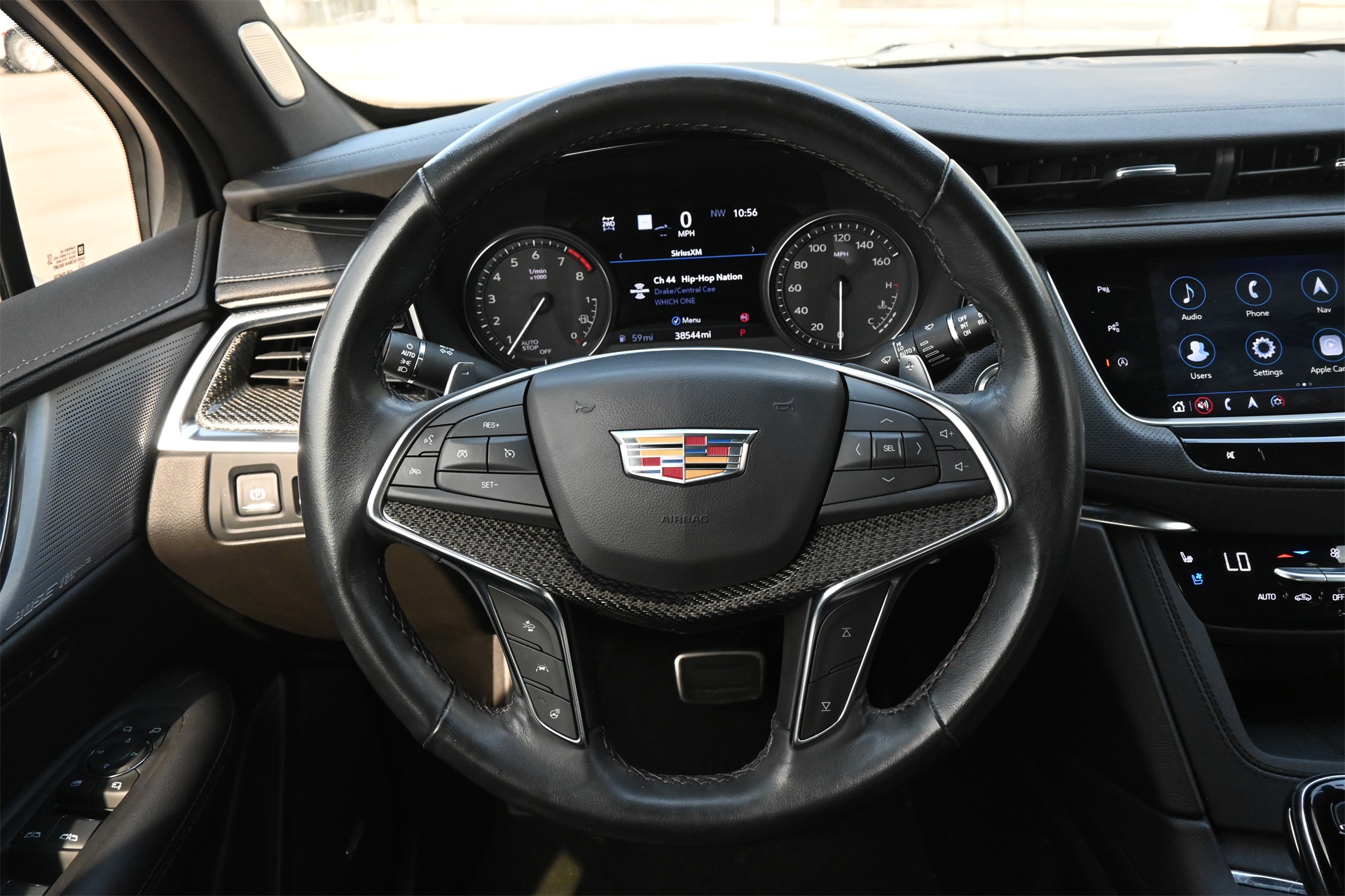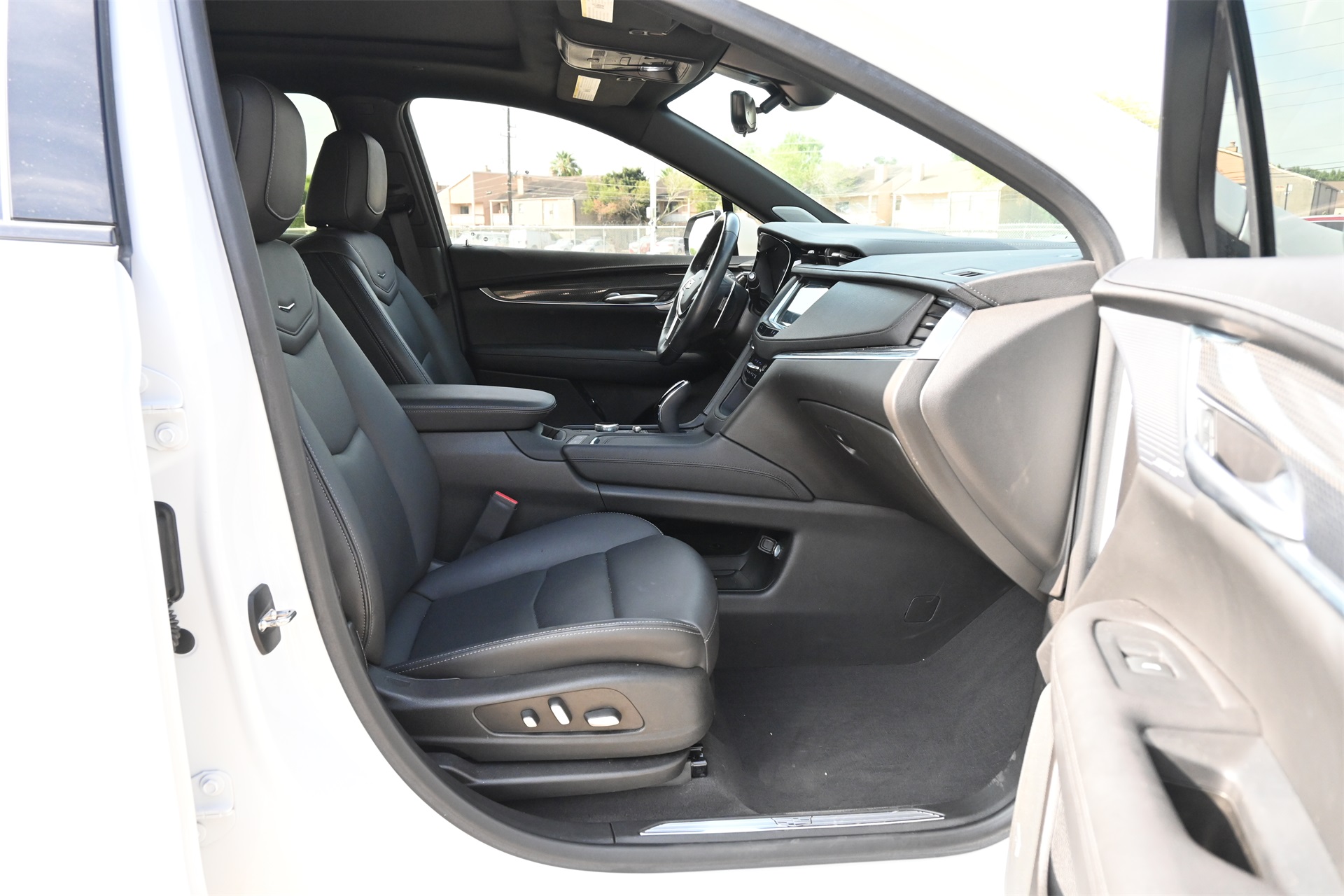 oid Auto), Sport Package 1SF (Automatic Dual-Zone Climate Control, Automatic Emergency Braking, Dual Driver Info Center Display Gauge Cluster, Front & Rear Park Assist, HD Rear Vision Camera, Inside Rear-View Auto-Dimming Mirror, and Teen Driver), Technology Package (8" Color Driver Info Center Display Gauge Cluster, Automatic Parking Assist w/Braking, HD Surround Vision, Head-Up Display, Rear Camera Mirror, Rear Camera Mirror Washer, and Rear Pedestrian Alert), Cadillac Certified Pre-Owned Certified, 14 Speakers, 2-Way Power Driver Lumbar Control Seat Adjuster, 2-Way Power Passenger Lumbar Control Seat Adjuster, 3.49 Axle Ratio, 4-Wheel Disc Brakes, ABS brakes, Adaptive suspension, Air Conditioning, Air Ionizer, Alloy wheels, AM/FM radio: SiriusXM, Audio memory, Auto High-beam Headlights, Auto-dimming door mirrors, Auto-dimming Rear-View mirror, Automatic Stop/Start w/Disable, Automatic temperature control, Bodyside moldings, Brake assist, Bumpers: body-color, Compass, Delay-off headlights, Driver door bin, Driver vanity mirror, Dual front impact airbags, Dual front side impact airbags, Electronic Stability Control, Emergency communication system: OnStar and Cadillac connected services capable, Four wheel independent suspension, Front anti-roll bar, Front Bucket Seats, Front Center Armrest, Front dual zone A/C, Front License Plate Bracket, Front reading lights, Fully automatic headlights, Garage door transmitter, Heated door mirrors, Heated Driver & Front Passenger Seats, Heated front seats, Heated Rear Outboard Seating Positions, Heated steering wheel, Illuminated entry, Knee airbag, Leather Seating Surfaces w/Mini Perforated Inserts, Leather steering wheel, Low tire pressure warning, Memory seat, Navigation System, Occupant sensing airbag, Outside temperature display, Overhead airbag, Overhead console, Panic alarm, Passenger door bin, Passenger vanity mirror, Performance Suspension, Power door mirrors, Power driver seat, Power Liftgate, Power moonroof: UltraView, Power passenger seat, Power steering, Power windows, Puddle Lamps w/Cadillac Crest (LPO), Radio data system, Rain sensing wipers, Rear anti-roll bar, Rear reading lights, Rear seat center armrest, Rear window defroster, Rear window wiper, Remote keyless entry, Security system, Speed control, Speed-sensing steering, Split folding rear seat, Spoiler, Stainless Assist Steps (LPO), Steering wheel memory, Steering wheel mounted audio controls, Tachometer, Telescoping steering wheel, Tilt steering wheel, Traction control, Tri-Zone Automatic Climate Control, Trip computer, Turn signal indicator mirrors, Variably intermittent wipers, Ventilated Driver & Front Passenger Seats, Voltmeter, and Wheels: 20" 12-Spoke Alloy w/Pearl Nickel Finish. Crystal White Tricoat AWD 9-Speed Automatic 3.6L V6 DI VVT CARFAX 1-Owner, Clean CARFAX!, Bluetooth, Apple Carplay / Android Auto, Heated Seats, Cooled Seats.