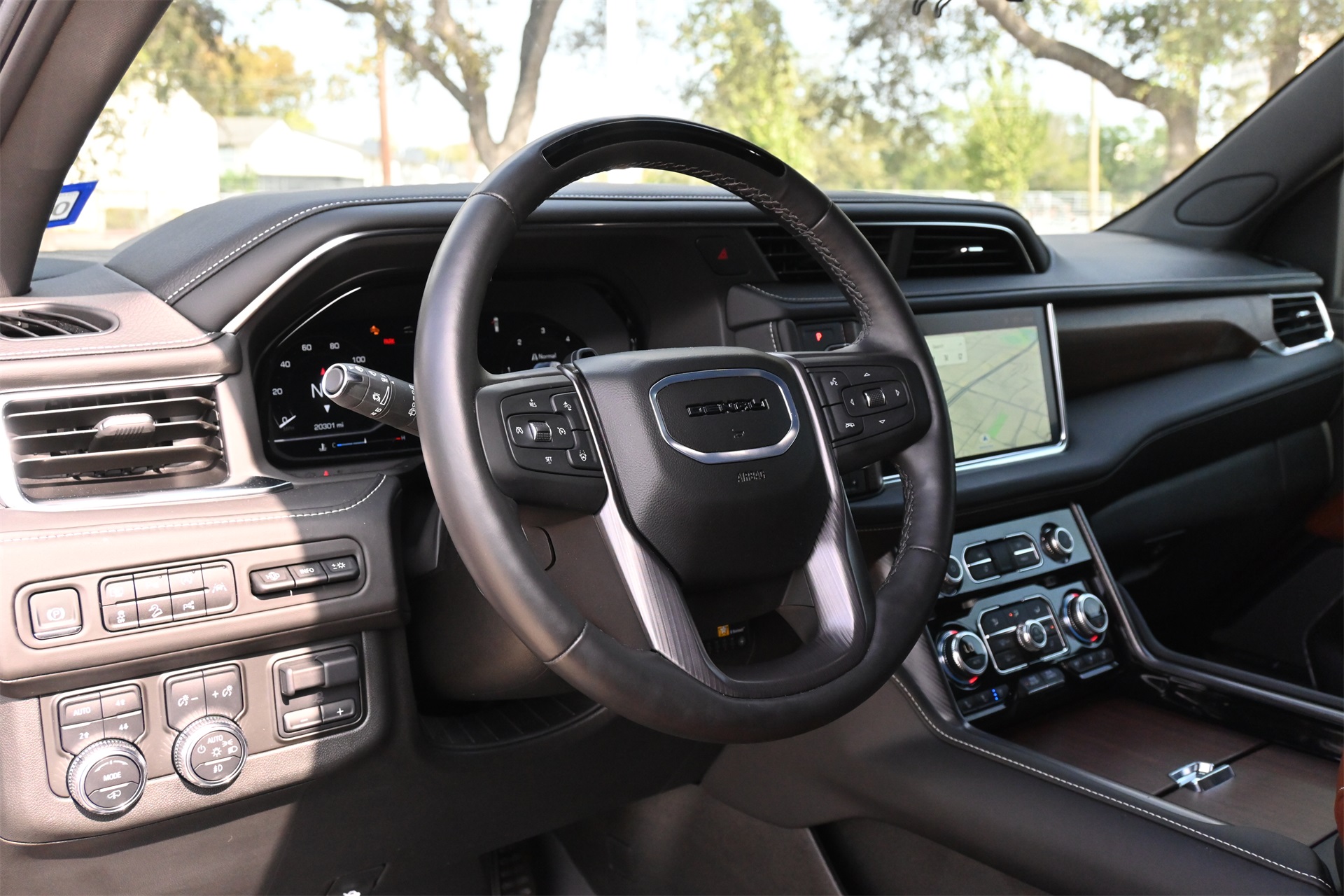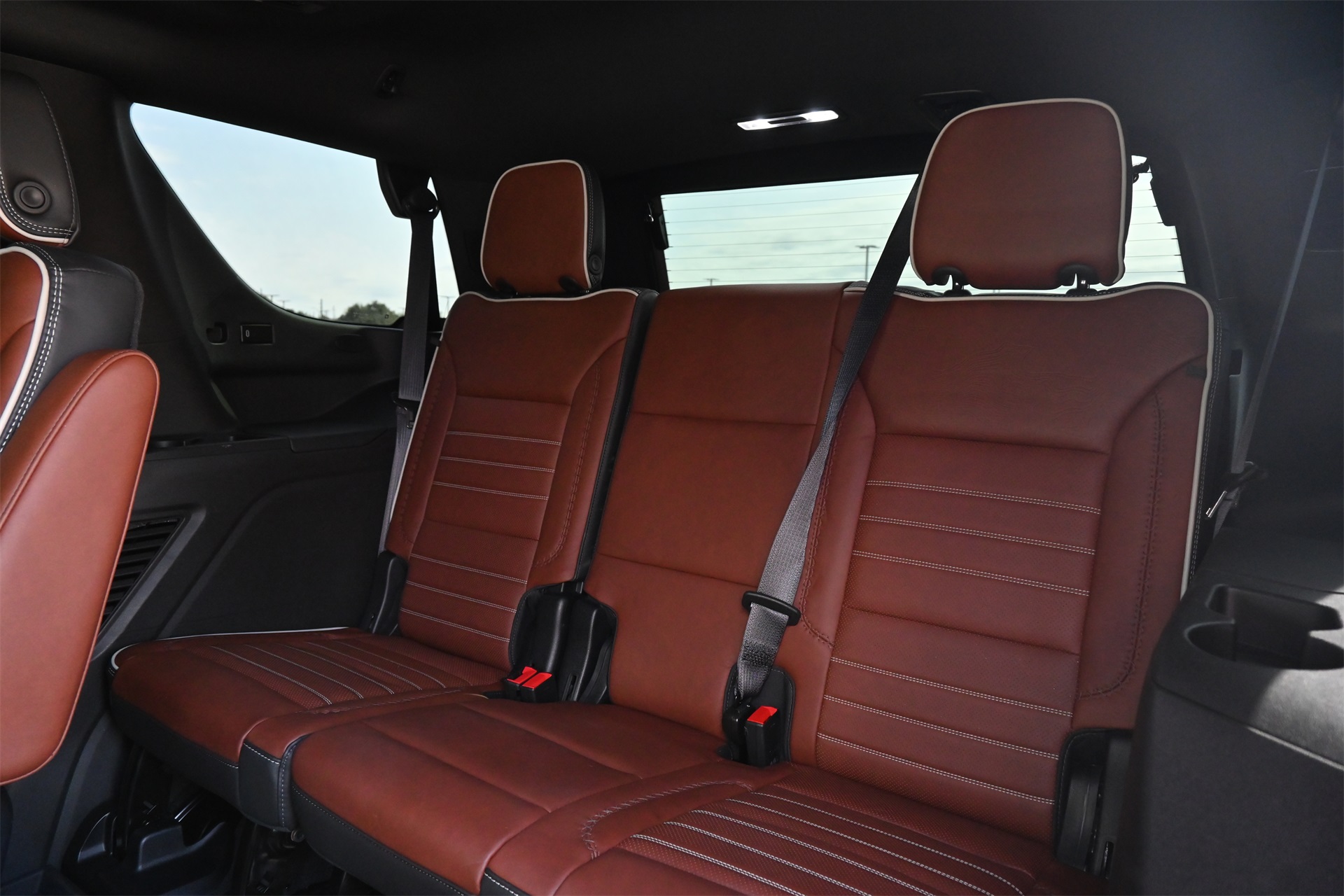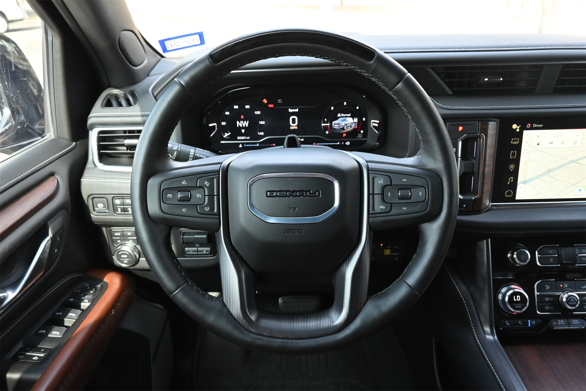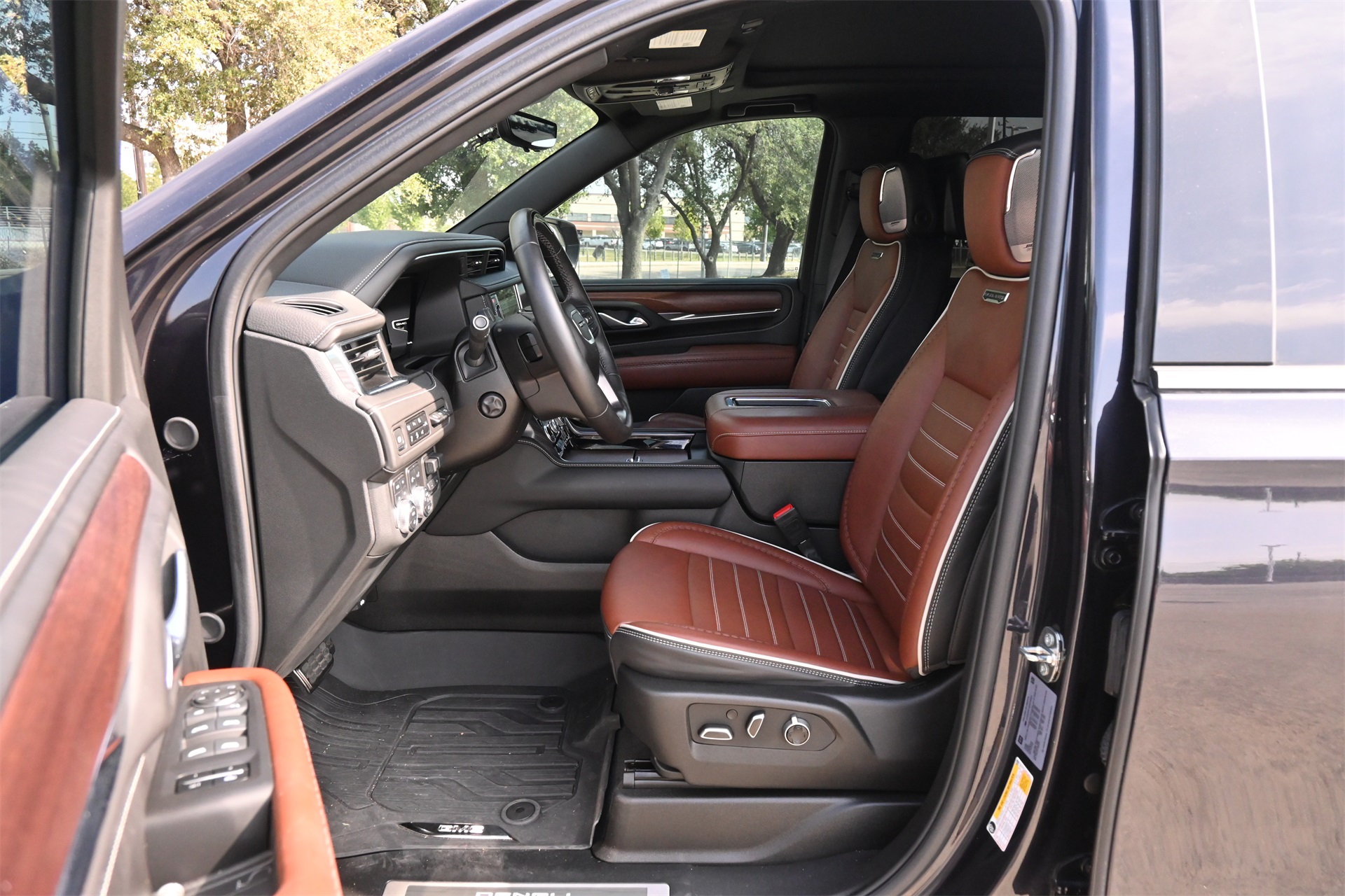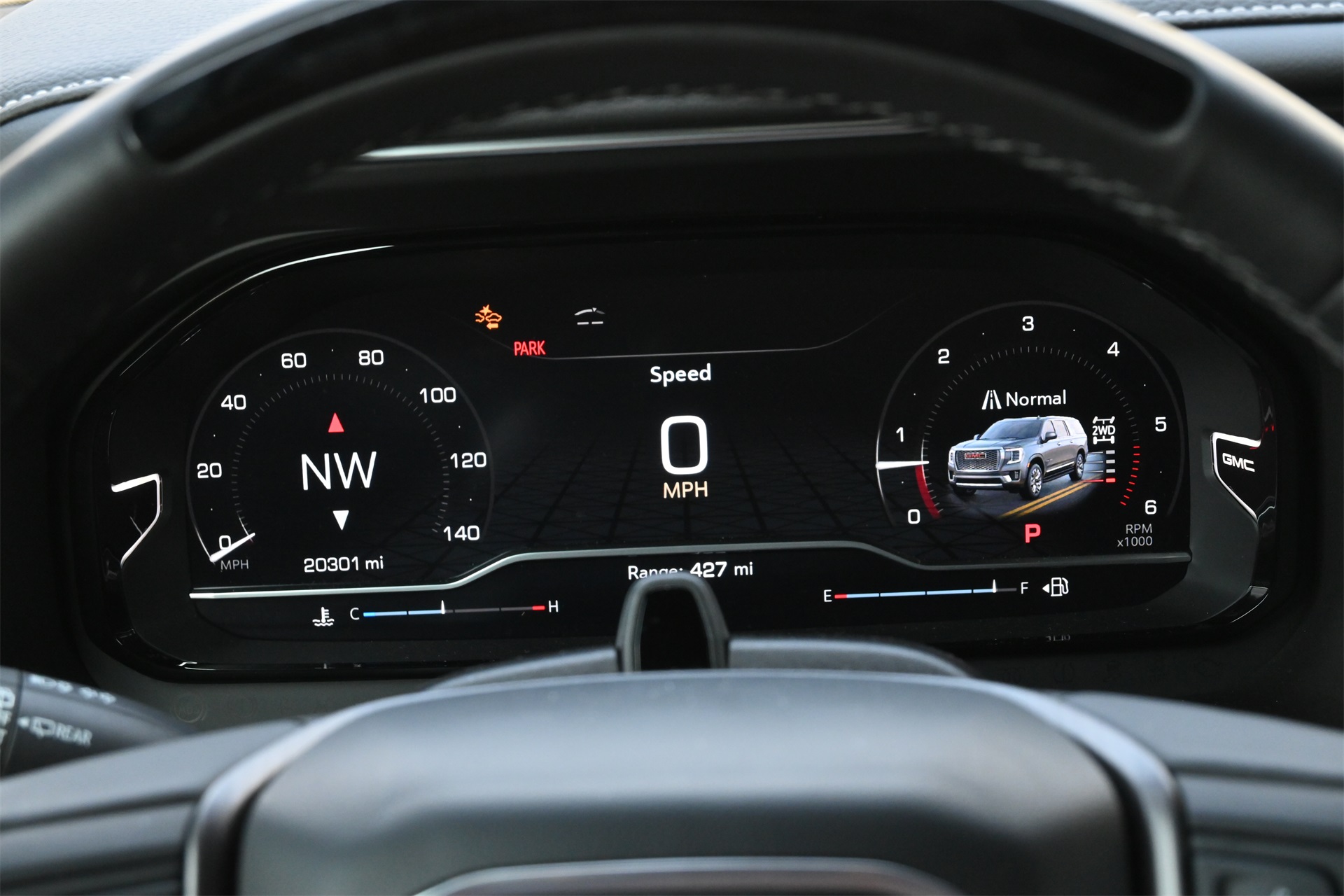 s (LPO), and All-Weather Cargo Mat (LPO)), License Plate Front Mounting Package, Max Trailering Package (Extra Capacity Cooling System), Preferred Equipment Group 5SB (15" Diagonal Multi-Color Head-Up Display, 16-Way Power Seat Adjusters, 2 Presets For Outside Rearview Mirrors, 3rd Row 60/40 Power-Folding Split-Bench Seat, Adaptive Cruise Control, Bose Performance Series Sound System w/18 Speakers, Bright Front & Rear Door Sill Plates, Chrome Door Handles w/Body-Color Strip, Dual Exhaust System, Dual-Pane Panoramic Power Sunroof, Enhanced Automatic Emergency Braking, Floor Console, Hands-Free Power Programmable Rear Liftgate, HD Surround Vision, Heated 2nd Row Outboard Position Seats, Heated Driver & Front Passenger Seats, Heated Steering Wheel, Hill Descent Control, Leather-Wrapped Steering Wheel, Outside Heated Power-Adjustable Mirrors, Perforated Heated & Ventilated Dr & Frt Pass Seats, Power Release 2nd Row Bucket Seats, Power Tilt & Telescopic Steering Column, Power-Retractable Assist Steps, Rear Cross Traffic Alert, Rear Pedestrian Alert, Rear Seat Media System, Safety Alert Seat, Sport Pedal Cover Kit (LPO), Super Cruise, Universal Home Remote, Vader Bodyside Moldings, and Wireless Charging), Premium Capability Package w/Active Response 4WD (Air Ride Adaptive Suspension and Electronic Limited Slip Differential (eLSD)), 4WD, 1.5 kW Heater/Defrost Air System, 18 Speakers, 250 Amps Alternator, 3.23 Rear Axle Ratio, 3rd row seats: split-bench, 4-Wheel Disc Brakes, 850 Cold-Cranking Amps Battery, ABS brakes, Adaptive suspension, Air Conditioning, Alloy wheels, AM/FM radio: SiriusXM with 360L, AM/FM Stereo, Apple CarPlay/Android Auto, Auto High-beam Headlights, Auto-dimming door mirrors, Auto-dimming Rear-View mirror, Auto-leveling suspension, Automatic temperature control, Black Exhaust Tip (LPO), Bodyside moldings, Brake assist, Bumpers: body-color, Compass, Delay-off headlights, Diesel B20 Fuel, Driver door bin, Driver vanity mirror, Dual front impact airbags, Dual front side impact airbags, Electronic Stability Control, Emergency communication system: OnStar and GMC connected services capable, Engine Block Heater, Four wheel independent suspension, Front anti-roll bar, Front Bucket Seats, Front Center Armrest, Front dual zone A/C, Front fog lights, Front reading lights, Full Grain Leather Seats, Fully automatic headlights, Garage door transmitter, Headphones, Heads-Up Display, Heated door mirrors, Heated front seats, Heated rear seats, Heated steering wheel, Hitch View, Illuminated entry, Illuminated Front Door Sill Plates (LPO), Illuminated Mirror GMC Emblem (LPO), Integrated Trailer Brake Controller, Leather steering wheel, Low tire pressure warning, Magnetic Ride Control Suspension, Memory seat, Navigation System, Occupant sensing airbag, Outside temperature display, Overhead airbag, Overhead console, Panic alarm, Passenger door bin, Passenger vanity mirror, Power door mirrors, Power driver seat, Power Liftgate, Power moonroof, Power passenger seat, Power steering, Power windows, Rain sensing wipers, Rear air conditioning, Rear anti-roll bar, Rear audio controls, Rear reading lights, Rear window defroster, Rear window wiper, Remote keyless entry, Roof rack: rails only, Security system, Single Outlet Exhaust System, SiriusXM w/360L, Smart Trailer Integration Indicator, Speed control, Speed-sensing steering, Split folding rear seat, Spoiler, Steering wheel memory, Steering wheel mounted audio controls, Tachometer, Telescoping ste