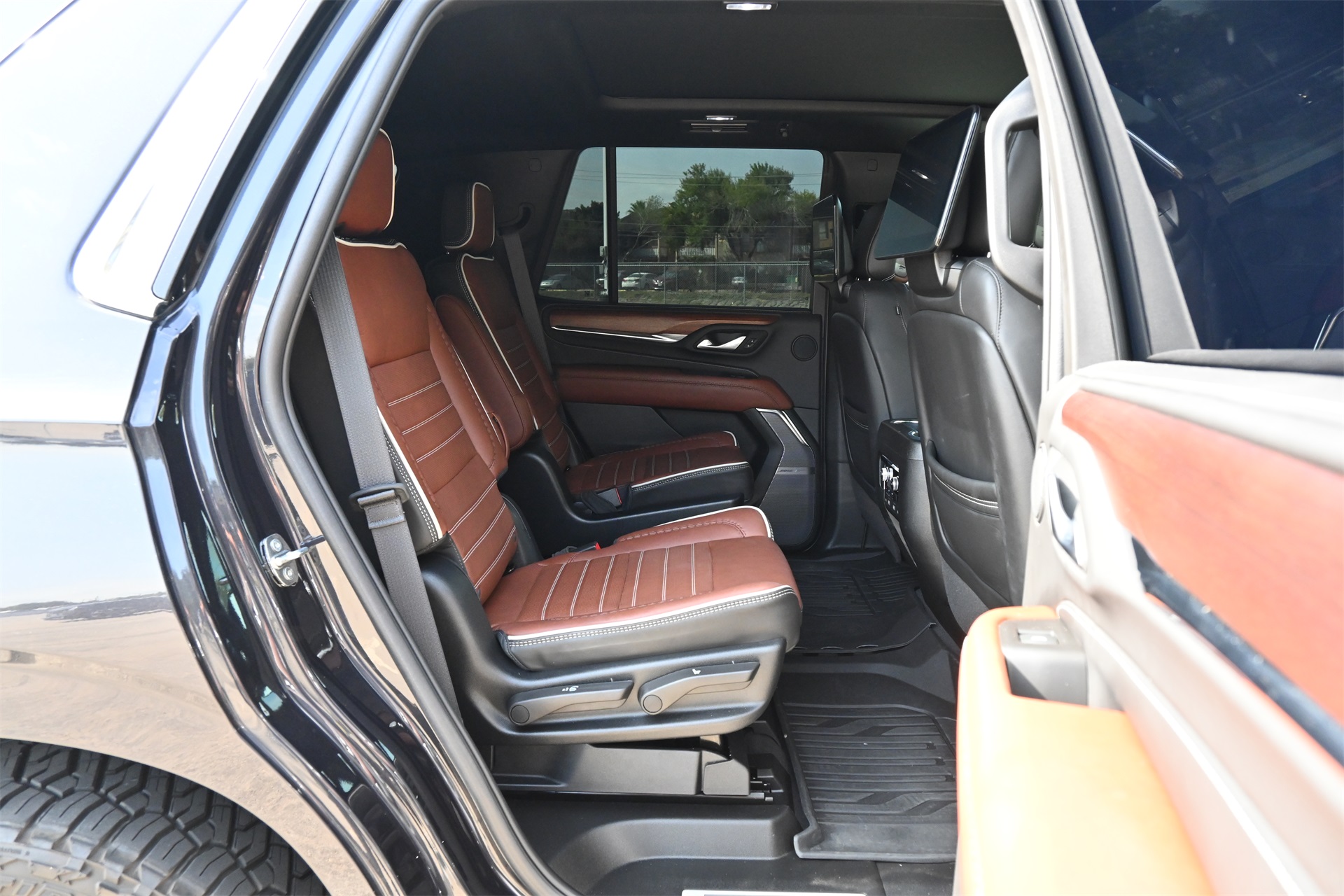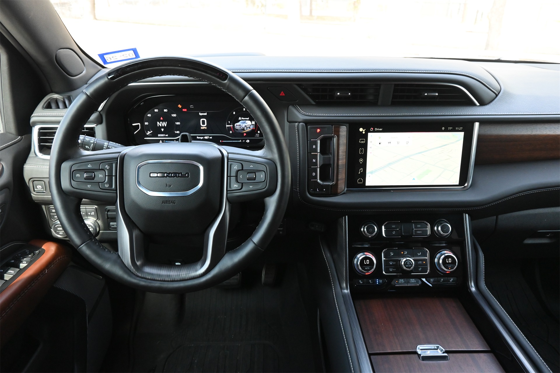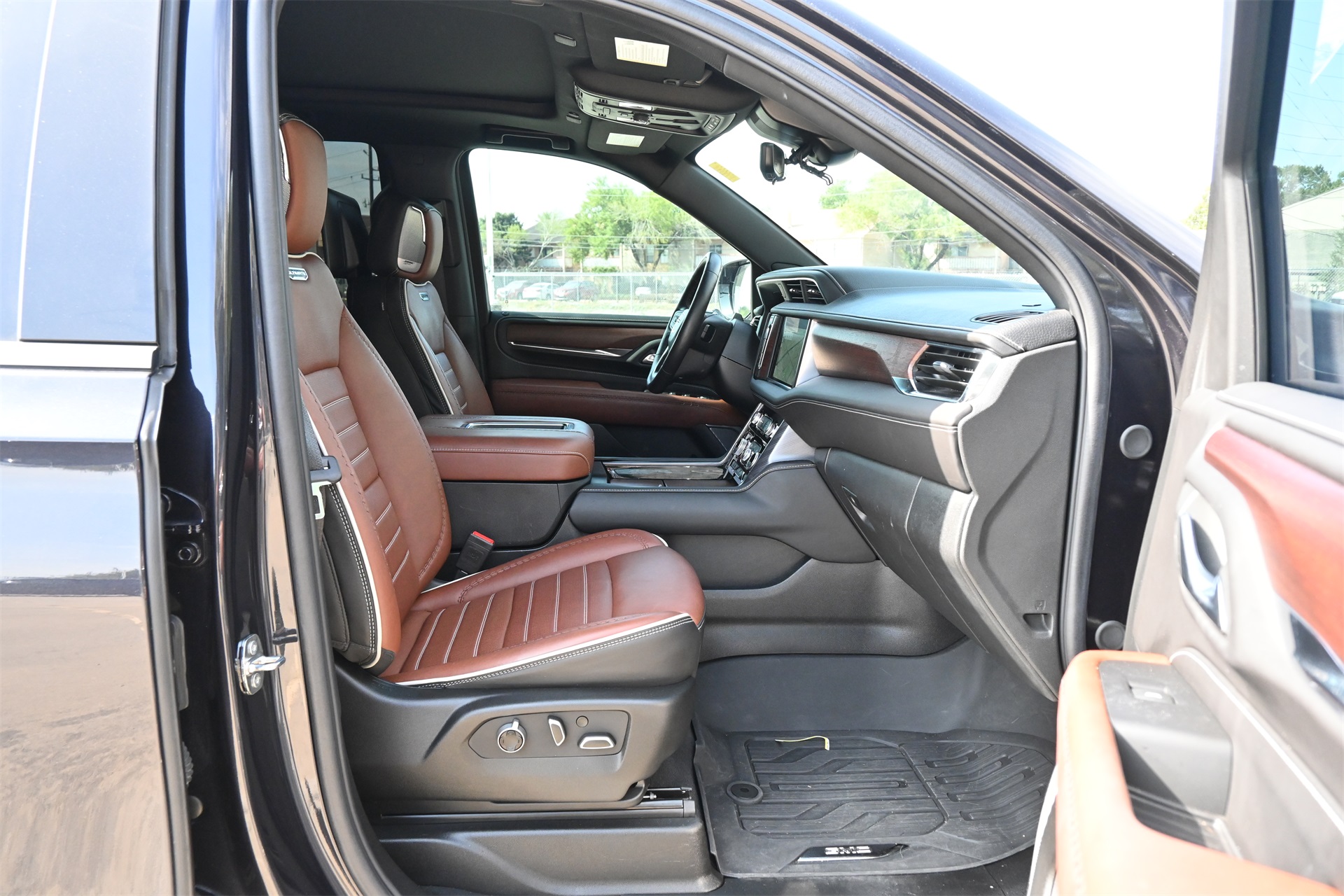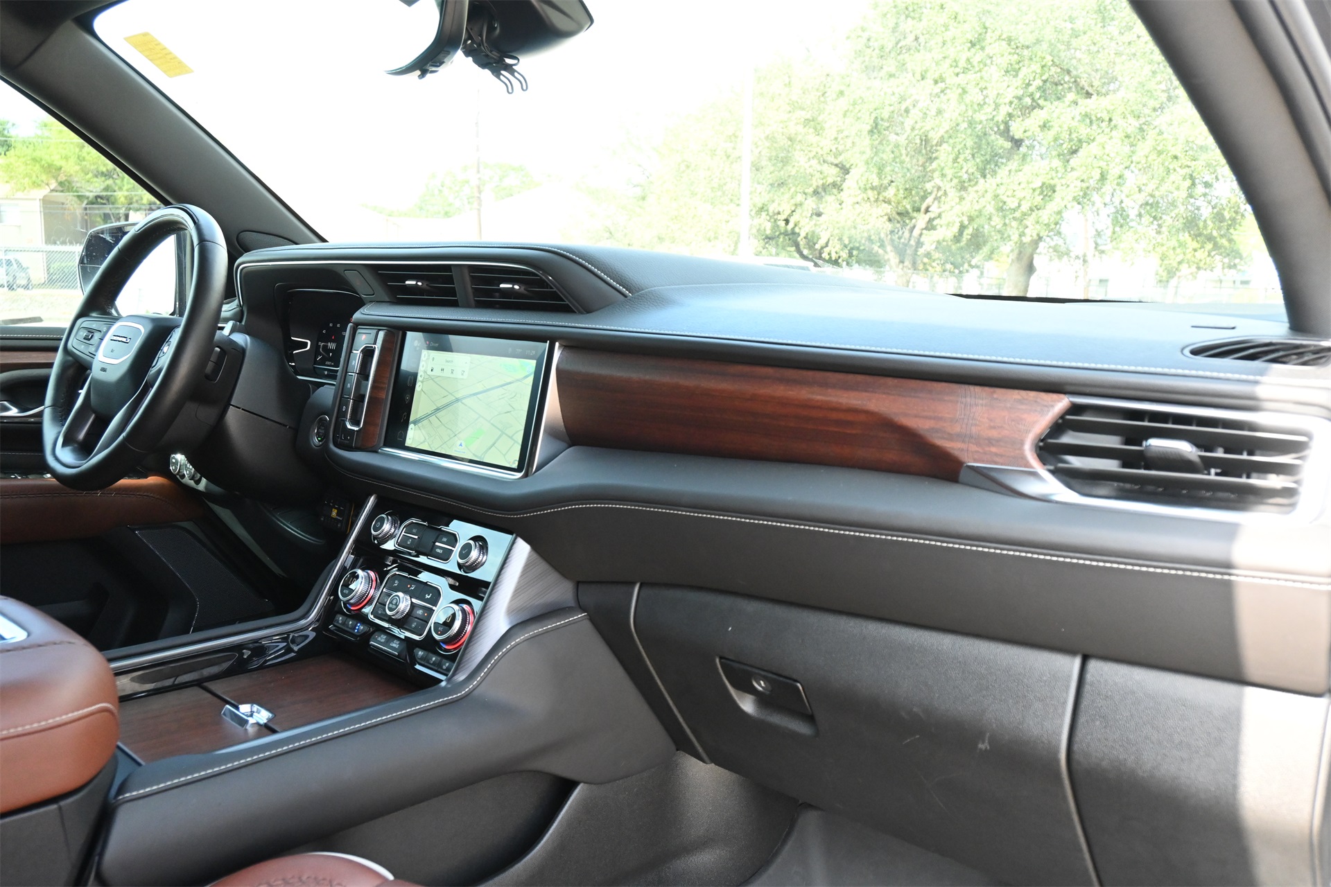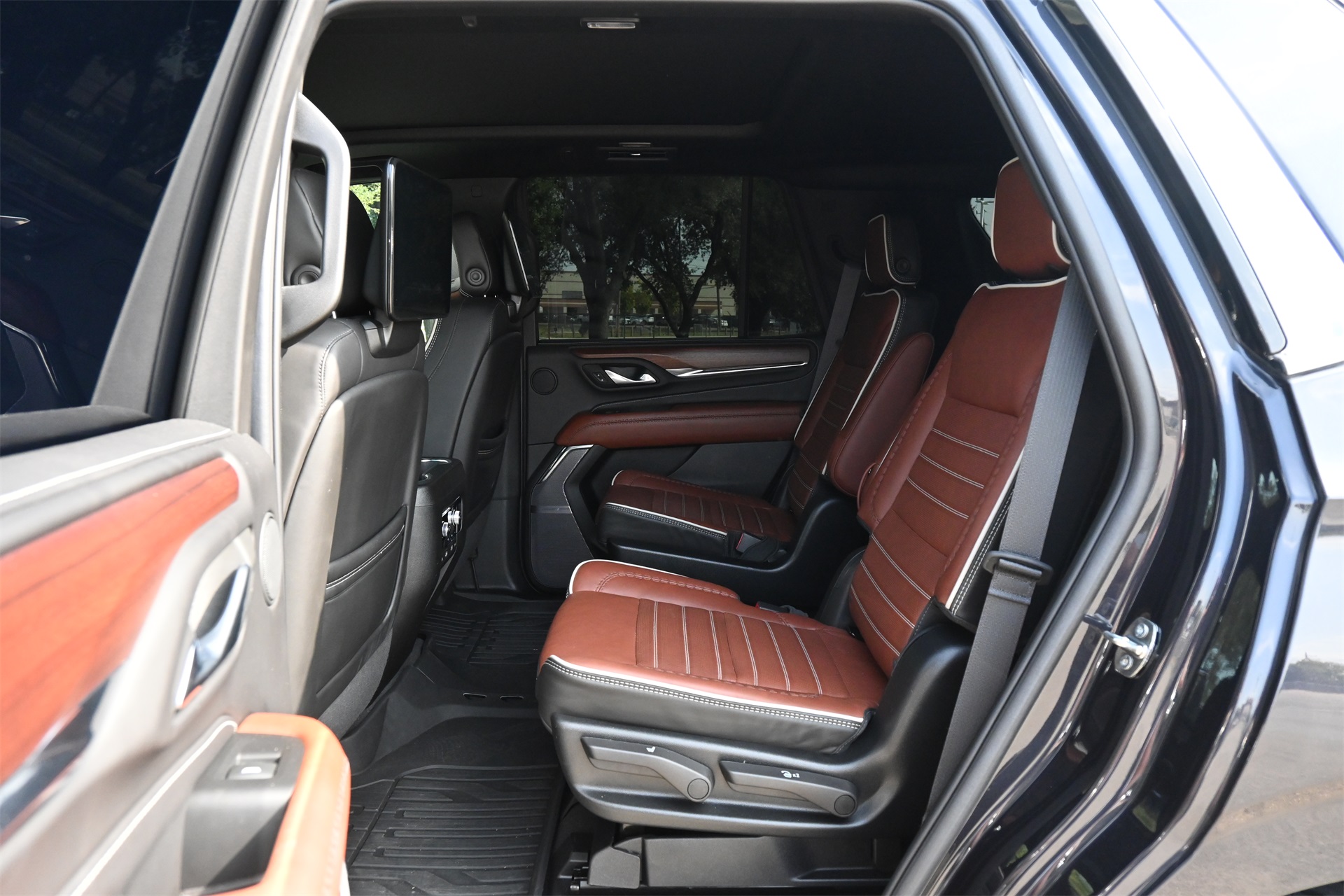 s (LPO), and All-Weather Cargo Mat (LPO)), License Plate Front Mounting Package, Max Trailering Package (Extra Capacity Cooling System), Preferred Equipment Group 5SB (15" Diagonal Multi-Color Head-Up Display, 16-Way Power Seat Adjusters, 2 Presets For Outside Rearview Mirrors, 3rd Row 60/40 Power-Folding Split-Bench Seat, Adaptive Cruise Control, Bose Performance Series Sound System w/18 Speakers, Bright Front & Rear Door Sill Plates, Chrome Door Handles w/Body-Color Strip, Dual Exhaust System, Dual-Pane Panoramic Power Sunroof, Enhanced Automatic Emergency Braking, Floor Console, Hands-Free Power Programmable Rear Liftgate, HD Surround Vision, Heated 2nd Row Outboard Position Seats, Heated Driver & Front Passenger Seats, Heated Steering Wheel, Hill Descent Control, Leather-Wrapped Steering Wheel, Outside Heated Power-Adjustable Mirrors, Perforated Heated & Ventilated Dr & Frt Pass Seats, Power Release 2nd Row Bucket Seats, Power Tilt & Telescopic Steering Column, Power-Retractable Assist Steps, Rear Cross Traffic Alert, Rear Pedestrian Alert, Rear Seat Media System, Safety Alert Seat, Sport Pedal Cover Kit (LPO), Super Cruise, Universal Home Remote, Vader Bodyside Moldings, and Wireless Charging), Premium Capability Package w/Active Response 4WD (Air Ride Adaptive Suspension and Electronic Limited Slip Differential (eLSD)), 4WD, 1.5 kW Heater/Defrost Air System, 18 Speakers, 250 Amps Alternator, 3.23 Rear Axle Ratio, 3rd row seats: split-bench, 4-Wheel Disc Brakes, 850 Cold-Cranking Amps Battery, ABS brakes, Adaptive suspension, Air Conditioning, Alloy wheels, AM/FM radio: SiriusXM with 360L, AM/FM Stereo, Apple CarPlay/Android Auto, Auto High-beam Headlights, Auto-dimming door mirrors, Auto-dimming Rear-View mirror, Auto-leveling suspension, Automatic temperature control, Black Exhaust Tip (LPO), Bodyside moldings, Brake assist, Bumpers: body-color, Compass, Delay-off headlights, Diesel B20 Fuel, Driver door bin, Driver vanity mirror, Dual front impact airbags, Dual front side impact airbags, Electronic Stability Control, Emergency communication system: OnStar and GMC connected services capable, Engine Block Heater, Four wheel independent suspension, Front anti-roll bar, Front Bucket Seats, Front Center Armrest, Front dual zone A/C, Front fog lights, Front reading lights, Full Grain Leather Seats, Fully automatic headlights, Garage door transmitter, Headphones, Heads-Up Display, Heated door mirrors, Heated front seats, Heated rear seats, Heated steering wheel, Hitch View, Illuminated entry, Illuminated Front Door Sill Plates (LPO), Illuminated Mirror GMC Emblem (LPO), Integrated Trailer Brake Controller, Leather steering wheel, Low tire pressure warning, Magnetic Ride Control Suspension, Memory seat, Navigation System, Occupant sensing airbag, Outside temperature display, Overhead airbag, Overhead console, Panic alarm, Passenger door bin, Passenger vanity mirror, Power door mirrors, Power driver seat, Power Liftgate, Power moonroof, Power passenger seat, Power steering, Power windows, Rain sensing wipers, Rear air conditioning, Rear anti-roll bar, Rear audio controls, Rear reading lights, Rear window defroster, Rear window wiper, Remote keyless entry, Roof rack: rails only, Security system, Single Outlet Exhaust System, SiriusXM w/360L, Smart Trailer Integration Indicator, Speed control, Speed-sensing steering, Split folding rear seat, Spoiler, Steering wheel memory, Steering wheel mounted audio controls, Tachometer, Telescoping ste