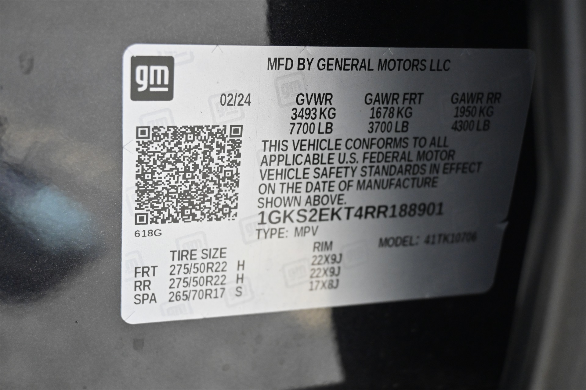 This 2024 GMC Yukon Denali Ultimate is loaded with the following Factory Options:Advanced Security Package (Glass Breakage Sensor, Theft-Deterrent Alarm System, Vehicle Inclination Sensor, and Vehicle Interior Movement Sensor), Advanced Technology Package (Enhanced Automatic Parking Assist, Inside Rearview Auto-Dimming Rear Camera Mirror, Rear Camera Mirror Washer, and Reverse Automatic Braking), Floor Liner Package (LPO) (1st & 2nd Rows Premium Floor Liners (LPO), 3rd Row All-Weather Floor Line