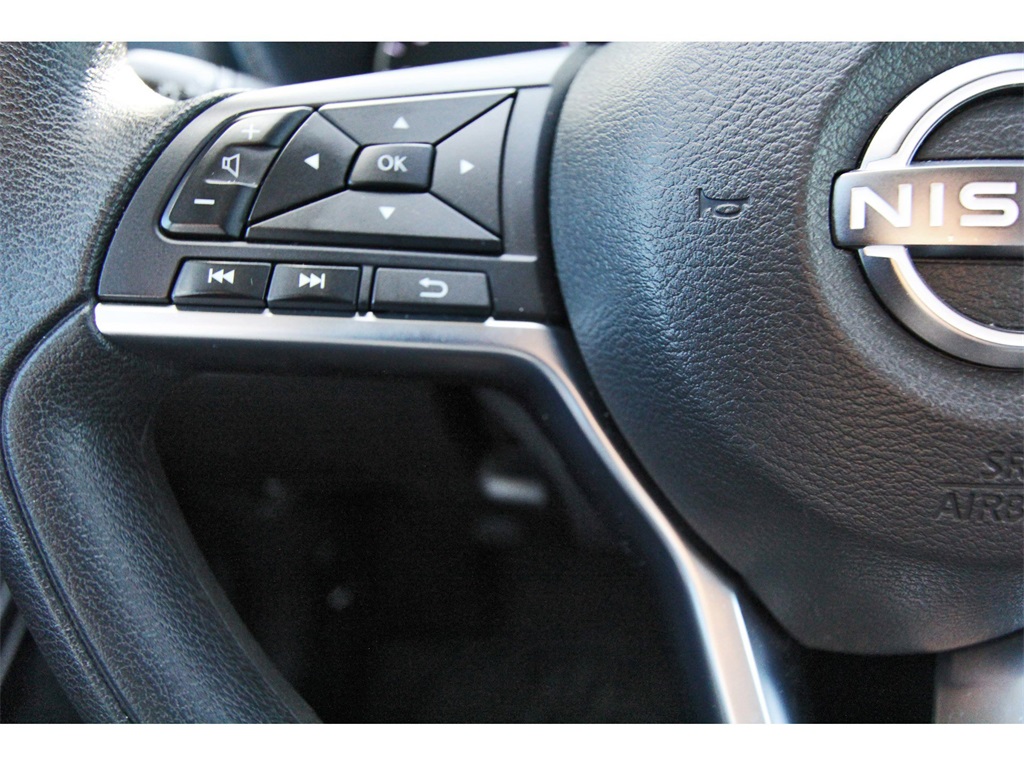 unk Mat, Clear Rear Bumper Protector, Delay-off headlights, Door Sill Plates, Driver door bin, Driver vanity mirror, Dual front impact airbags, Dual front side impact airbags, Electronic Stability Control, Four wheel independent suspension, Front anti-roll bar, Front Bucket Seats, Front Center Armrest, Front reading lights, Fully automatic headlights, Illuminated entry, Knee airbag, Leather steering wheel, Low tire pressure warning, NissanConnect featuring Apple CarPlay and Android Auto, Occupant sensing airbag, Outside temperature display, Overhead airbag, Overhead console, Panic alarm, Passenger door bin, Passenger vanity mirror, Power door mirrors, Power steering, Power windows, Radio data system, Radio: AM/FM w/RDS/MP3/Aux-In, Rear anti-roll bar, Rear Parking Sensors, Rear side impact airbag, Rear window defroster, Remote keyless entry, Security system, Speed control, Speed-sensing steering, Split folding rear seat, Steering wheel mounted audio controls, Tachometer, Telescoping steering wheel, Tilt steering wheel, Traction control, Trip computer, Upgraded Cloth Seat Trim, and Variably intermittent wipers!!