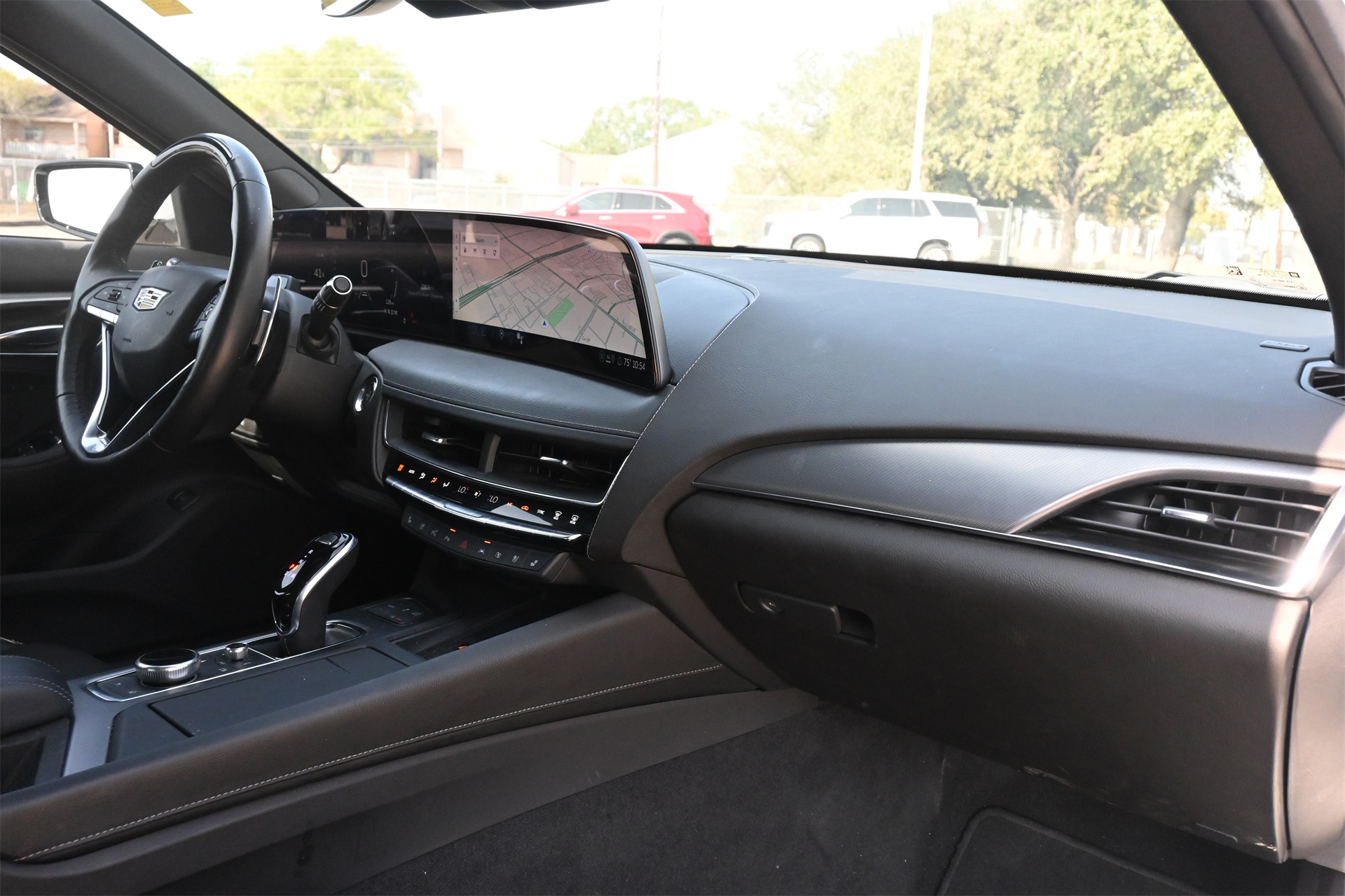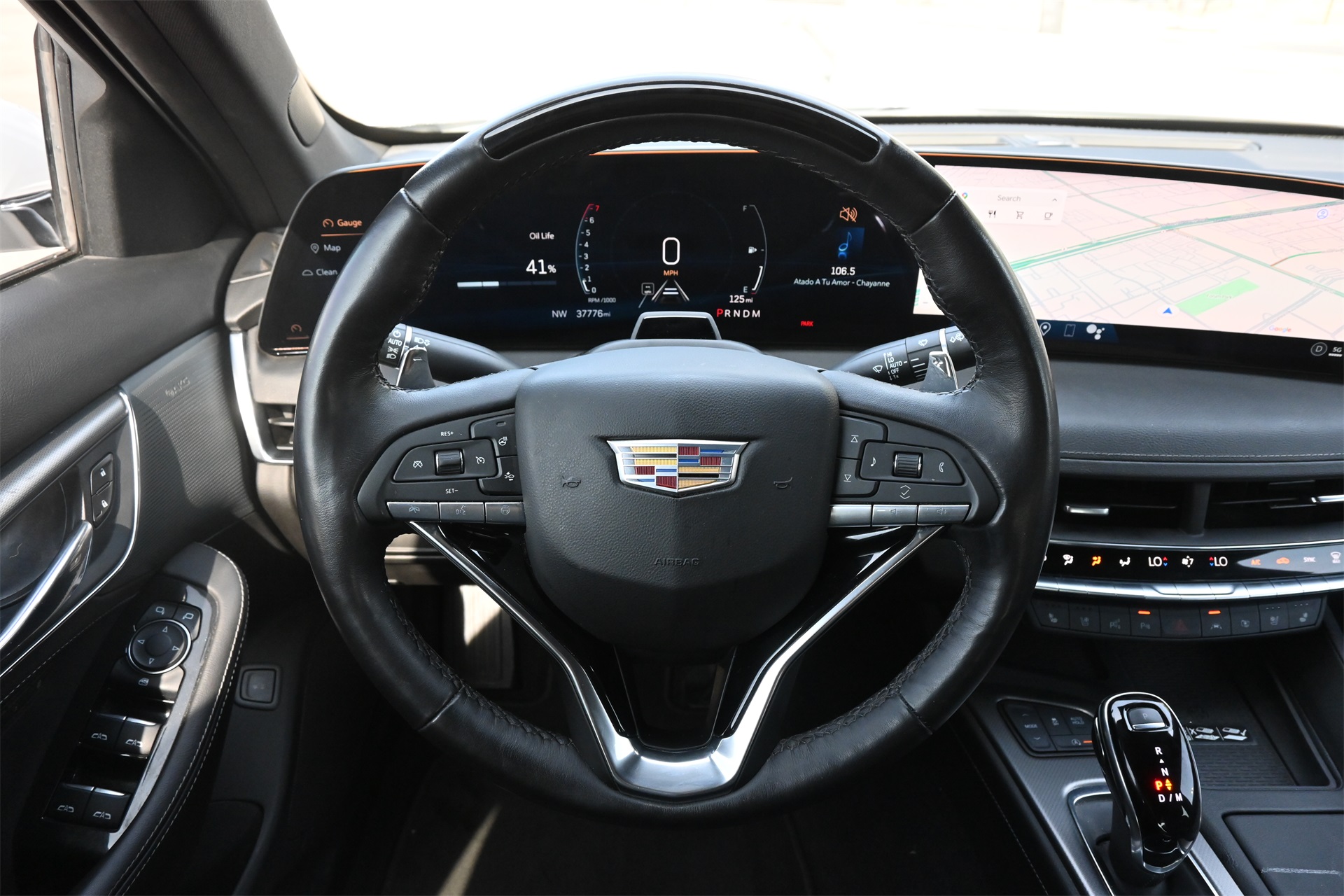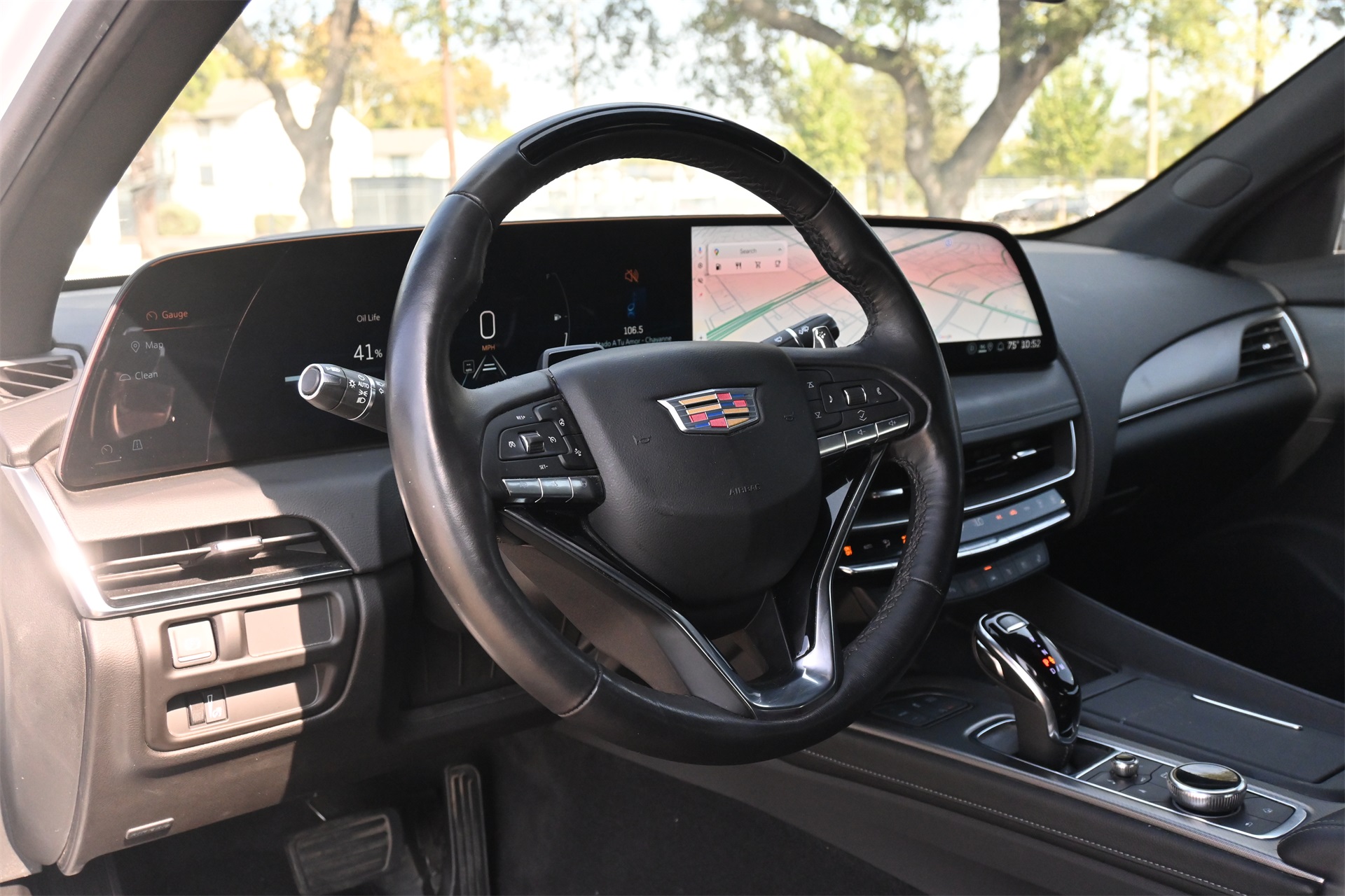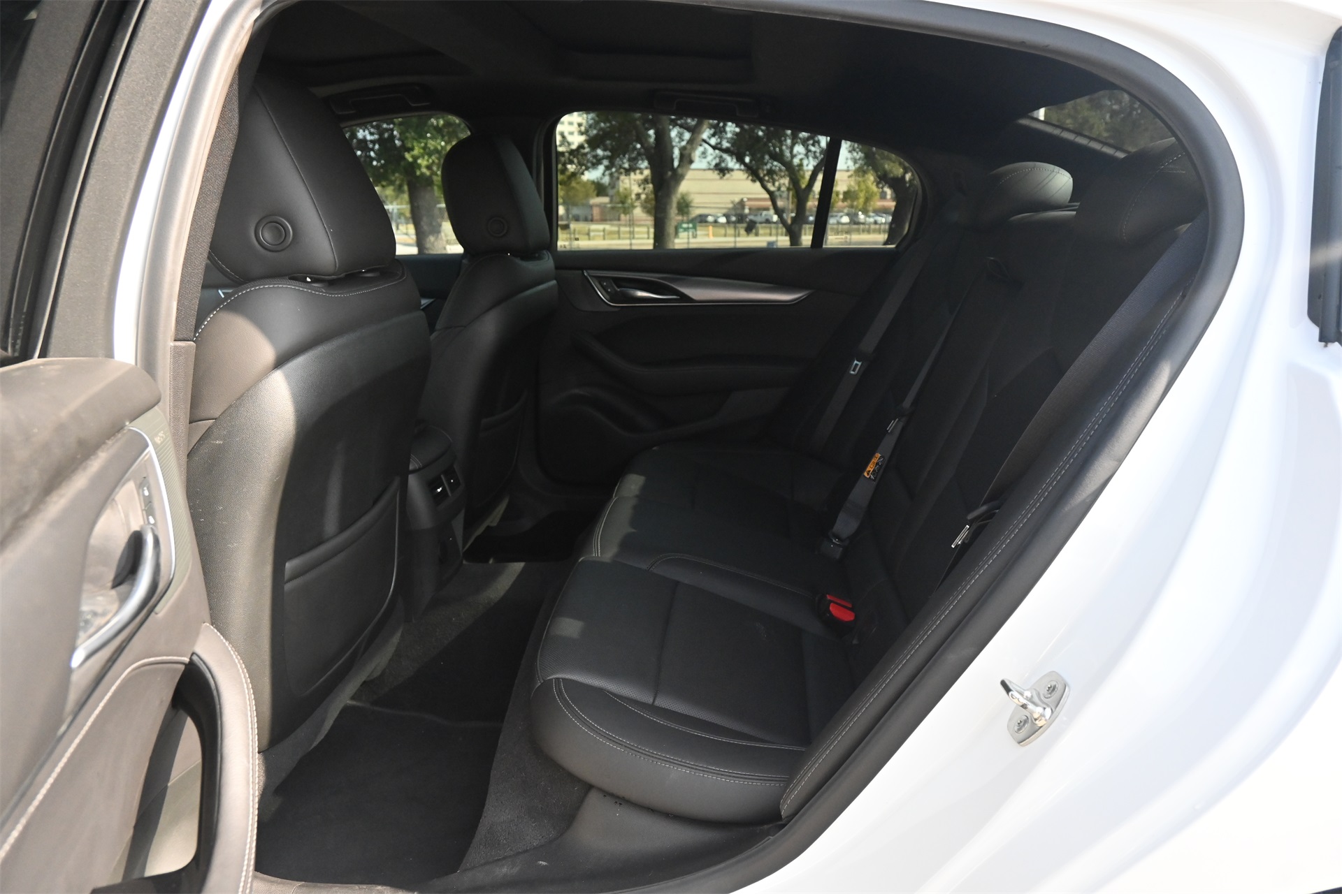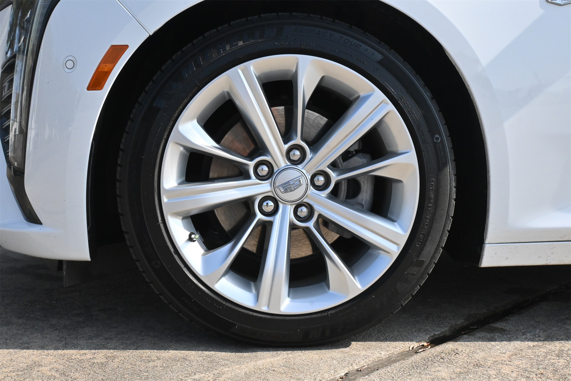 w mirror, Automatic Stop/Start w/Disable, Automatic temperature control, Brake assist, Bumpers: body-color, Compass, Delay-off headlights, Driver 4-Way Power Lumbar Seat Adjuster, Driver door bin, Driver Power Lumbar Massage Seat, Driver Power Seatback Bolster Adjustment, Driver vanity mirror, Dual front impact airbags, Dual front side impact airbags, Electronic Stability Control, Emergency communication system: OnStar and Cadillac connected services capable, Four wheel independent suspension, Front anti-roll bar, Front Bucket Seats, Front Center Armrest, Front dual zone A/C, Front License Plate Bracket, Front Passenger 4-Way Power Lumbar Seat Adjuster, Front Passenger Power Lumbar Massage Seat, Front Passenger Power Seatback Bolster Adjustment, Front reading lights, Fully automatic headlights, Garage door transmitter, Heated door mirrors, Heated Driver & Front Passenger Seats, Heated front seats, Heated steering wheel, Illuminated entry, Knee airbag, Leather Seating Surfaces w/Mini-Perforated Inserts, Leather steering wheel, Low tire pressure warning, Memory seat, Navigation System, Occupant sensing airbag, Outside temperature display, Overhead airbag, Overhead console, Panic alarm, Passenger door bin, Passenger vanity mirror, Power door mirrors, Power driver seat, Power passenger seat, Power steering, Power windows, Radio data system, Radio: Google Built-In Infotainment Experience, Rain sensing wipers, Rear anti-roll bar, Rear reading lights, Rear seat center armrest, Rear window defroster, Remote keyless entry, SiriusXM w/360L Trial Subscription, Speed control, Speed-sensing steering, Split folding rear seat, Steering wheel memory, Steering wheel mounted audio controls, Tachometer, Telescoping steering wheel, Tilt steering wheel, Traction control, Trip computer, Turn signal indicator mirrors, Variably intermittent wipers, Ventilated Driver & Front Passenger Seats, Ventilated front seats, Voltmeter, and Wheels: 18" Premium Painted Alloy. Summit White RWD 10-Speed Automatic 2.0L I4 Turbocharged DOHC 16V LEV3-SULEV30 237hp
