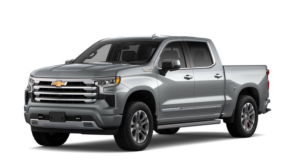 ance: - Under the hood, you'll find a powerful 6.2L EcoTec3 V8 engine with Dynamic Fuel Management, ensuring optimal performance and efficiency. - Paired with a 10-Speed Automatic Transmission, this truck delivers smooth and responsive handling. - The 4WD drivetrain provides excellent traction and control, making it perfect for both on-road and off-road adventures. Interior: - While the specific interior color is not listed, the High Country trim is known for its luxurious and comfortable cabin. - Expect premium materials and finishes that enhance the driving experience for both the driver and passengers. Technology and Features: - The Silverado 1500 High Country is equipped with advanced technology to keep you connected and entertained on the go. - Features typically include a high-quality infotainment system, navigation, and a suite of driver-assistance technologies for added safety and convenience. Utility: - This truck is built to handle tough jobs with ease, offering ample towing and payload capacities. - The spacious bed and innovative storage solutions make it ideal for transporting tools, equipment, or recreational gear. With zero miles on the odometer, this 2025 Chevrolet Silverado 1500 High Country is ready to hit the road and tackle any challenge you throw its way. Whether you're looking for a reliable workhorse or a luxurious ride for your daily commute, this truck delivers on all fronts. Experience the perfect blend of power, style, and technology with the Silve
