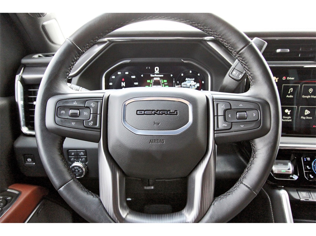 View Camera w/2 Trailer Camera Provisions, Bose Premium Series 12-Speaker System, Deep-Tinted Glass, Electric Rear-Window Defogger, Floor-Mounted Center Console, Front Rain-Sensing Wipers, HD Surround Vision, Heated 2nd Row Outboard Seats, Heated Driver & Front Outboard Passenger Seats, Hitch Guidance w/Hitch View, In-Vehicle Trailering App, Keyless Open & Start, LED Cargo Area Lighting, LED Smoked Amber Roof Marker Lamps, Manual Tilt-Wheel/Telescoping Steering Column, Power Front Windows w/Passenger Express Up/Down, Power Sliding Rear Window w/Defogger, Power Sunroof, ProGrade Trailering System, Push Button Start, Rear Cross Traffic Alert, Remote Vehicle Starter System, Safety Alert Seat, Signature Denali Ultimate Grille in Vader Chrome, SiriusXM w/360L Trial Subscription, Spray-On Pickup Bedliner w/GMC Logo, Steering Wheel Audio Controls, Trailer Camera Provisions, Trailer Side Blind Zone Alert, Trailer Tire Pressure Monitor Sensors, Ultrasonic Front & Rear Park Assist, Unauthorized Entry Theft-Deterrent System, Universal Home Remote, Ventilated Driver & Front Passenger Seats, Wireless Charging, and Wireless Phone Projection), Technology Package (Auto-Dimming Inside Rearview Mirror w/Camera and Multicolor 15" Diagonal Head-Up Display), 10-Speed Automatic, 4WD, Alpine Umber Leather, 12 Speakers, 16-Way Power Driver Seat Adjuster w/Lumbar, 16-Way Power Passenger Seat Adjuster w/Lumbar, 220 Amp Alternator, 3 Years SiriusXM, 3.42 Rear Axle Ratio, 4-Wheel Disc Brakes, ABS brakes, Air Conditioning, All-Weather Floor Liners (LPO), Alloy wheels, AM/FM radio: SiriusXM with 360L, Auto High-beam Headlights, Auto-dimming door mirrors, Auto-dimming Rear-View mirror, Automatic Emergency Braking, Automatic temperature control, Block heater, Brake assist, Buckle to Drive, Bumpers: body-color, Compass, Delay-off headlights, Driver door bin, Driver Memory, Driver vanity mirror, Dual front impact airbags, Dual front side impact airbags, Dual Heavy-Duty 70 Amp-Hr Battery, Electronic Stability Control, Exterior Parking Camera Rear, Following Distance Indicator, Forward Collision Alert, Front anti-roll bar, Front Bucket Seats, Front Center Armrest, Front dual zone A/C, Front fog lights, Front License Plate Kit, Front Pedestrian Braking, Front reading lights, Front wheel independent suspension, Full Grain Leather Seat Trim, Fully automatic headlights, Garage door transmitter, Genuine wood dashboard insert, Genuine wood door panel insert, GMC Premium 13.4" Diagonal Information Display, Heads-Up Display, Heated door mirrors, Heated front seats, Heated rear seats, Heated steering wheel, Illuminated entry, IntelliBeam Automatic High Beam On/Off, Lane Departure Warning System, Leather steering wheel, Low tire pressure warning, Memory seat, Occupant sensing airbag, Outside temperature display, Overhead airbag, Overhead console, Panic alarm, Passenger door bin, Passenger vanity mirror, Pickup Bed, Power door mirrors, Power driver seat, Power moonroof, Power passenger seat, Power steering, Power windows, Radio: AM/FM w/Premium GMC Infotainment System, Rain sensing wipers, Rear reading lights, Rear seat center armrest, Rear step bumper, Rear window defroster, Remote keyless entry, Security system, Speed control, Speed-sensing steering, Split folding rear seat, Steering wheel mounted audio controls, Tachometer, Telescoping steering wheel, Tilt steering wheel, Traction control, Trip computer, Turn signal indicator mirrors, Variably intermittent wipers, Ventilated fr