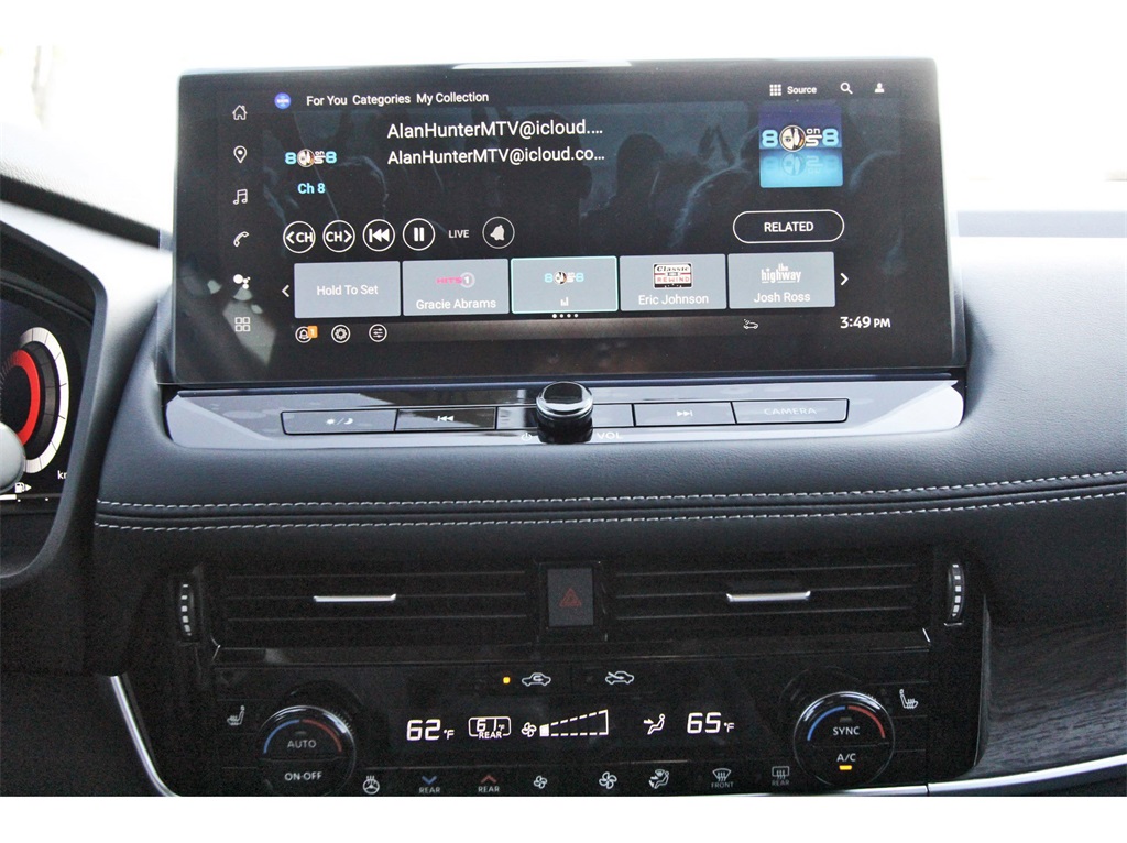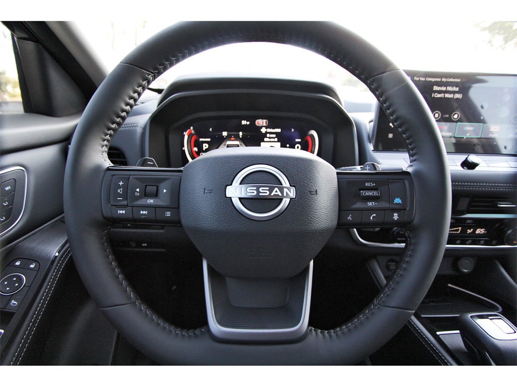 control, Black Splash Guards (Set of 4), Bose Premium Audio System, Brake assist, Bumpers: body-color, Chrome Rear Bumper Protector, Delay-off headlights, Driver door bin, Driver vanity mirror, Dual front impact airbags, Dual front side impact airbags, Electronic Stability Control, Emergency communication system: NissanConnect Services, First Aid Kit, Floor Mats w/2-Piece Cargo Area Protector, Four wheel independent suspension, Front anti-roll bar, Front Bucket Seats, Front Center Armrest, Front dual zone A/C, Front reading lights, Fully automatic headlights, Garage door transmitter: myQ Connected Garage, Heads-Up Display, Heated door mirrors, Heated Front Bucket Seats, Heated front seats, Heated steering wheel, Illuminated entry, Knee airbag, Low tire pressure warning, Memory seat, Navigation system: Google Maps, Occupant sensing airbag, Outside temperature display, Overhead airbag, Overhead console, Panic alarm, Passenger door bin, Passenger vanity mirror, Power door mirrors, Power driver seat, Power Liftgate, Power moonroof, Power passenger seat, Power steering, Power windows, Premium Paint, Quilted Semi-Aniline Leather-Appointed Seat Trim, Radio data system, Radio: AM/FM NissanConnect w/Navigation, Rear anti-roll bar, Rear reading lights, Rear seat center armrest, Rear side impact airbag, Rear window defroster, Rear window wiper, Remote keyless entry, Retractable Cargo Cover, Roof Rail Cross Bars, Security system, Speed control, Speed-sensing steering, Speed-Sensitive Wipers, Split folding rear seat, Spoiler, Steering wheel mounted audio controls, Tachometer, Telescoping steering wheel, Tilt steering wheel, Traction control, Trip computer, Turn signal indicator mirrors, USB Charging Cable Set, Variably intermittent wipers, Wheels: 19" Unique Dark Painted Aluminum Alloy, and Wireless Apple CarPlay/Wireless Android Auto!!