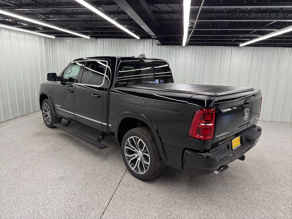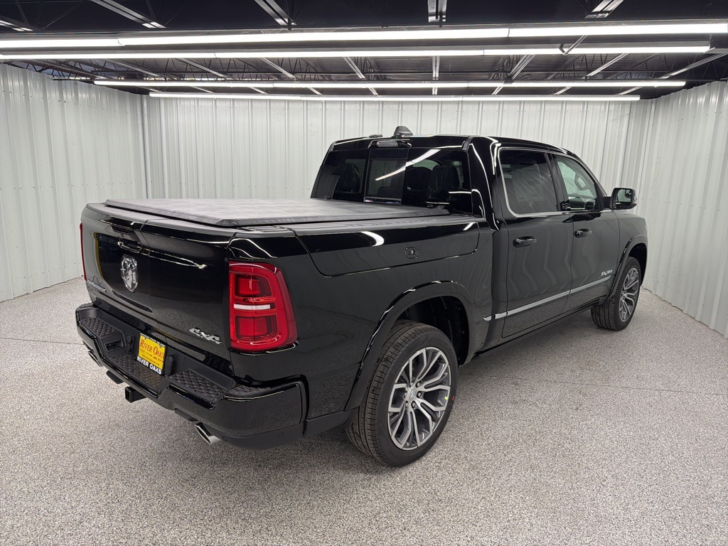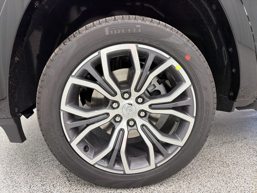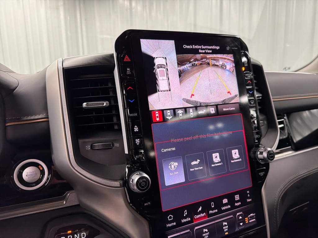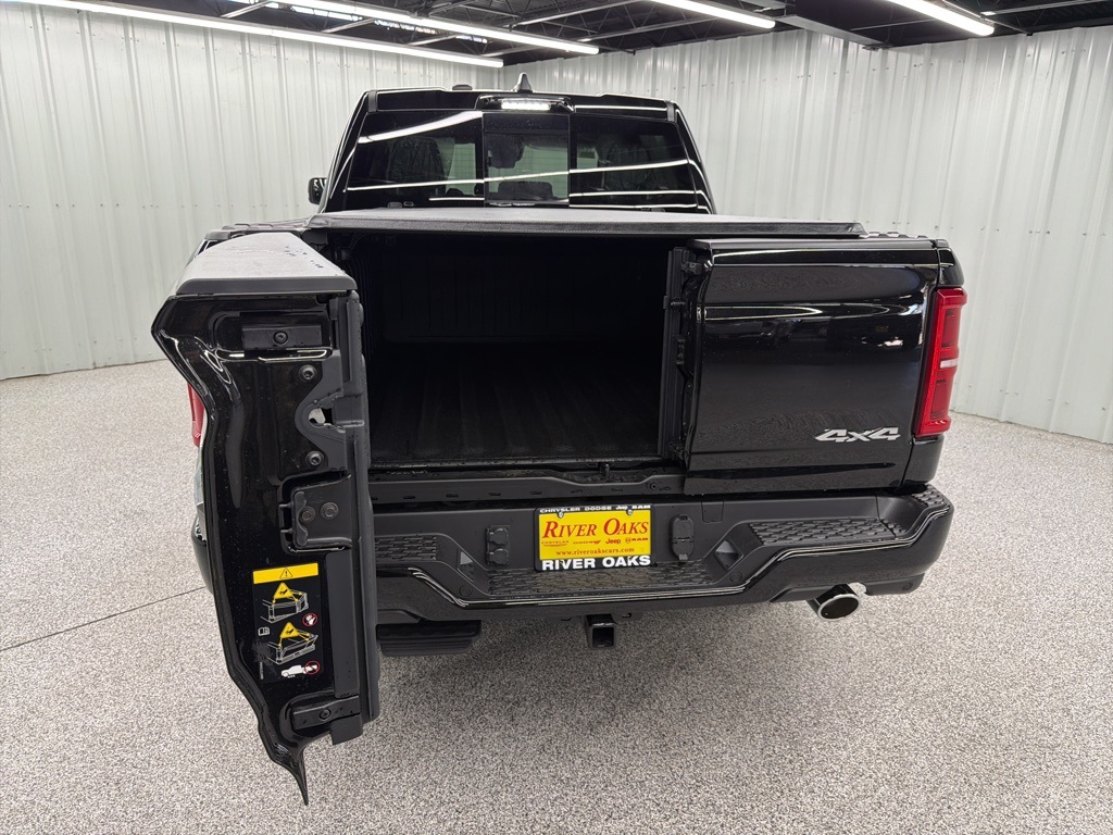 r 115V AC Outlet, MOPAR 4 Adjustable Cargo Tie-Down Hooks, and Truck Bed Cargo Divider), Quick Order Package 22V Tungsten, 12-Way/1-Way Trailer Connector, 3.92 Rear Axle Ratio, 4-Wheel Disc Brakes, ABS brakes, Adjustable pedals, Air Conditioning, Alloy wheels, AM/FM radio, Apple CarPlay/Android Auto, Audio memory, Auto High-beam Headlights, Auto Power-Folding Mirrors, Auto-dimming door mirrors, Auto-Dimming Exterior Driver Mirror, Auto-dimming Rear-View mirror, Auto-leveling suspension, Automatic temperature control, Bodyside moldings, Brake assist, Bumpers: body-color, Chrome Exterior Mirrors, Compass, Delay-off headlights, Driver door bin, Driver vanity mirror, Dual front impact airbags, Dual front side impact airbags, Electronic Stability Control, Exterior Mirrors Courtesy Lamps, Exterior Mirrors with Heating Element, Exterior Mirrors with Memory, Exterior Mirrors with Supplemental Signals, Exterior Parking Camera Rear, Front anti-roll bar, Front Bucket Seats, Front Center Armrest w/Storage, Front dual zone A/C, Front fog lights, Front License Plate Bracket, Front reading lights, Front wheel independent suspension, Fully automatic headlights, Garage door transmitter, Heads-Up Display, Heated door mirrors, Heated front seats, Heated rear seats, Heated steering wheel, Illuminated entry, Leather steering wheel, Low tire pressure warning, Memory seat, Multi-Function Tailgate, Navigation System, Occupant sensing airbag, Outside temperature display, Overhead airbag, Overhead console, Panic alarm, Passenger door bin, Passenger vanity mirror, Pedal memory, Power adjustable front head restraints, Power door mirrors, Power driver seat, Power moonroof, Power passenger seat, Power steering, Power windows, Premium Leather Bucket Seats, Radio data system, Radio: Uconnect 5 Nav with 14.4" Display, Rain sensing wipers, RAM's Head Badge, Rear anti-roll bar, Rear reading lights, Rear seat center armrest, Rear step bumper, Rear window defroster, Remote keyless entry, Remote Tailgate Release, Security system, Speed control, Split folding rear seat, Steering wheel mounted audio controls, Tachometer, Telescoping steering wheel, Tilt steering wheel, Traction control, Trailer Brake Control, Trip computer, Turn signal indicator mirrors, Variably intermittent wipers, Ventilated front seats, Ventilated rear seats, Voltmeter, and Wheels: 22" x 9" Polish/Painted with Inserts.