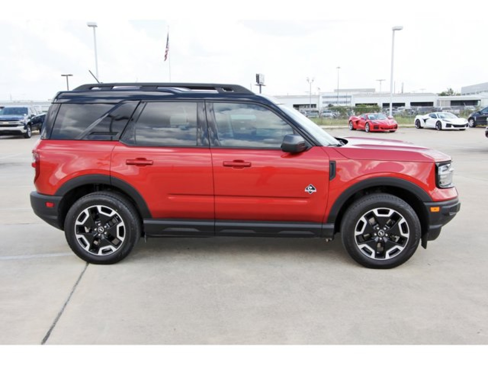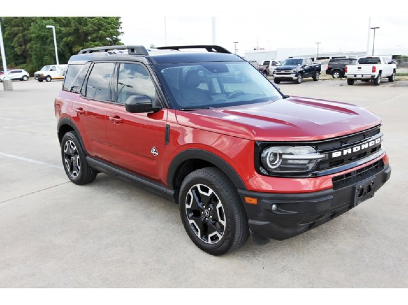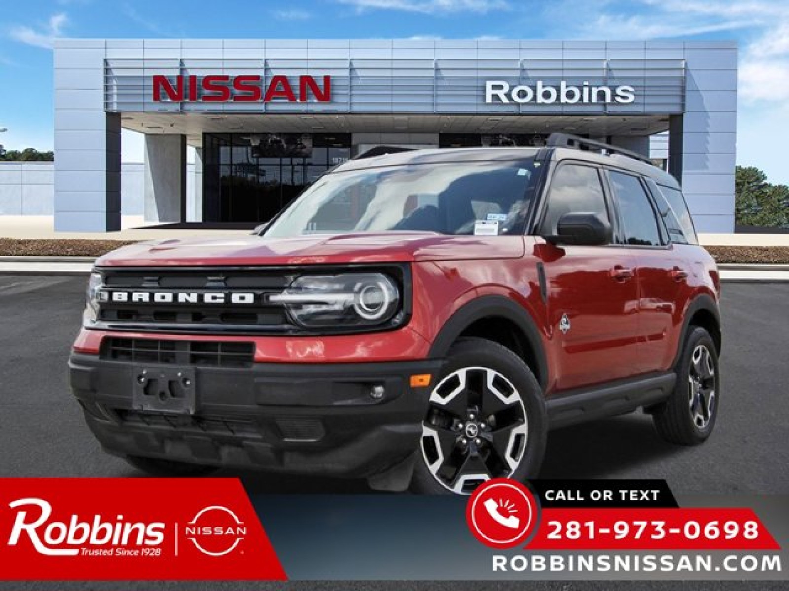 This 2022 Ford Bronco Sport Outer Banks is offered to you for sale by Robbins Nissan. This SUV is a superb example of what a tough, work focused vehicle should be. Exceptional towing, acceleration and torque will help you get the job done. Equipped with 4WD, this Ford Bronco Sport Outer Banks gives you added confidence to tackle the surface of any path you take. This 2022 Ford Bronco Sport has such low mileage it has been parked more than driven. Beautiful color combination with Cyber Orange Met