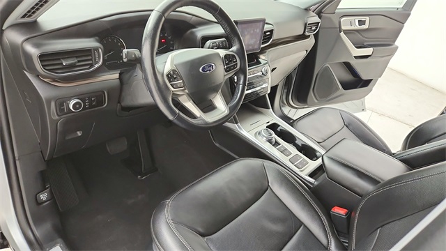 This 2023 Ford Explorer Limited in Silver Metallic comes with the following features: 2.3L EcoBoost I-4 10-Speed Automatic RWD Equipment Group 301A, Limited Convenience Package (110V/150W AC Power Outlet, 3rd Row PowerFold Seat, Memory Driver's Seat, Power Tilt/Telescoping Steering Column, and Sideview Mirrors w/Gloss Black Caps), 12 Speakers, 20" Premium Painted Aluminum Wheels, 3.58 Non-Limited-Slip Rear Axle Ratio, 3rd row seats: bench, 4-Wheel Disc Brakes, 4G LTE Wi-Fi Hotspot Credit, ABS brakes, Air Conditioning, Alloy wheels, AM/FM radio: SiriusXM, Auto High-beam Headlights, Auto Start-Stop Removal (DISC), Auto-dimming Rear-View mirror, Automatic temperature control, Brake assist, Bumpers: body-color, Compass, Delay-off headlights, Driver door bin, Driver vanity mirror, Dual front impact airbags, Dual front side impact airbags, Electronic Stability Control, Emergency communication system: SYNC 3 911 Assist, Exterior Parking Camera Rear, FordPass Connect, Four wheel independent suspension, Front anti-roll bar, Front Bucket Seats, Front Center Armrest, Front dual zone A/C, Front fog lights, Front reading lights, Fully automatic headlights, Garage door transmitter, Heated door mirrors, Heated front seats, Heated rear seats, Heated steering wheel, Illuminated entry, Knee airbag, Leather Heated/Ventilated Captain's Chairs, Leather steering wheel, Low tire pressure warning, Navigation System, Occupant sensing airbag, Outside temperature display, Overhead airbag, Overhead console, Panic alarm, Passenger door bin, Passenger vanity mirror, Power door mirrors, Power driver seat, Power Liftgate, Power passenger seat, Power steering, Power windows, Radio data system, Radio: B&O Sound System by Bang & Olufsen, Rain sensing wipers, Rear air conditioning, Rear anti-roll bar, Rear reading lights, Rear window defroster, Rear window wiper, Remote keyless entry, Roof rack: rails only, Security system, Speed control, Speed-sensing steering, Speed-Sensitive Wipers, Split folding rear seat, Spoiler, Steering wheel mounted audio controls, SYNC 3 Communications & Entertainment System, SYNC 3/Apple CarPlay/Android Auto, Tachometer, Telescoping steering wheel, Tilt steering wheel, Traction control, Trip computer, Variably intermittent wipers, Ventilated front seats, and Voice-Activated Touchscreen Navigation System.