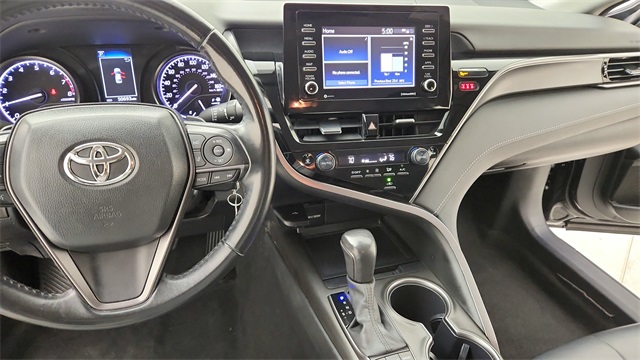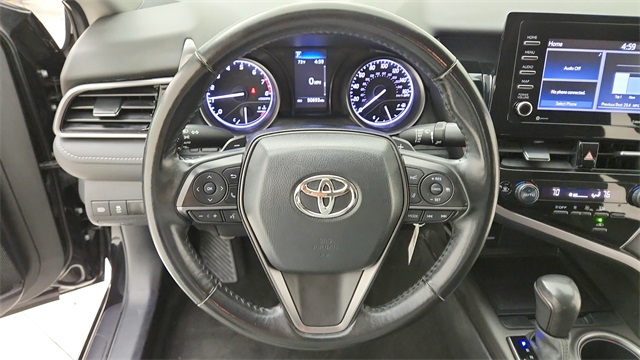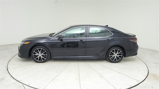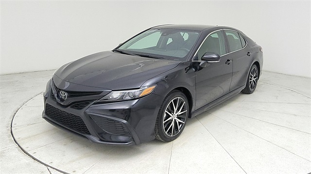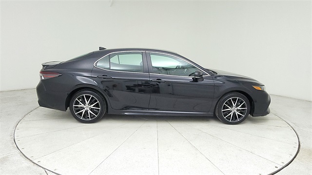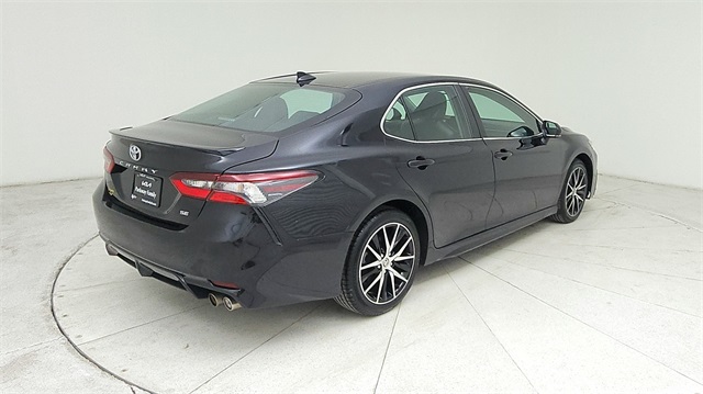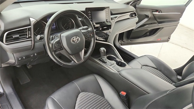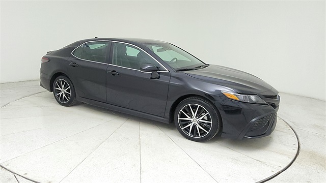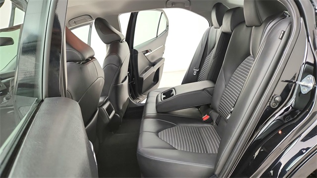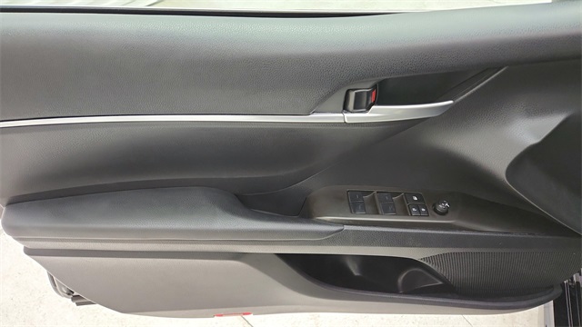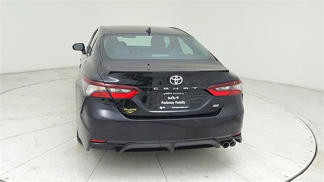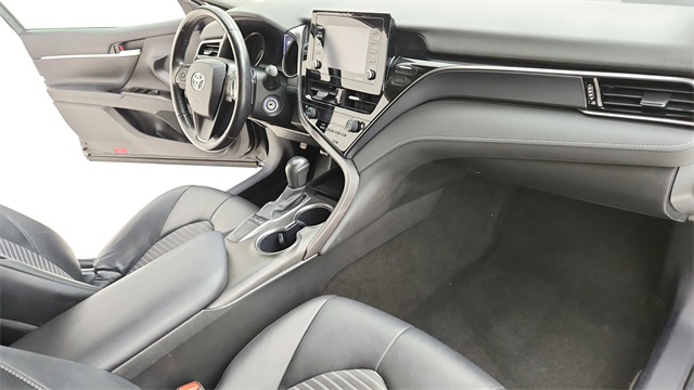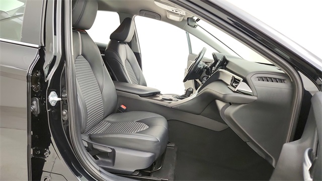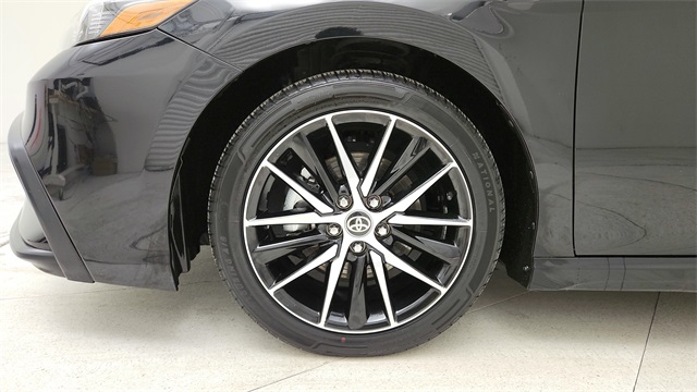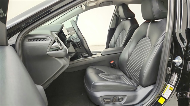 This 2024 Toyota Camry SE in Black comes with the following features: 2.5L I4 DOHC 16V 8-Speed Automatic FWD 18" x 8J Alloy Wheels, 4-Wheel Disc Brakes, 6 Speakers, ABS brakes, Air Conditioning, Alloy wheels, AM/FM radio: SiriusXM, Apple CarPlay/Android Auto, Auto High-beam Headlights, Automatic temperature control, Brake assist, Bumpers: body-color, Delay-off headlights, Driver door bin, Driver vanity mirror, Dual front impact airbags, Dual front side impact airbags, Electronic Stability Control, Emergency communication system: Safety Connect (1-year trial), Exterior Parking Camera Rear, Four wheel independent suspension, Front anti-roll bar, Front Bucket Seats, Front Center Armrest, Front dual zone A/C, Front reading lights, Fully automatic headlights, Heated door mirrors, Illuminated entry, Knee airbag, Leather steering wheel, Low tire pressure warning, Occupant sensing airbag, Outside temperature display, Overhead airbag, Overhead console, Panic alarm, Passenger door bin, Passenger vanity mirror, Power door mirrors, Power driver seat, Power steering, Power windows, Radio data system, Radio: Audio, Rear anti-roll bar, Rear seat center armrest, Rear side impact airbag, Rear window defroster, Remote keyless entry, Security system, Speed control, Speed-sensing steering, Split folding rear seat, Spoiler, Sport SofTex Seat Trim w/Fabric Inserts, Steering wheel mounted audio controls, Tachometer, Telescoping steering wheel, Tilt steering wheel, Traction control, Trip computer, Turn signal indicator mirrors, and Variably intermittent wipers.