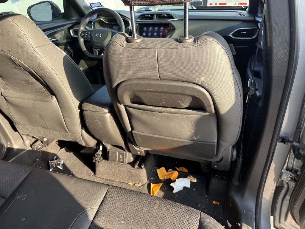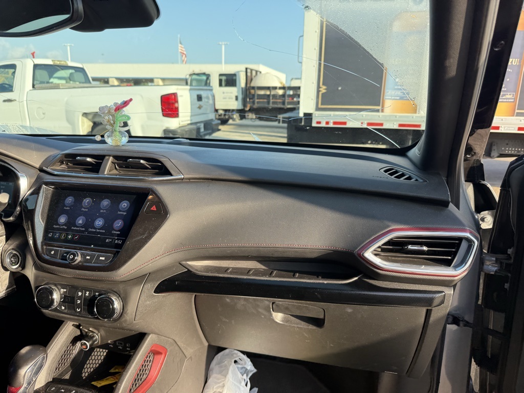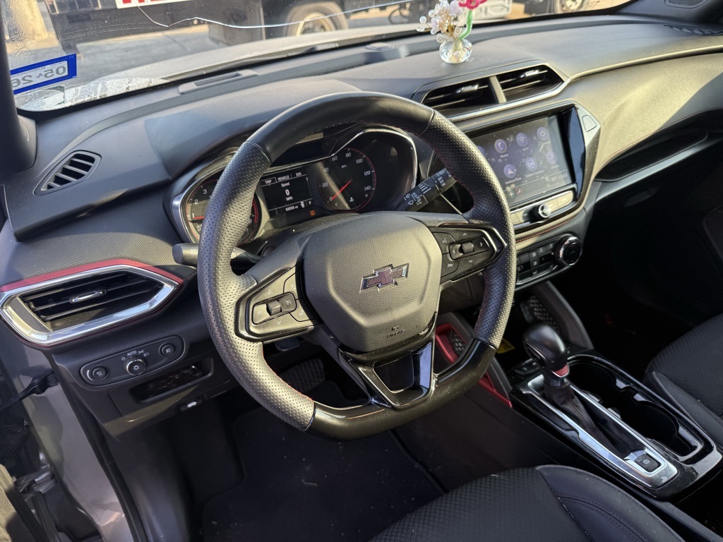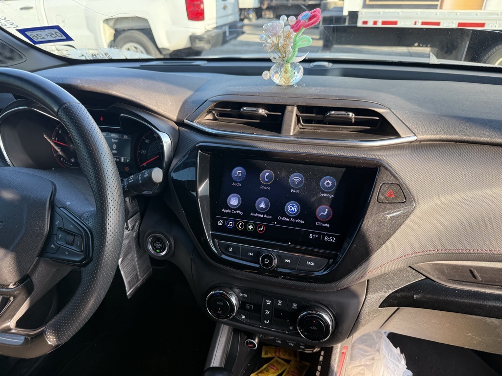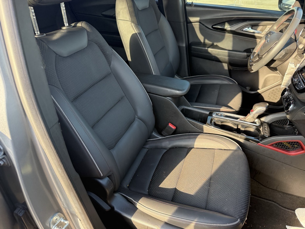 air conditioning, (UIJ) 8 diagonal color touchscreen display, (USS) one type-A and one type-C charging only USB ports, (KI6) 120-volt power outlet, (DD8) inside rearview auto-dimming mirror and (DMS) driver and front passenger illuminated vanity mirrors, covered, sliding visors, DRIVER CONFIDENCE PACKAGE includes (UKC) Lane Change Alert with Side Blind Zone Alert, (UFG) Rear Cross Traffic Alert and (UD7) Rear Park Assist (Beginning with start of production through November 28, 2022, vehicles will be forced to include (00Y) Not Equipped with Rear Park Assist, which removes Rear Park Assist. See dealer for details or the window label for the features on a specific vehicle. Beginning December 26, 2022, certain vehicles will be forced to include (060) Not Equipped with Rear Park Assist, which removes Rear Park Assist. Does not include later dealer retrofit. See dealer for details or the window label for the features on a specific vehicle.), AUDIO SYSTEM, CHEVROLET INFOTAINMENT 3 SYSTEM 7 diagonal color touchscreen, AM/FM stereo. Additional features for compatible phones include: Bluetooth® audio streaming for 2 active devices, voice command pass-through to phone, Apple CarPlay® and Android Auto® capable. (8 screen when (ZL3) Convenience Package and (ZL5) Driver Confidence Package are ordered.) (STD), ECOTEC 1.3L I3 TURBO DOHC SIDI WITH VARIABLE VALVE TIMING (VVT) (155 hp [115 kW] @ 5600 rpm, 174 lb-ft torque [236 N-m] @ 1600 rpm) (STD), TRANSMISSION, CONTINUOUSLY VARIABLE (CVT) (STD). Chevrolet RS with Sterling Gray Metallic exterior and Jet Black with Red accents interior features a 3 Cylinder Engine with 155 HP at 5600 RPM*.