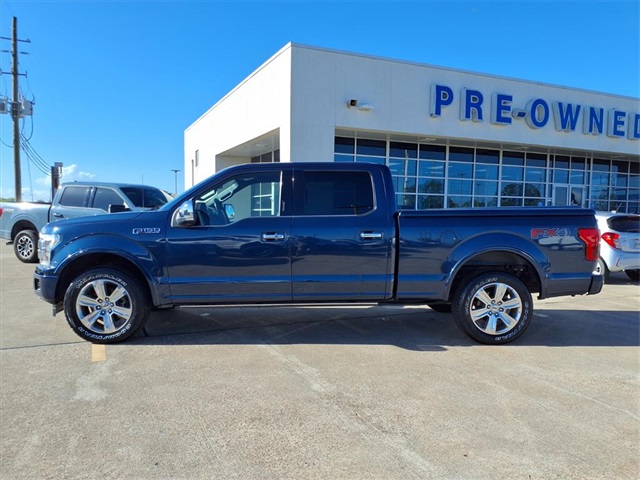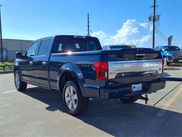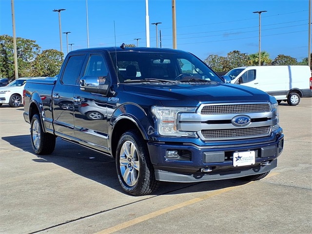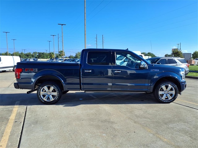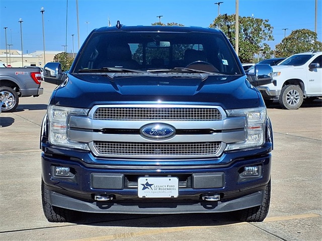 CARFAX One-Owner. Certified. Blue 2019 Ford F-150 Platinum 4WD 10-Speed Automatic 3.5L V6 EcoBoost 4WD. GVWR: 7,050 lbs Payload Package, Legacy Ford of Rosenberg Certification Certified, 4WD, 10 Speakers, 20" Polished Aluminum Wheels, 3.31 Axle Ratio, 4-Wheel Disc Brakes, ABS brakes, Adjustable pedals, Air Conditioning, Alloy wheels, AM/FM radio: SiriusXM, AppLink/Apple CarPlay and Android Auto, Auto High-beam Headlights, Auto tilt-away steering wheel, Auto-dimming door mirrors, Auto-dimming Rea