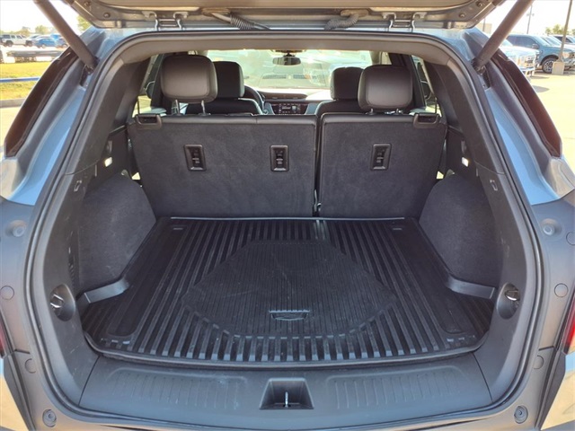 M radio: SiriusXM, Apple CarPlay/Android Auto, Auto High-beam Headlights, Automatic Stop/Start w/Disable, Automatic temperature control, Bodyside moldings, Bose Premium 8-Speaker Audio System Feature, Brake assist, Bumpers: body-color, Compass, Delay-off headlights, Driver door bin, Driver vanity mirror, Dual front impact airbags, Dual front side impact airbags, Electronic Stability Control, Emergency communication system: OnStar and Cadillac connected services capable, Exterior Parking Camera Rear, Four wheel independent suspension, Front anti-roll bar, Front Bucket Seats, Front Center Armrest, Front dual zone A/C, Front License Plate Bracket, Front reading lights, Fully automatic headlights, Garage door transmitter, Genuine wood door panel insert, Heated door mirrors, Heated Driver & Front Passenger Seats, Heated front seats, Illuminated entry, Knee airbag, Lateral Mesh Cargo Net, Leather steering wheel, Leatherette Seating Surfaces, Low tire pressure warning, Occupant sensing airbag, Outside temperature display, Overhead airbag, Overhead console, Panic alarm, Passenger door bin, Passenger vanity mirror, Power door mirrors, Power driver seat, Power Liftgate, Power passenger seat, Power steering, Power windows, Radio data system, Radio: Cadillac User Experience AM/FM Stereo, Rear anti-roll bar, Rear reading lights, Rear seat center armrest, Rear window defroster, Rear window wiper, Remote keyless entry, Road Emergency Tool Kit, SiriusXM w/360L, Speed control, Speed-sensing steering, Split folding rear seat, Spoiler, Steering wheel mounted audio controls, Tachometer, Telescoping steering wheel, Tilt steering wheel, Traction control, Trip computer, Turn signal indicator mirrors, Variably intermittent wipers, Voltmeter, and Wheel Locks.